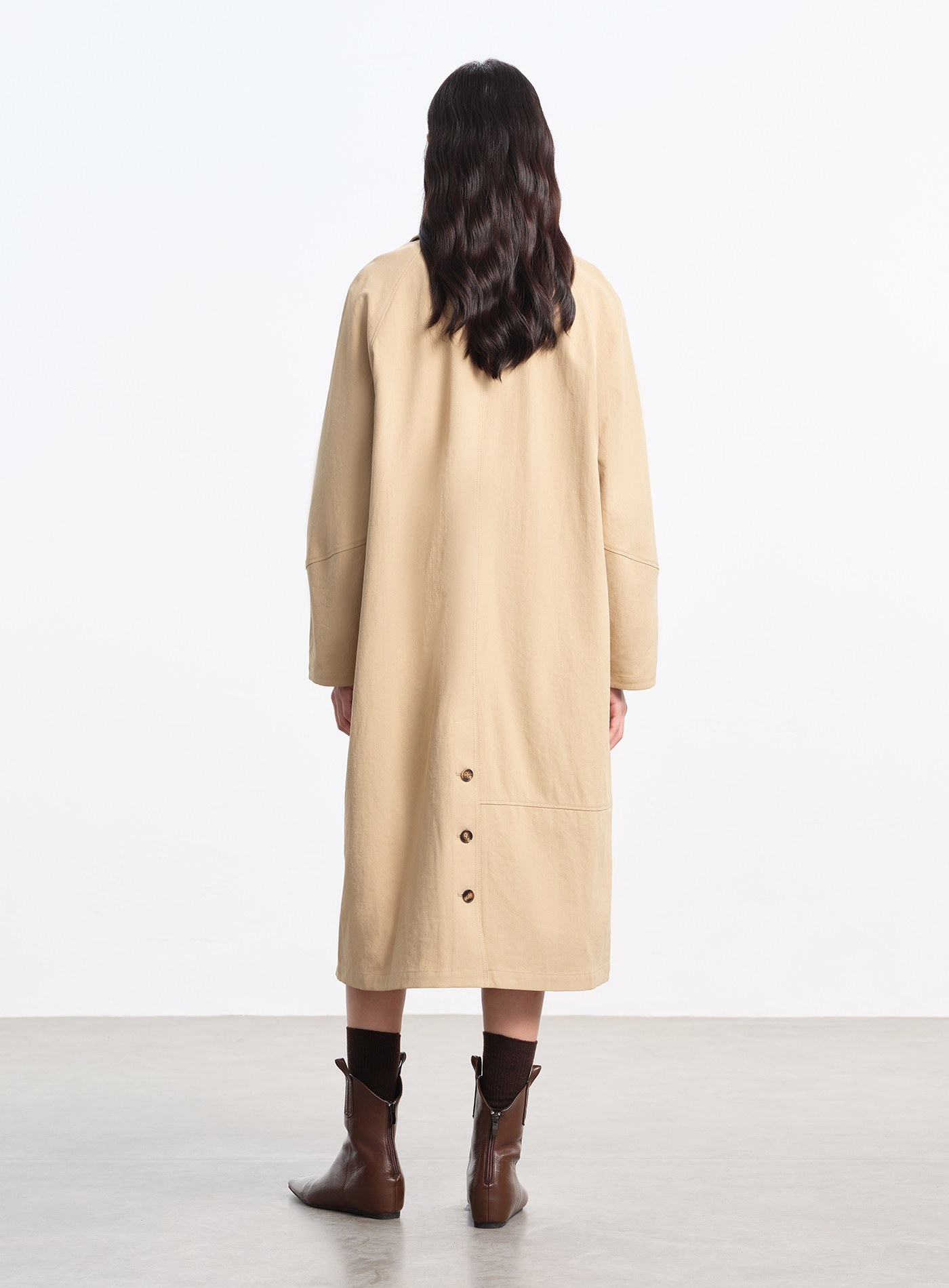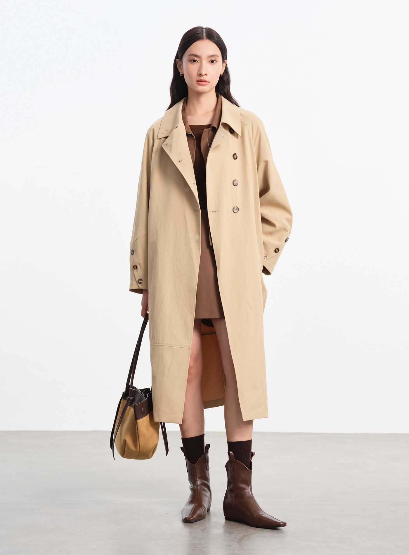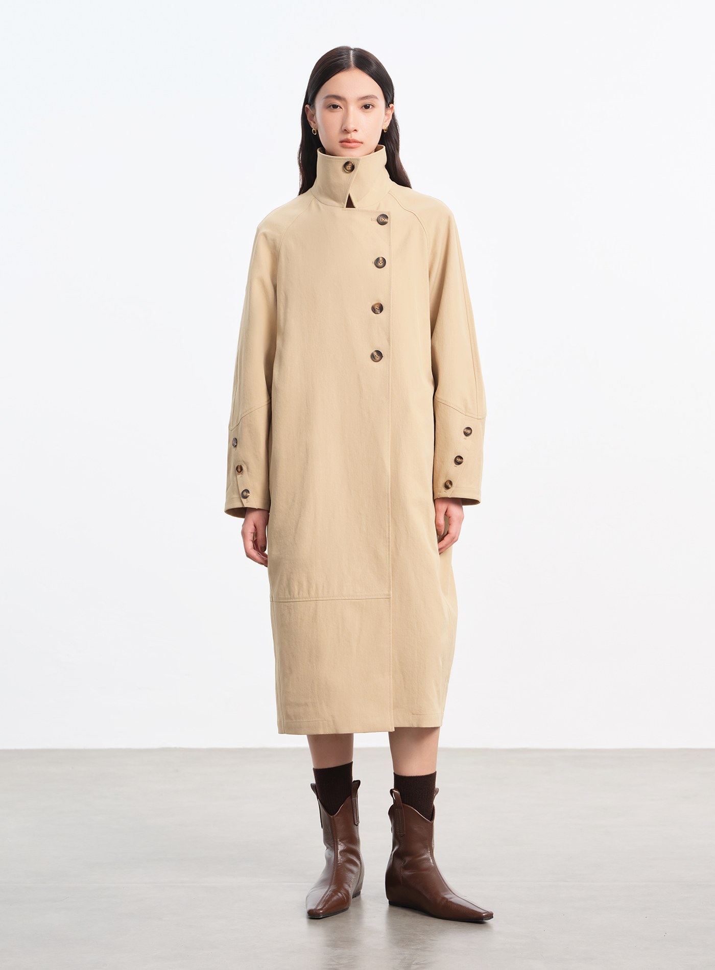 - 以流暢圓弧俐落線條,設計出具有空間感的繭型風衣,自然貼合各種身形