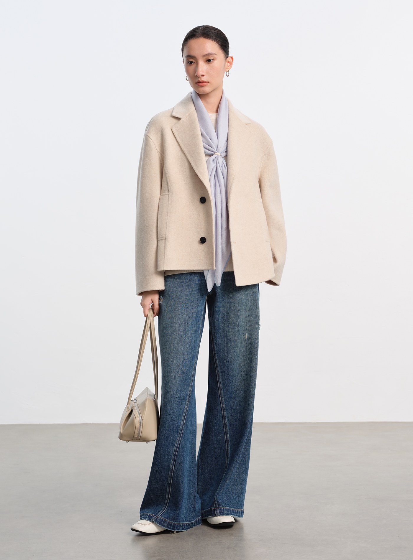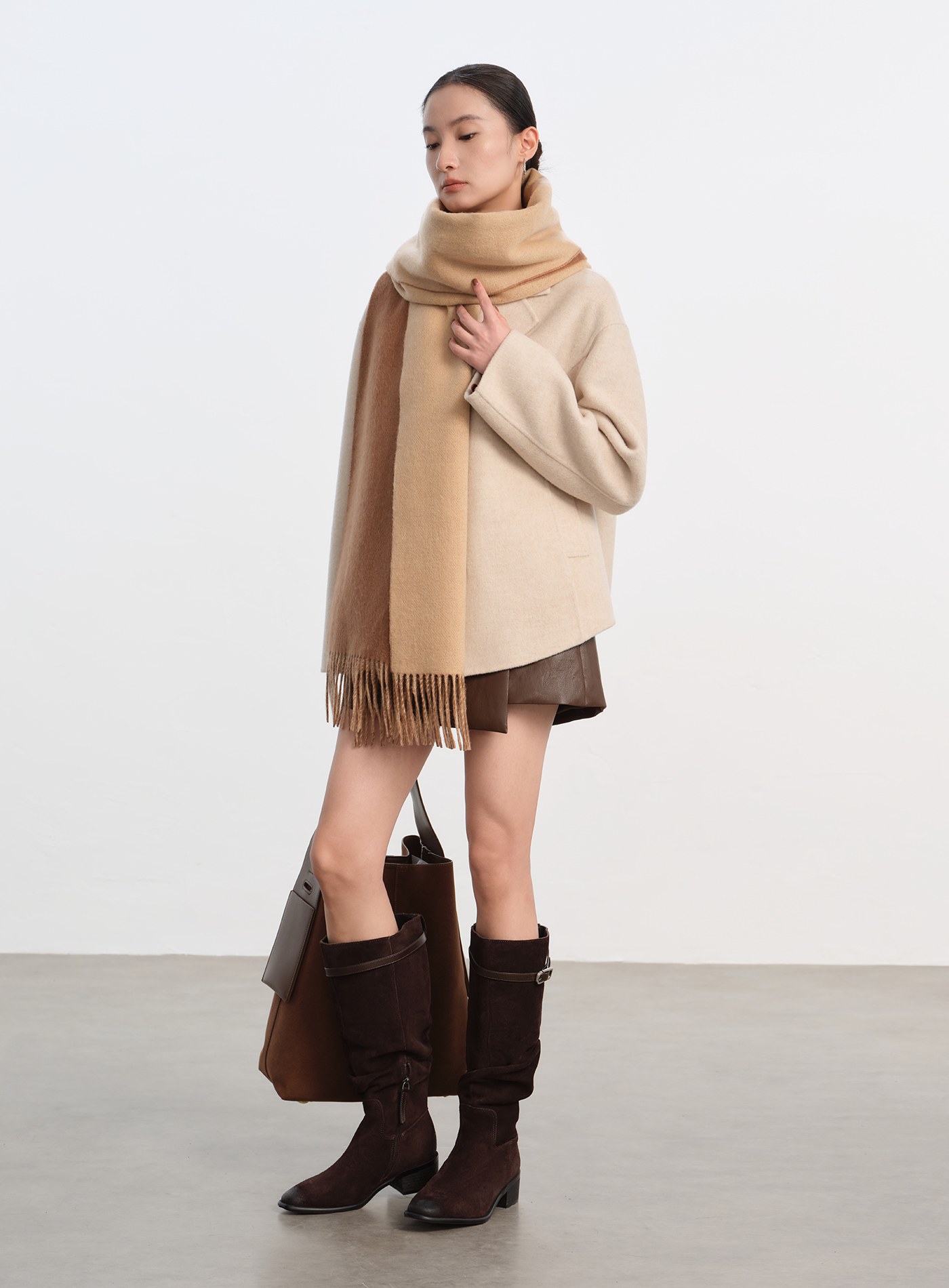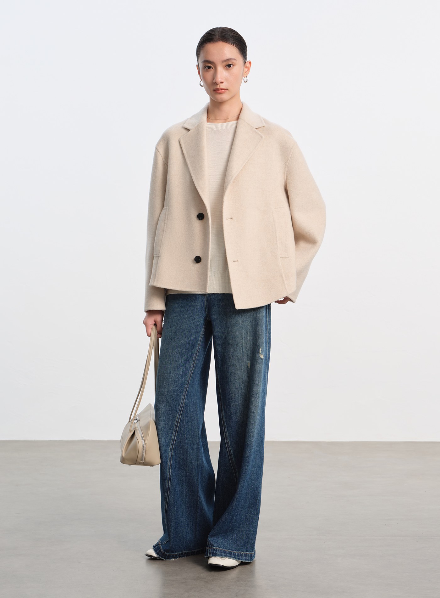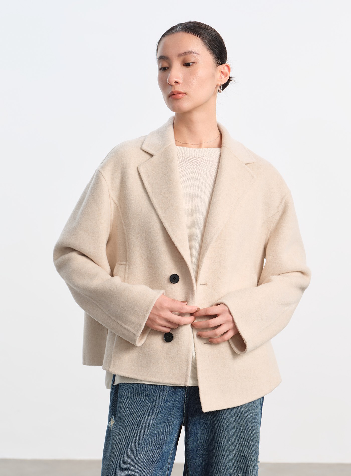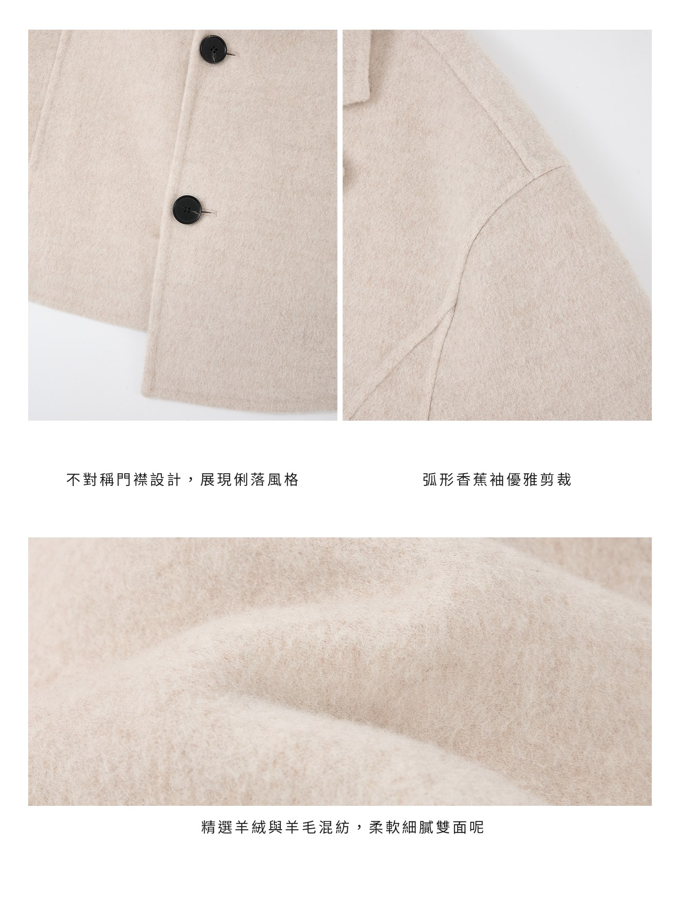 - 精選羊絨與羊毛混紡,柔軟細膩雙面呢面料