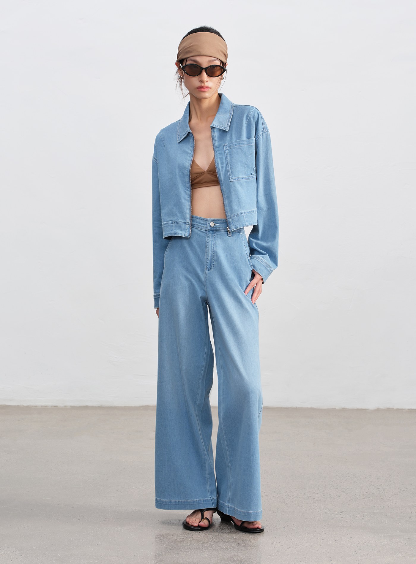 - 選用含微量天絲的混棉牛仔布,穿著透氣不悶熱,兼顧環保與舒適,讓妳在夏季也能輕鬆展現質感穿搭