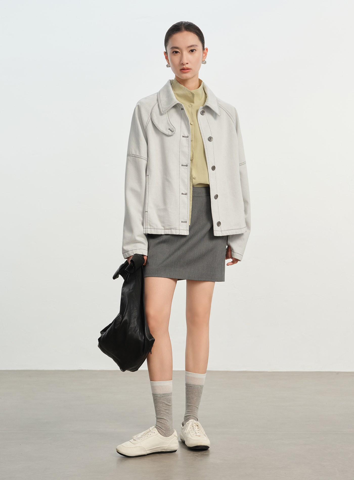 - 領底特調咖啡圖案,撞色皮標與鈕釦細節