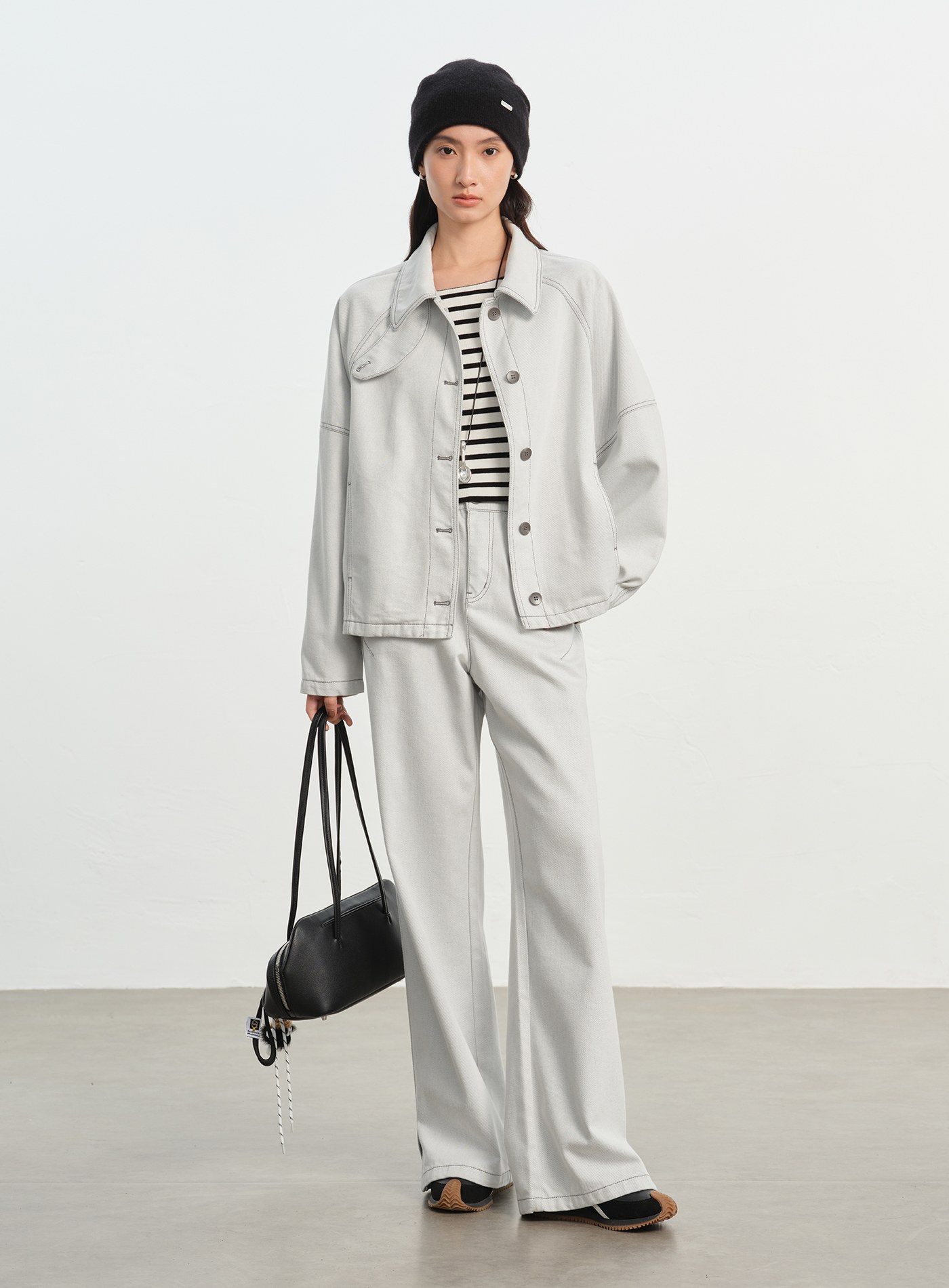 - 寬鬆慵懶的落肩版型,拼接線條流暢自然