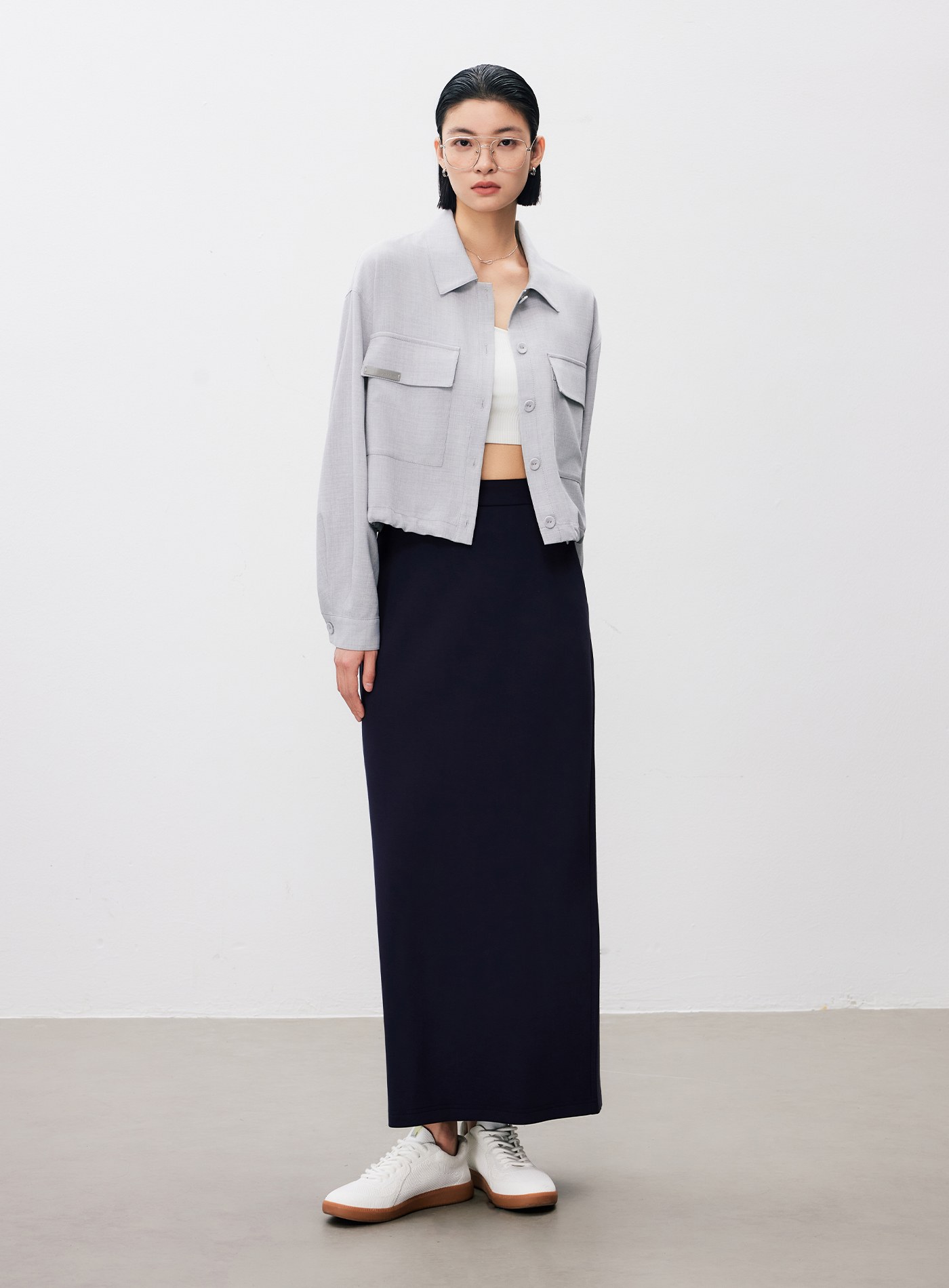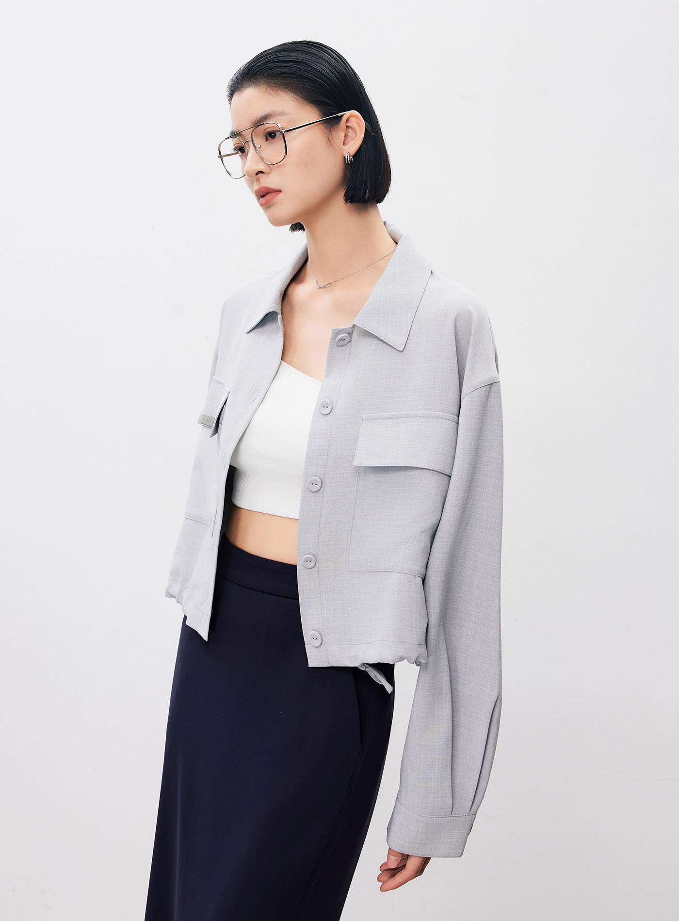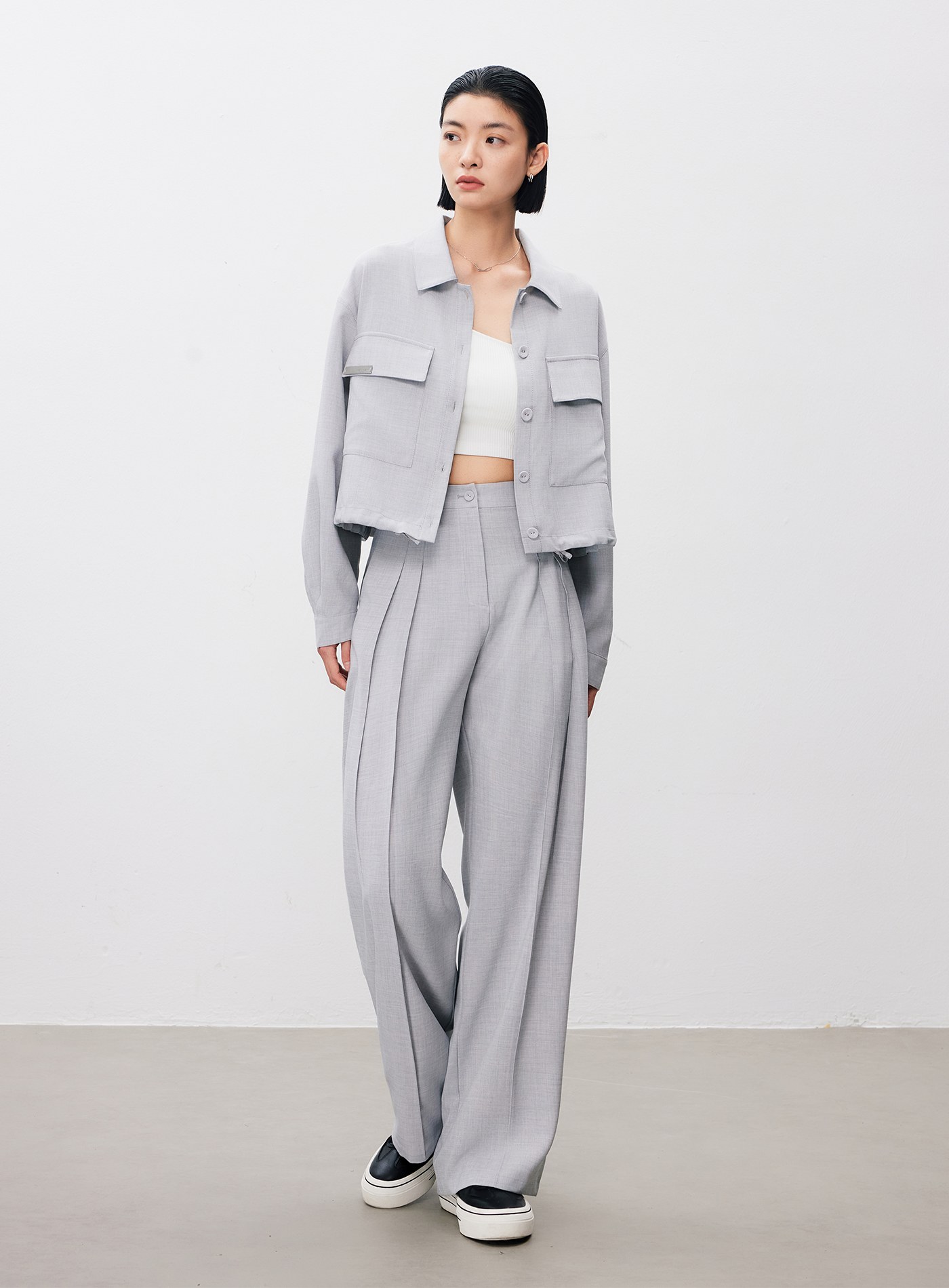 - 可與 ‘率性垂感內褶闊腿褲’ 搭成套裝