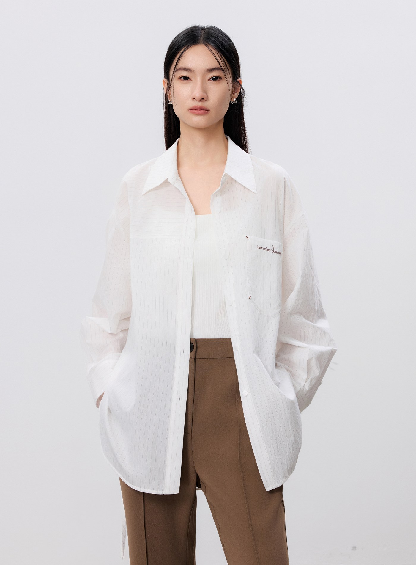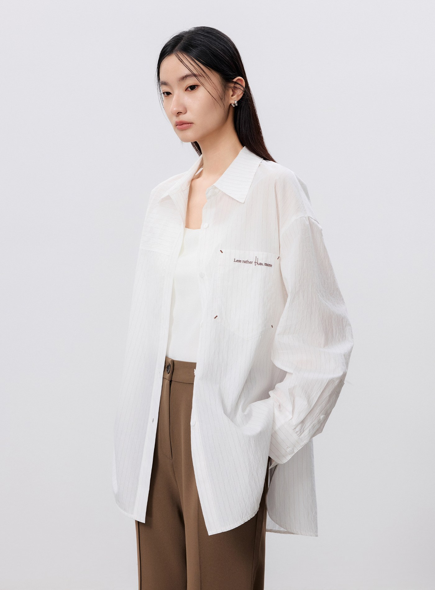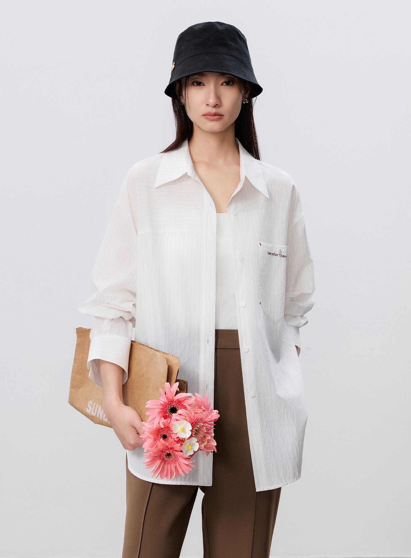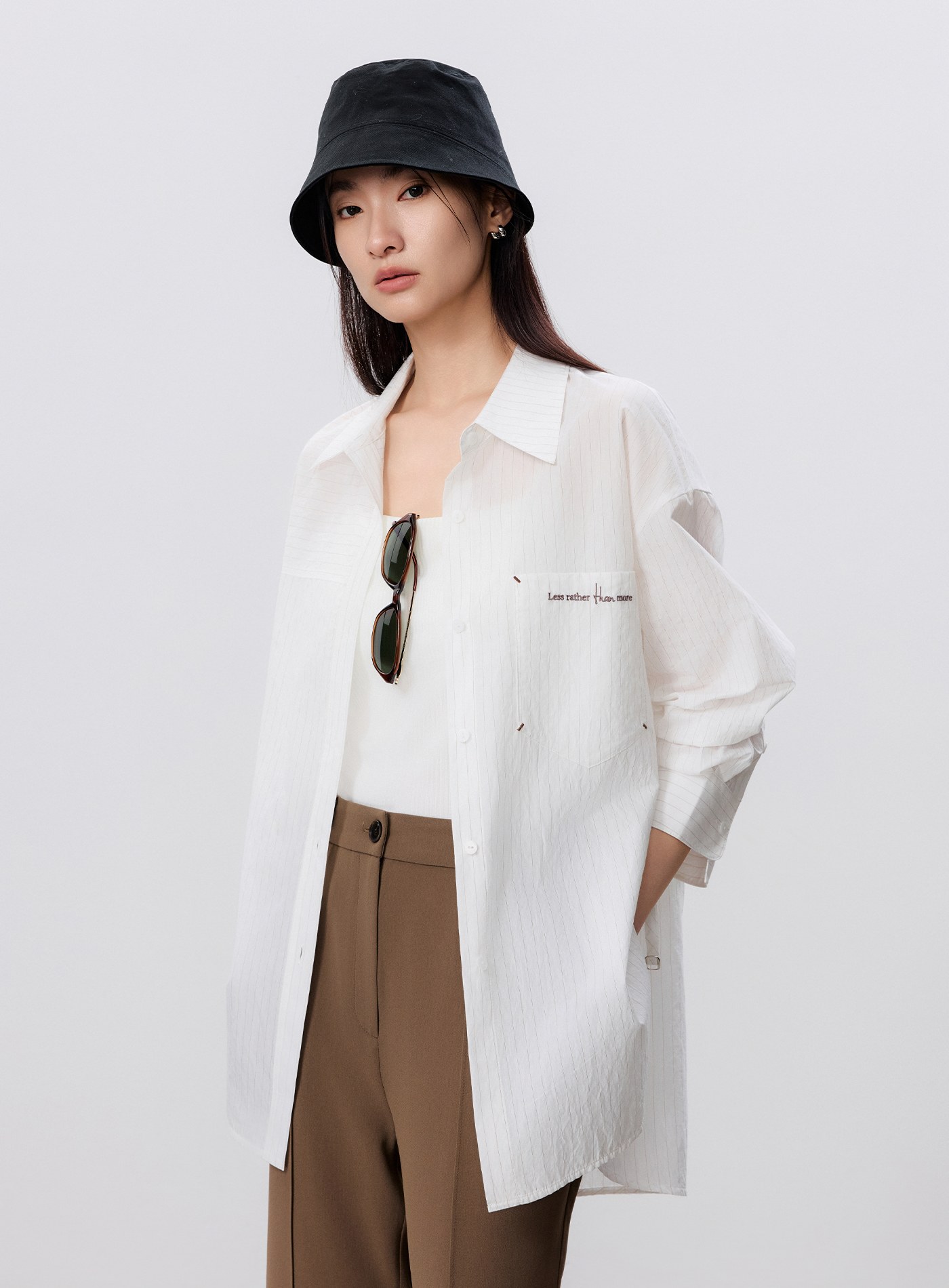 - 胸前口袋精緻刺繡注入細節巧思