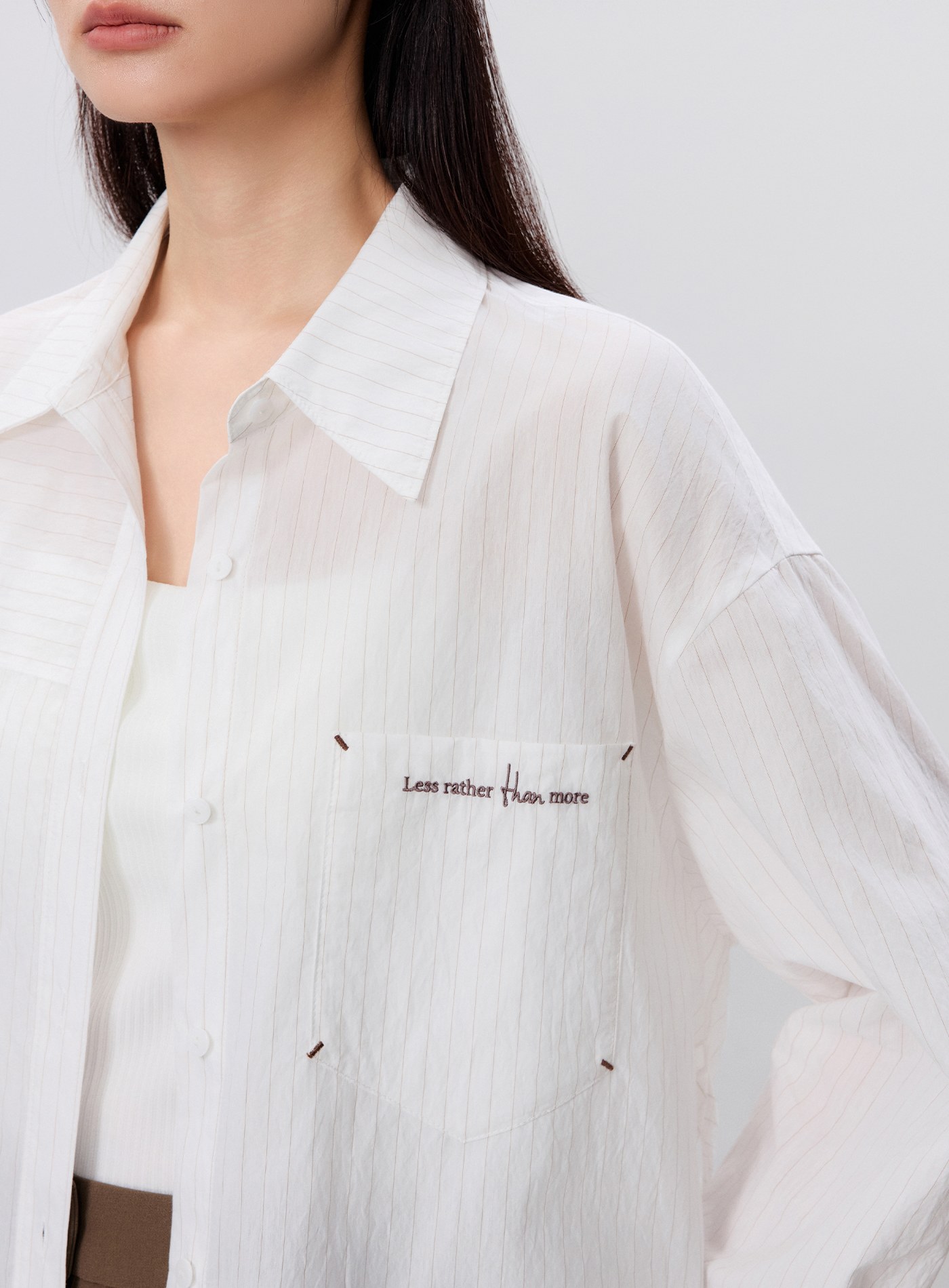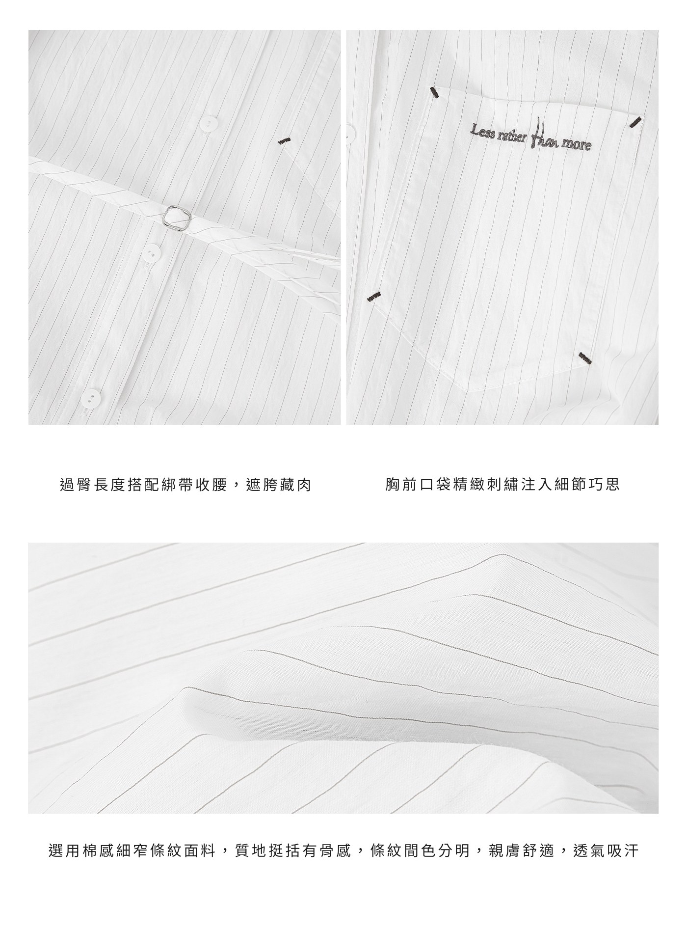 - 選用棉感細窄條紋面料,質地挺括有骨感,條紋間色分明,親膚舒適,透氣吸汗