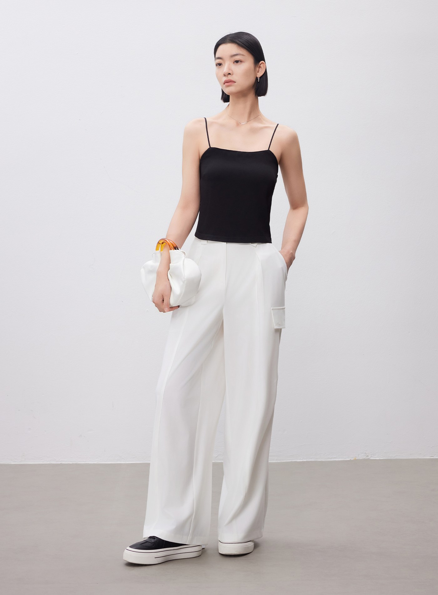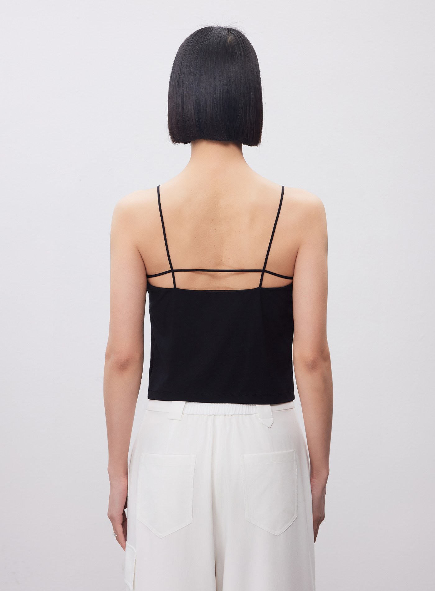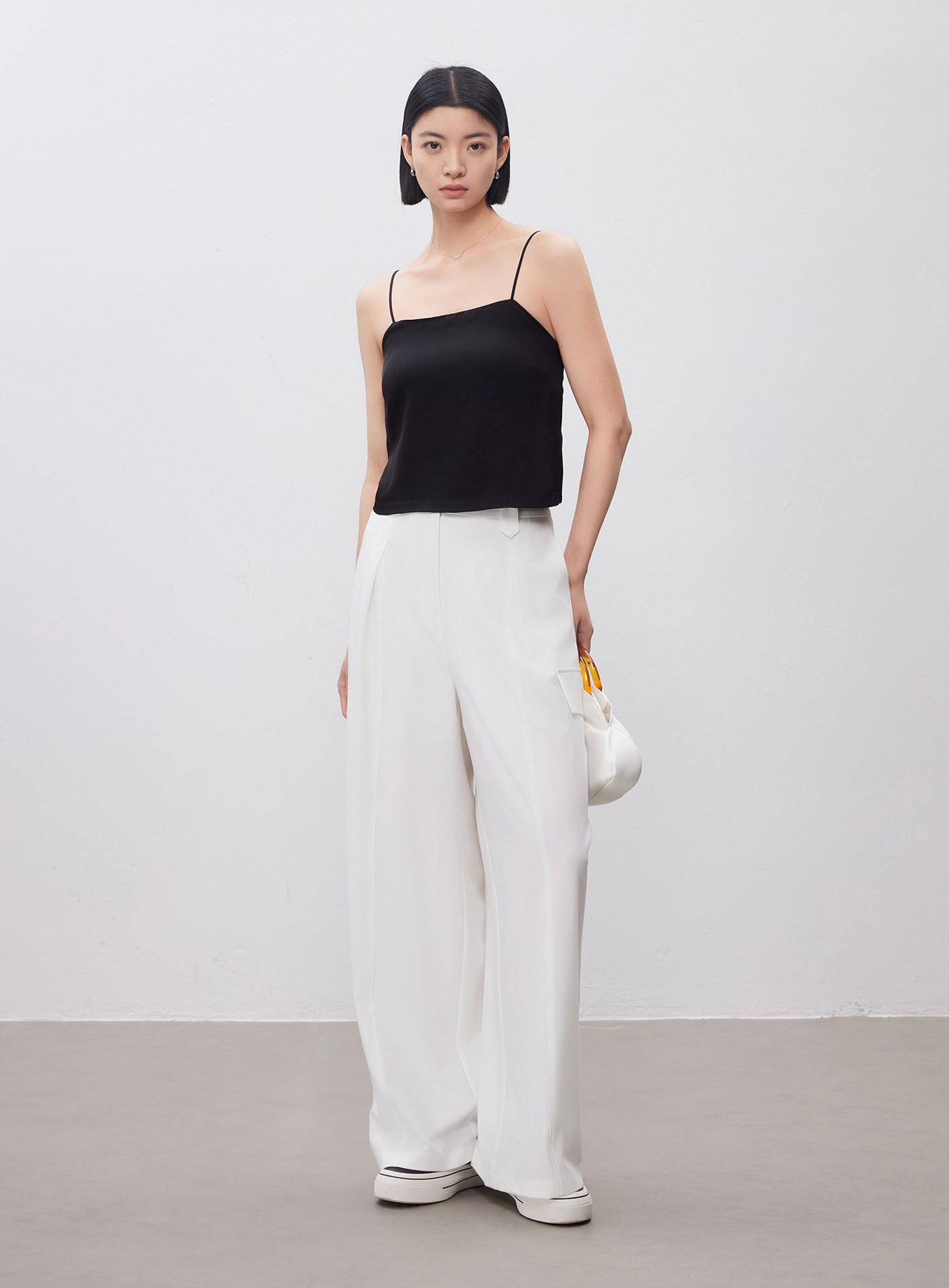 不對稱領彈力綁帶長袖襯衫$63 USD