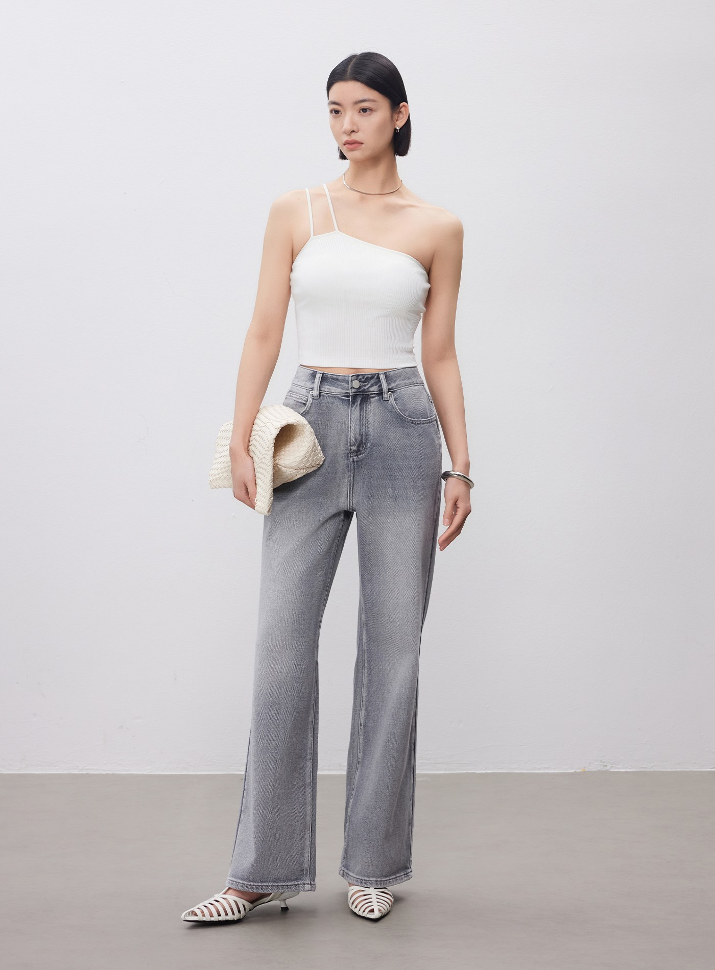修身拉鍊直筒牛仔褲$70 USD