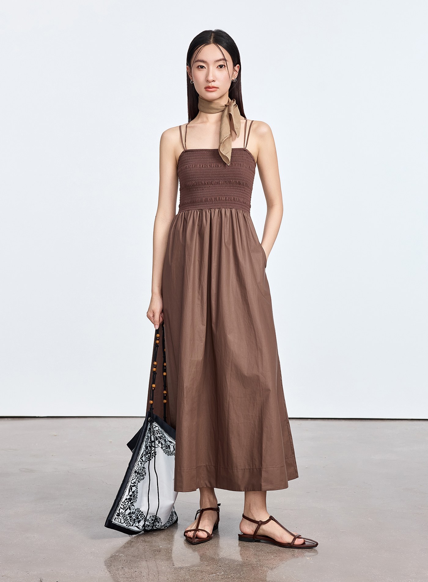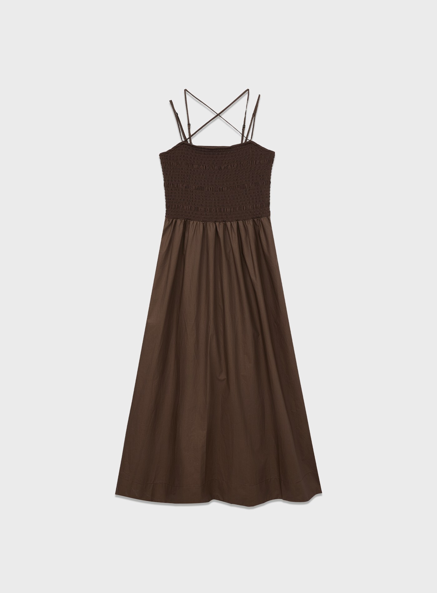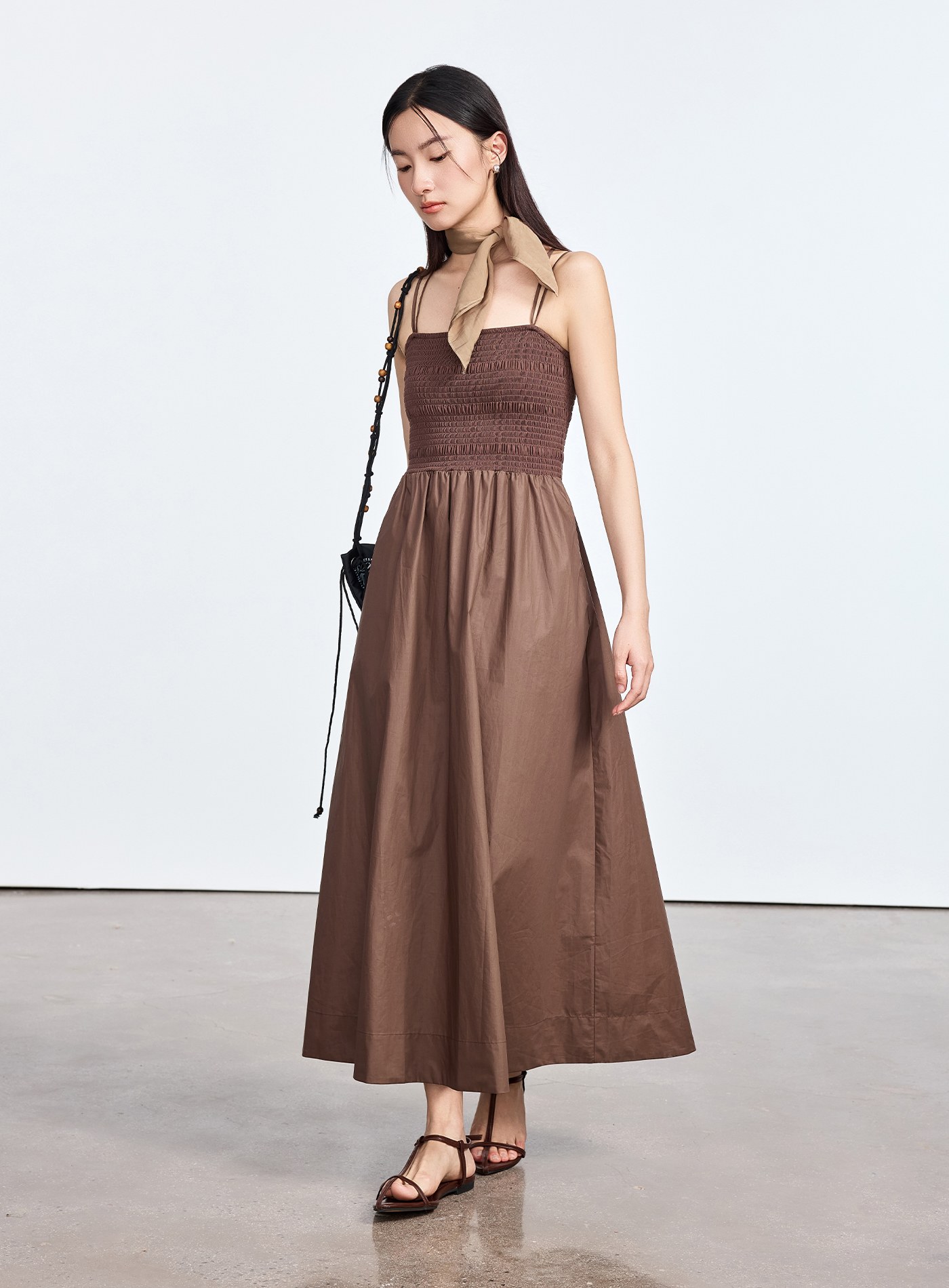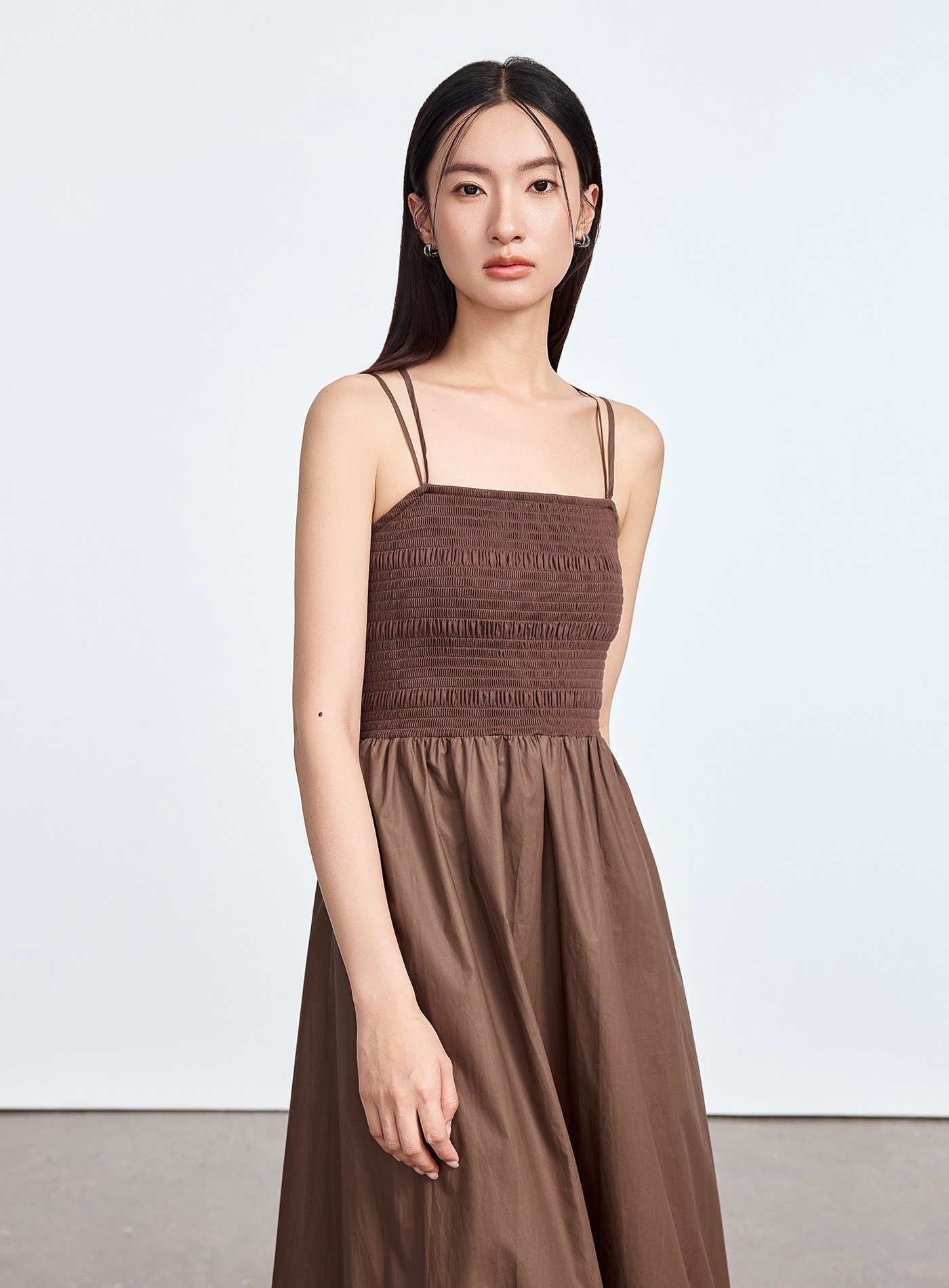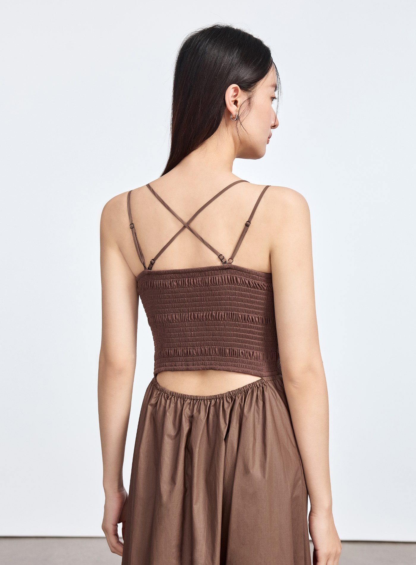 優雅細摺肌理交叉綁帶洋裝$95 USD
