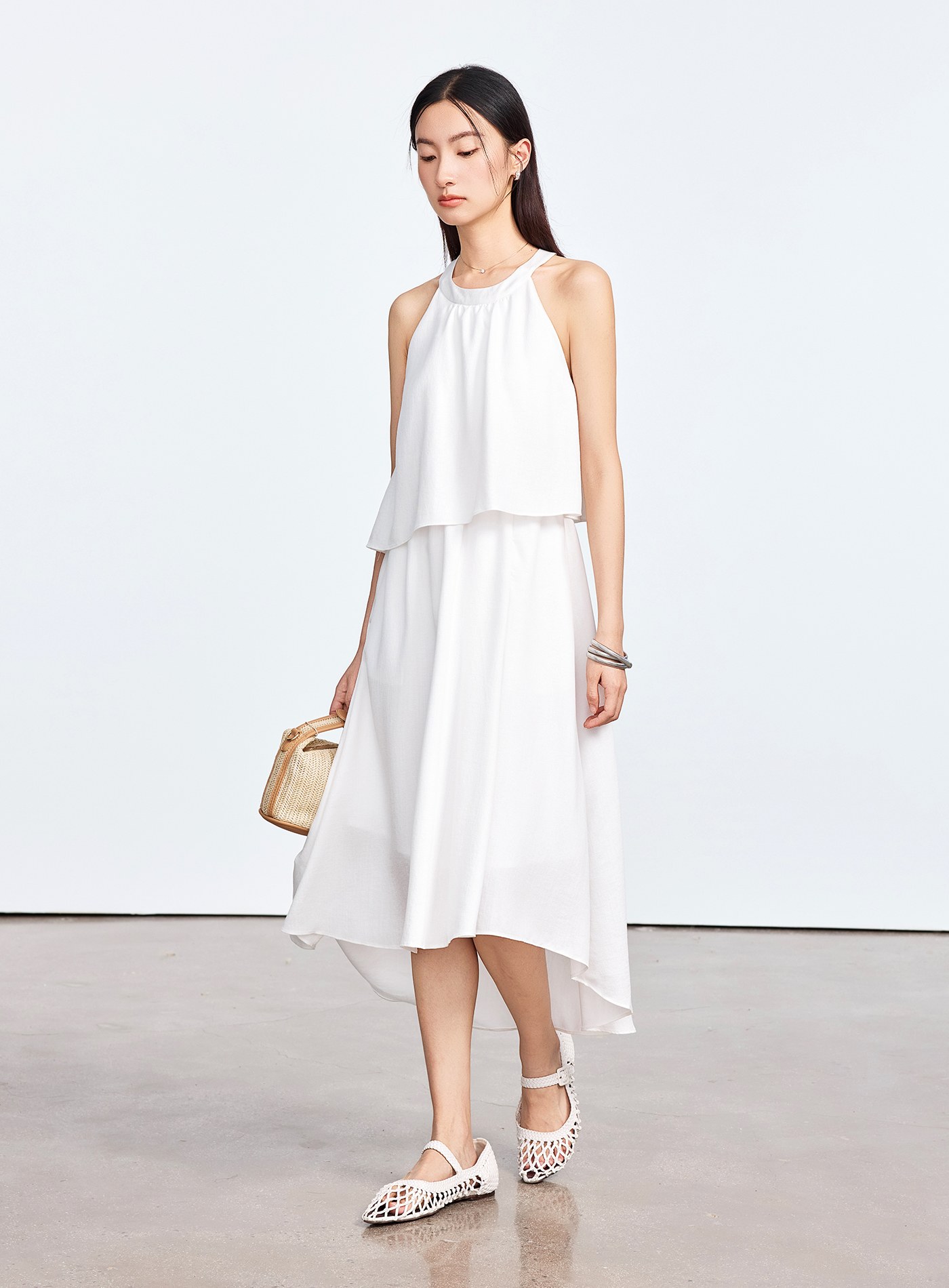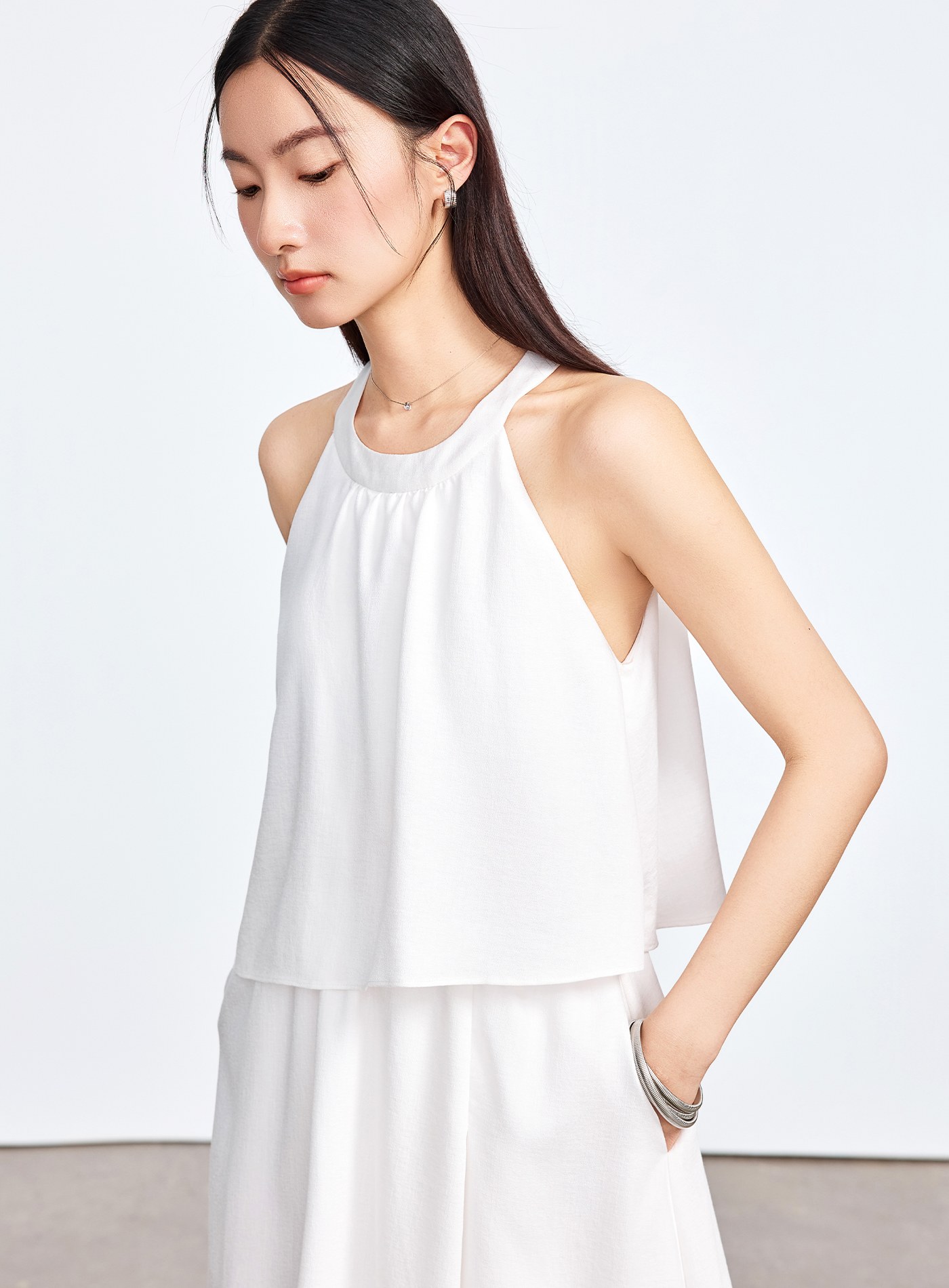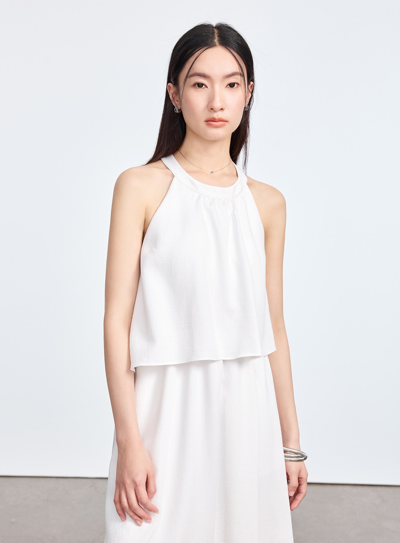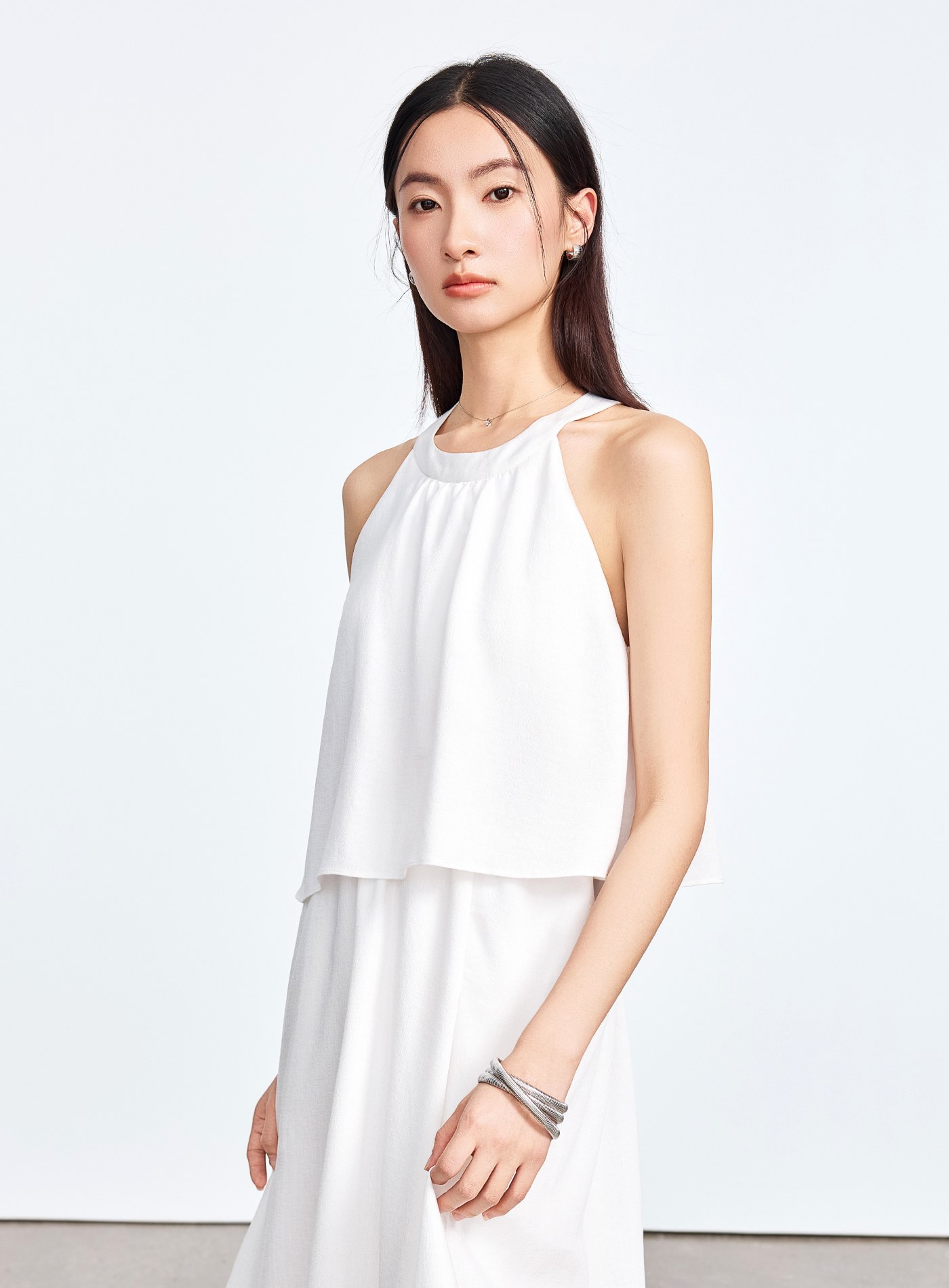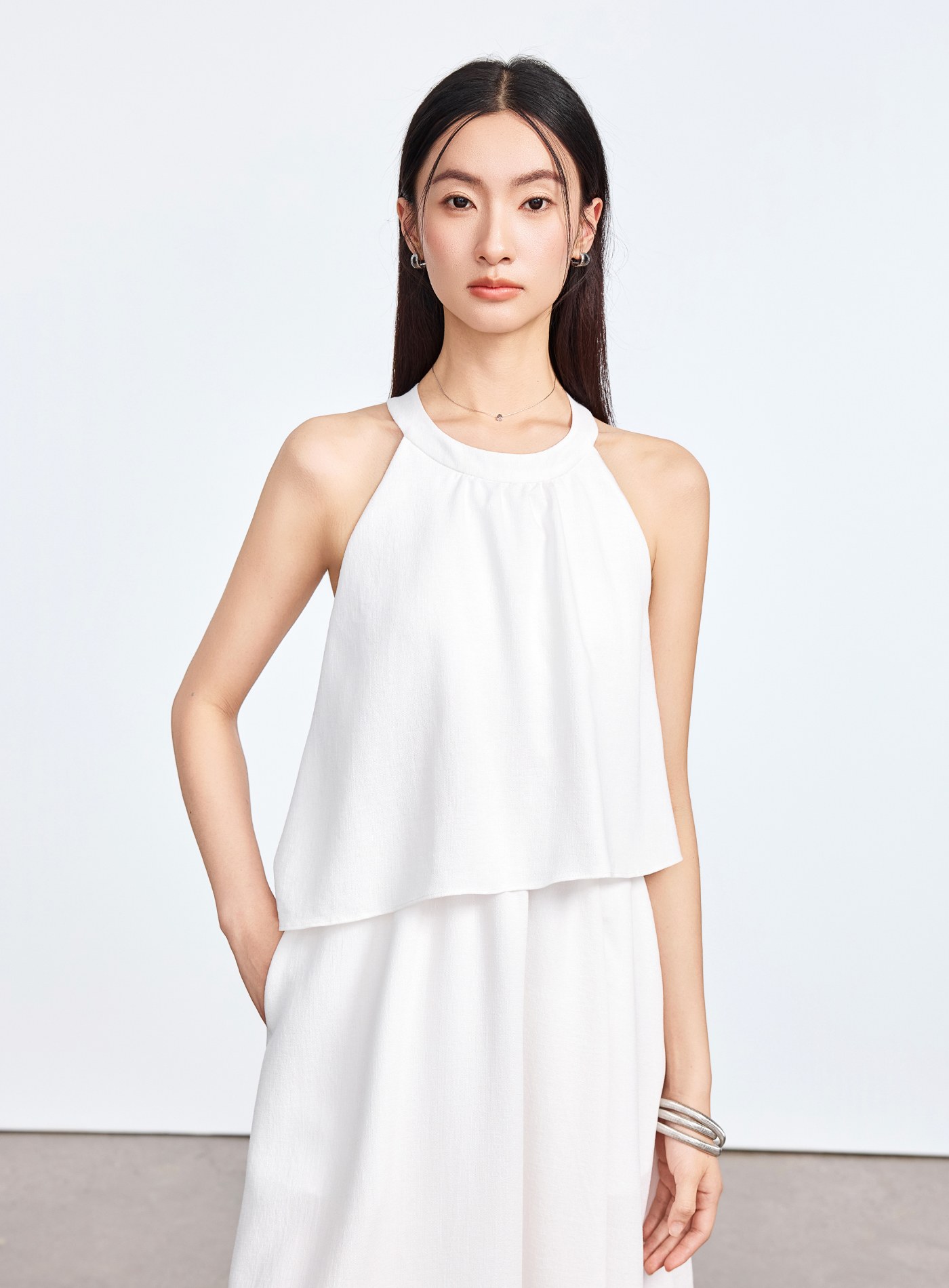 無袖壓摺綁帶飄逸洋裝$79 USD