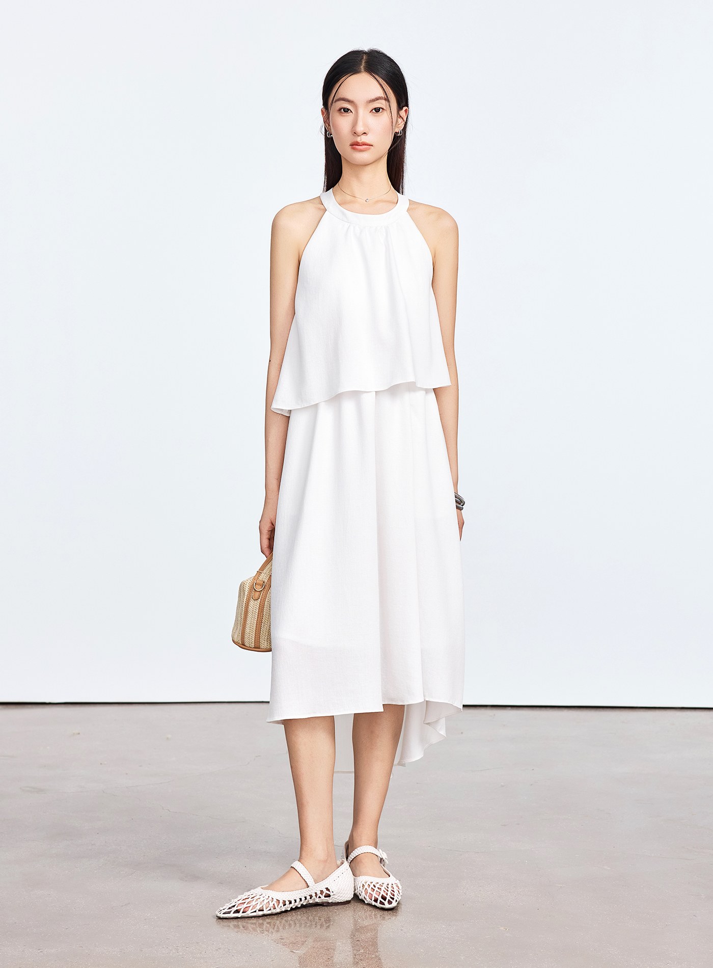 不對稱肩帶盪領斜裁洋裝$86 USD
