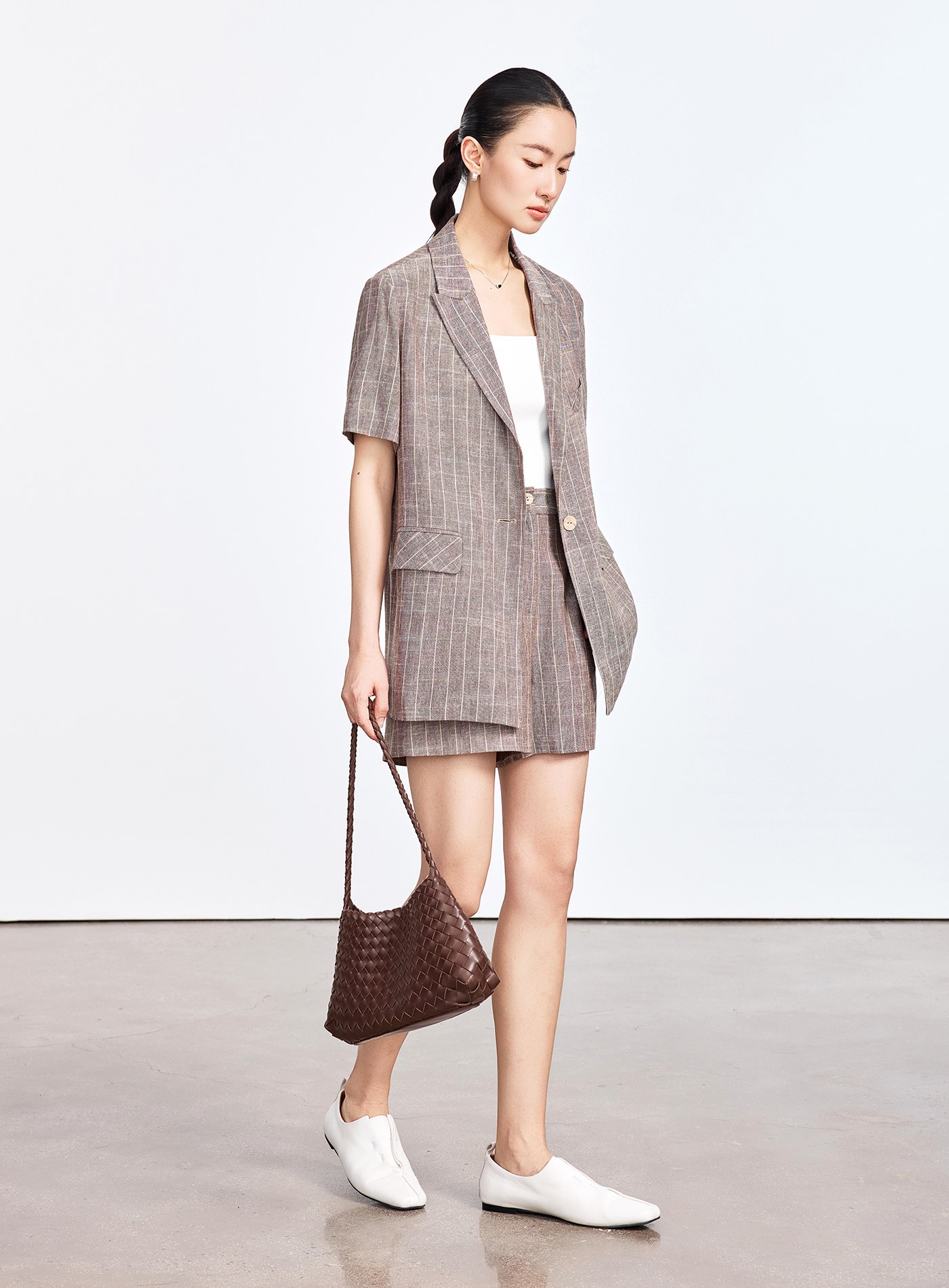 - 可與 ‘亞麻條紋西裝短褲’ 搭成套裝