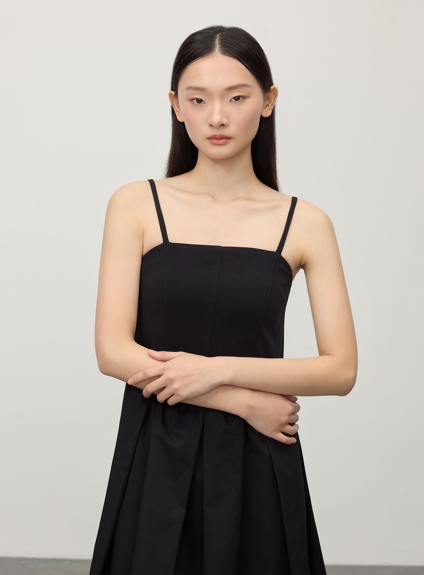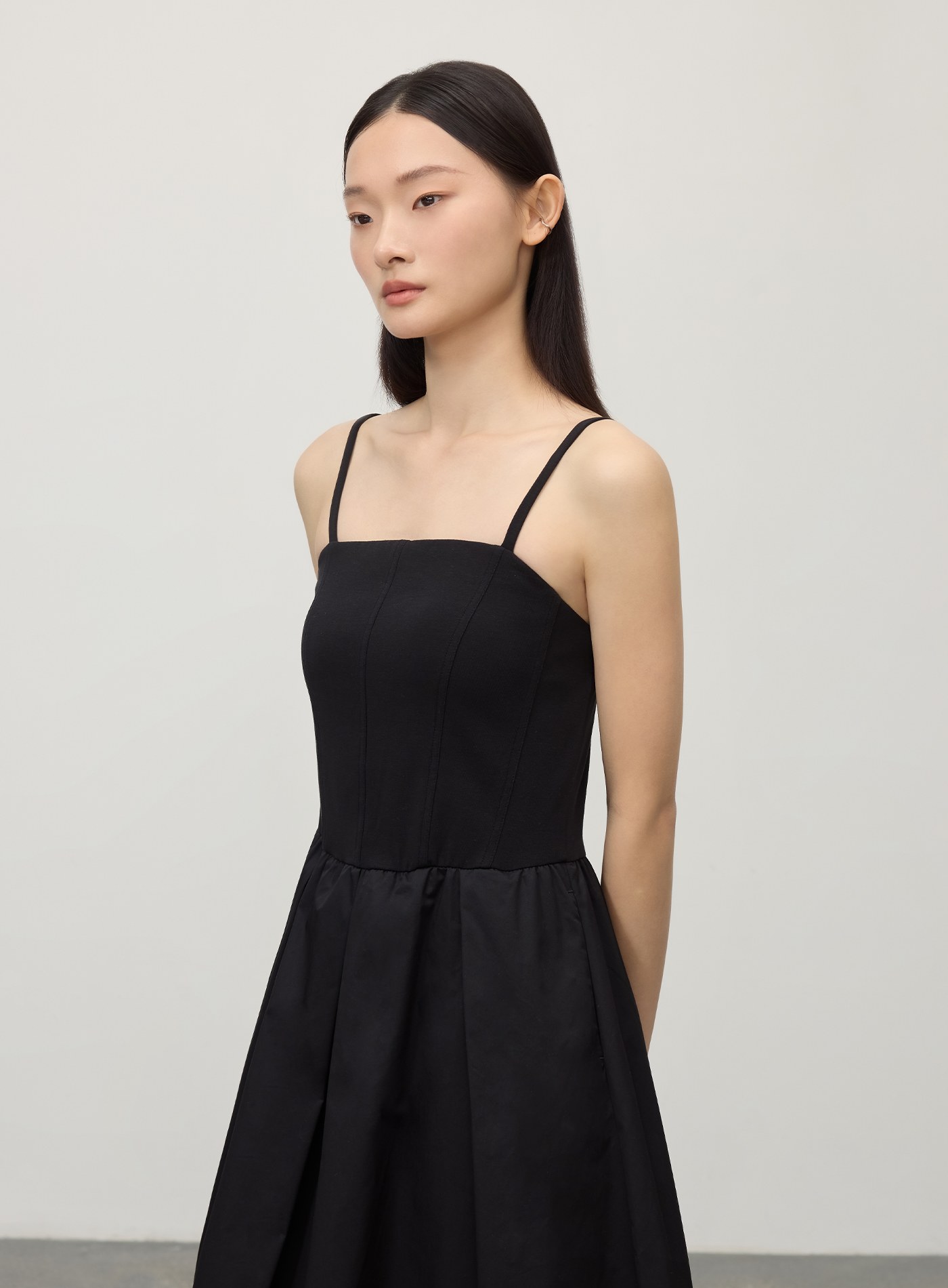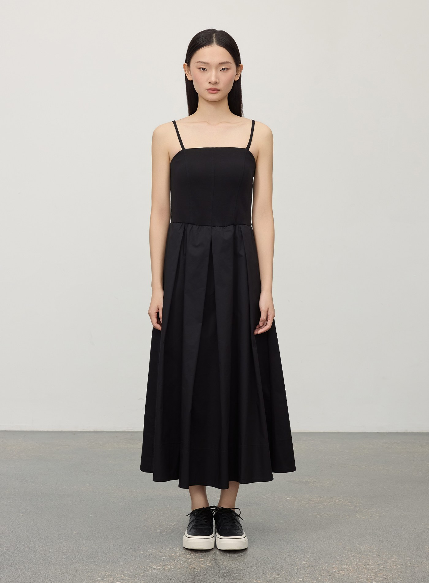 細肩帶壓褶拼接洋裝$92 USD