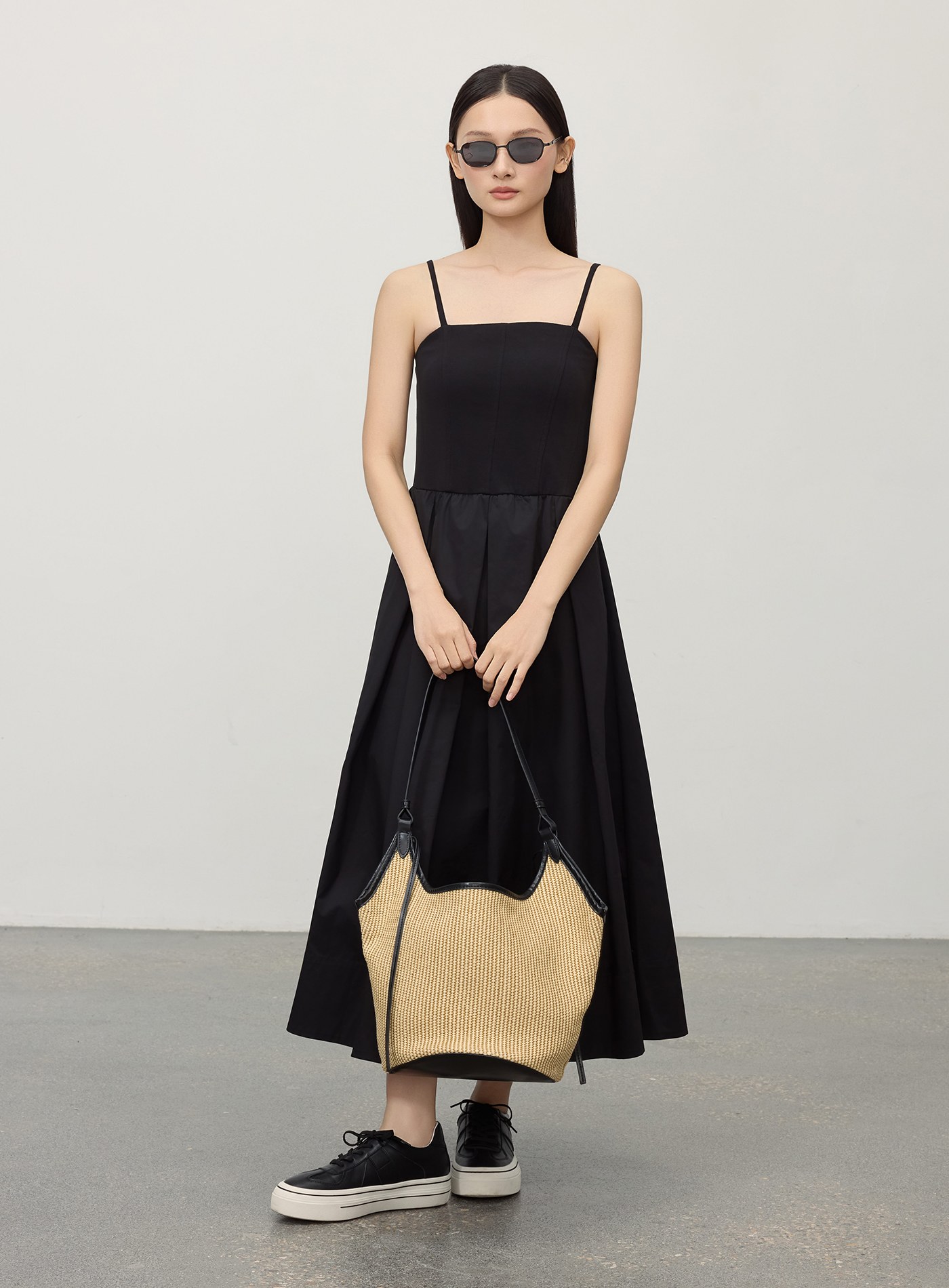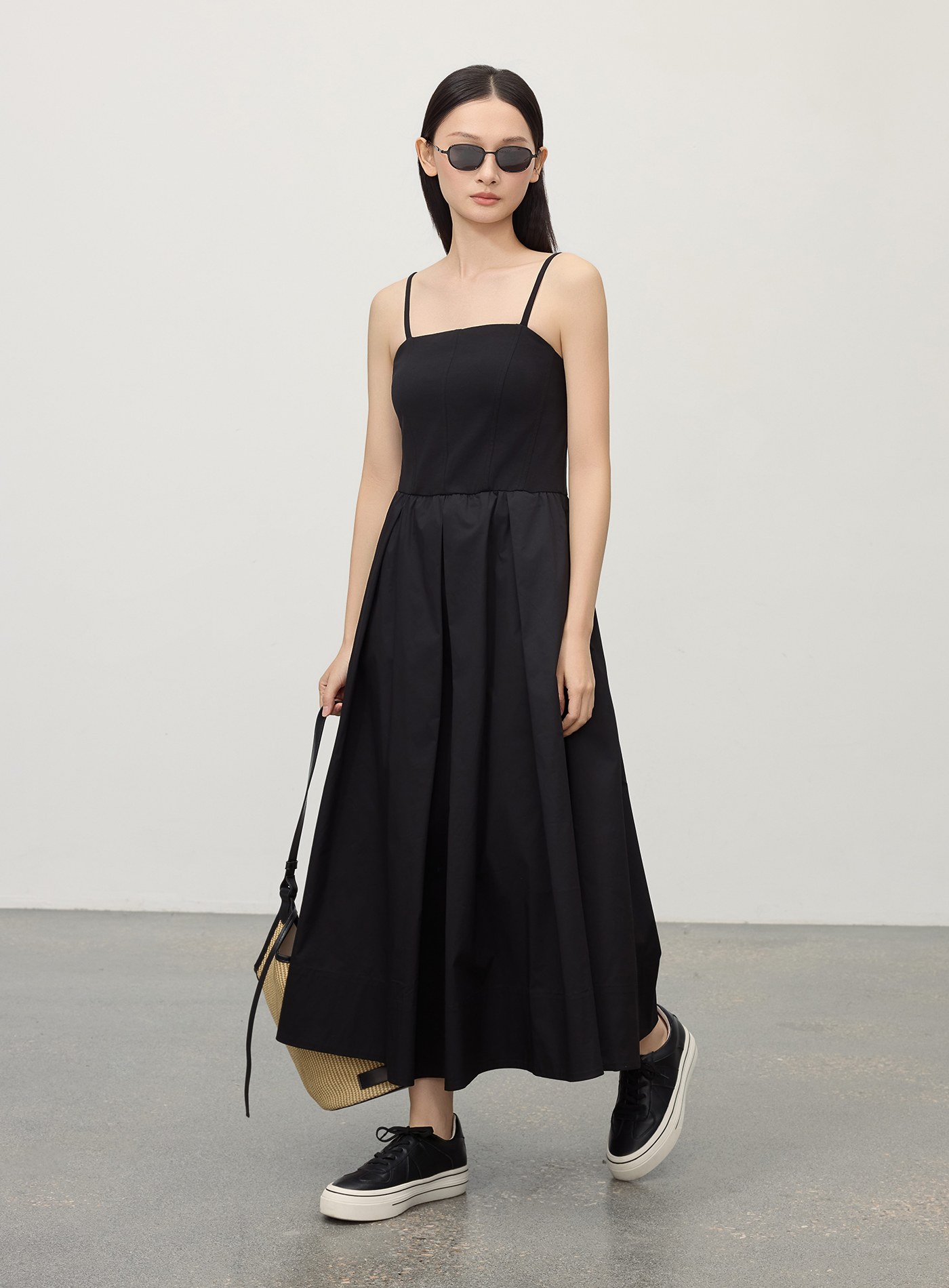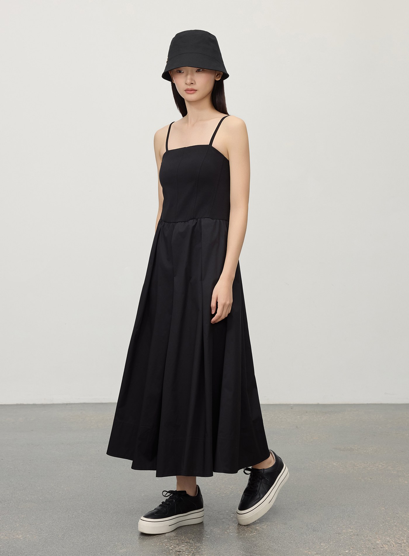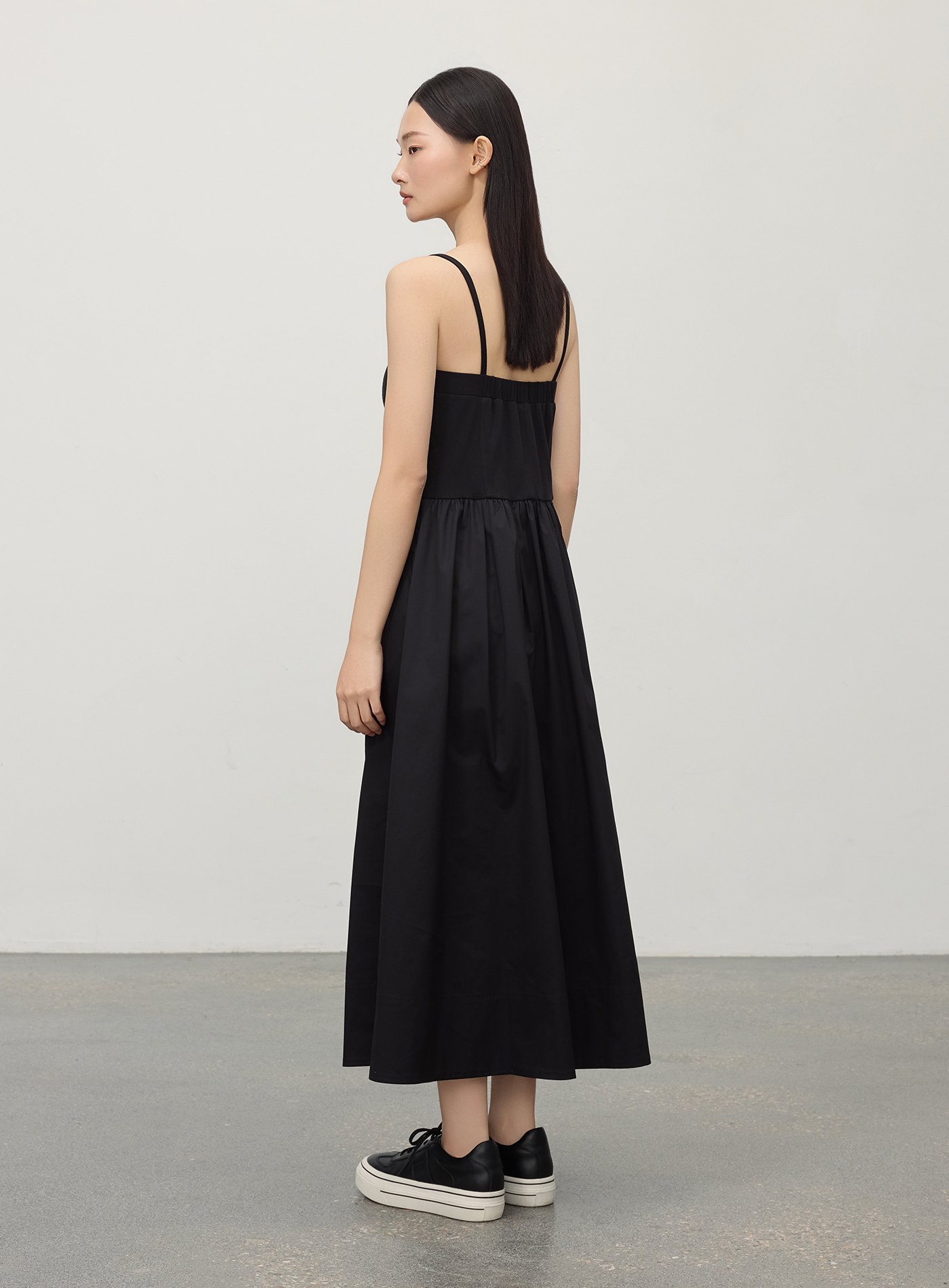 細肩帶壓褶拼接洋裝$92 USD