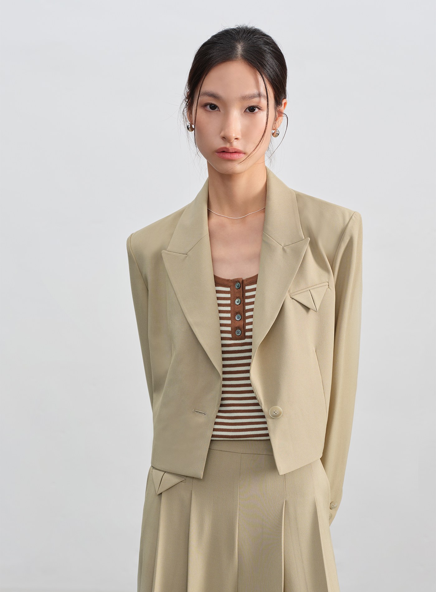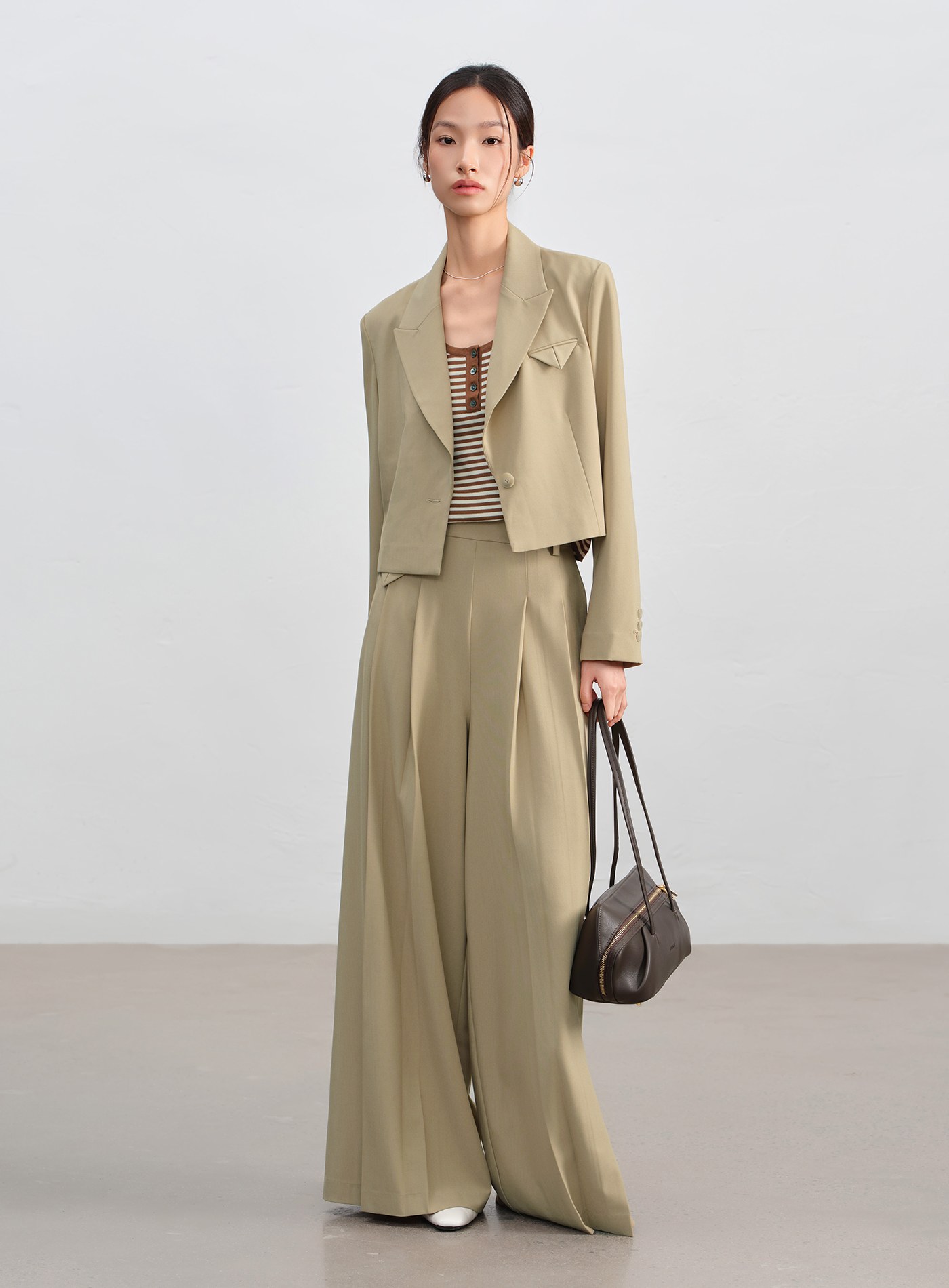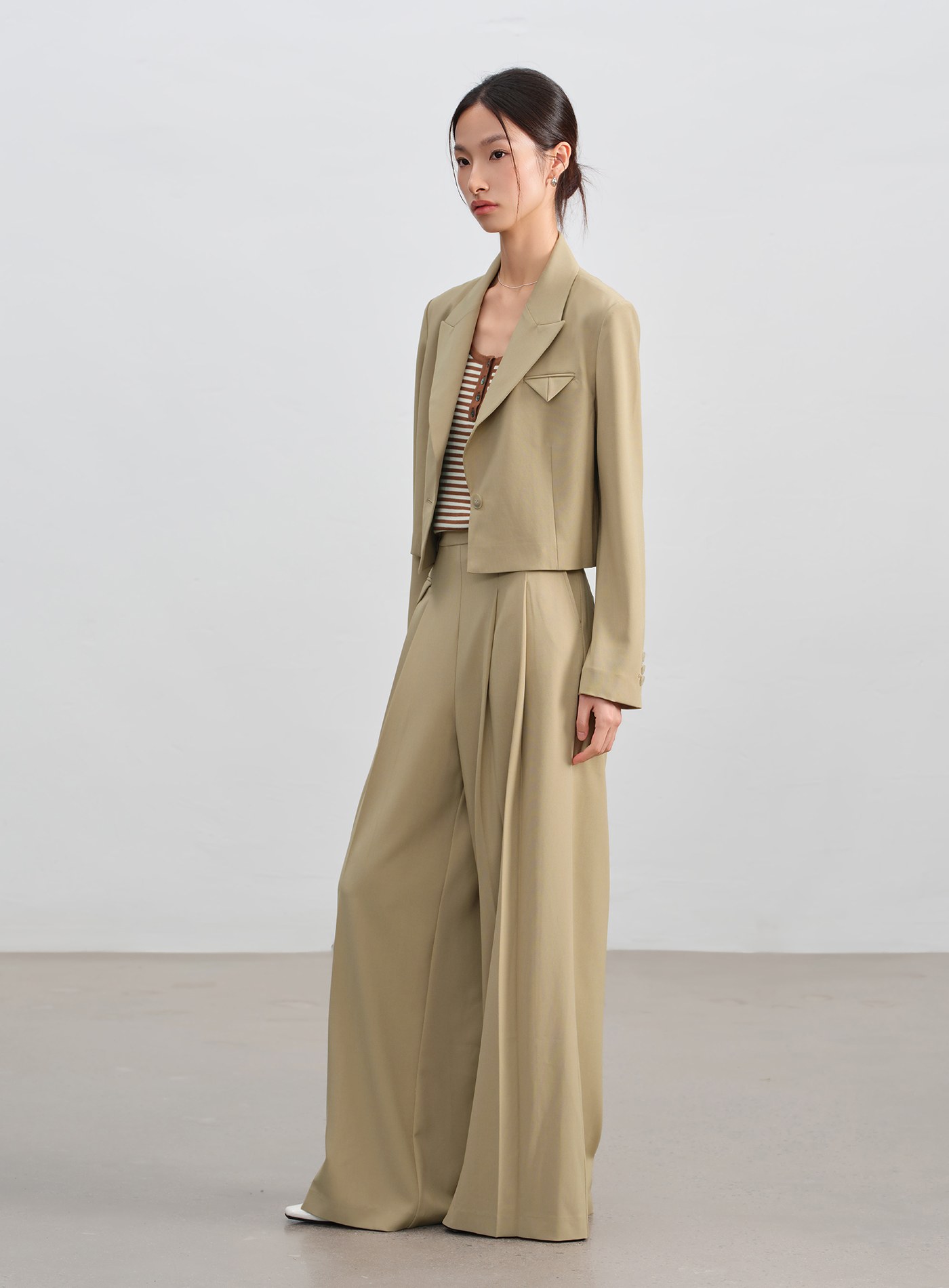 - 可與 '俐落百褶無門襟落地闊腿褲‘ 搭成套裝