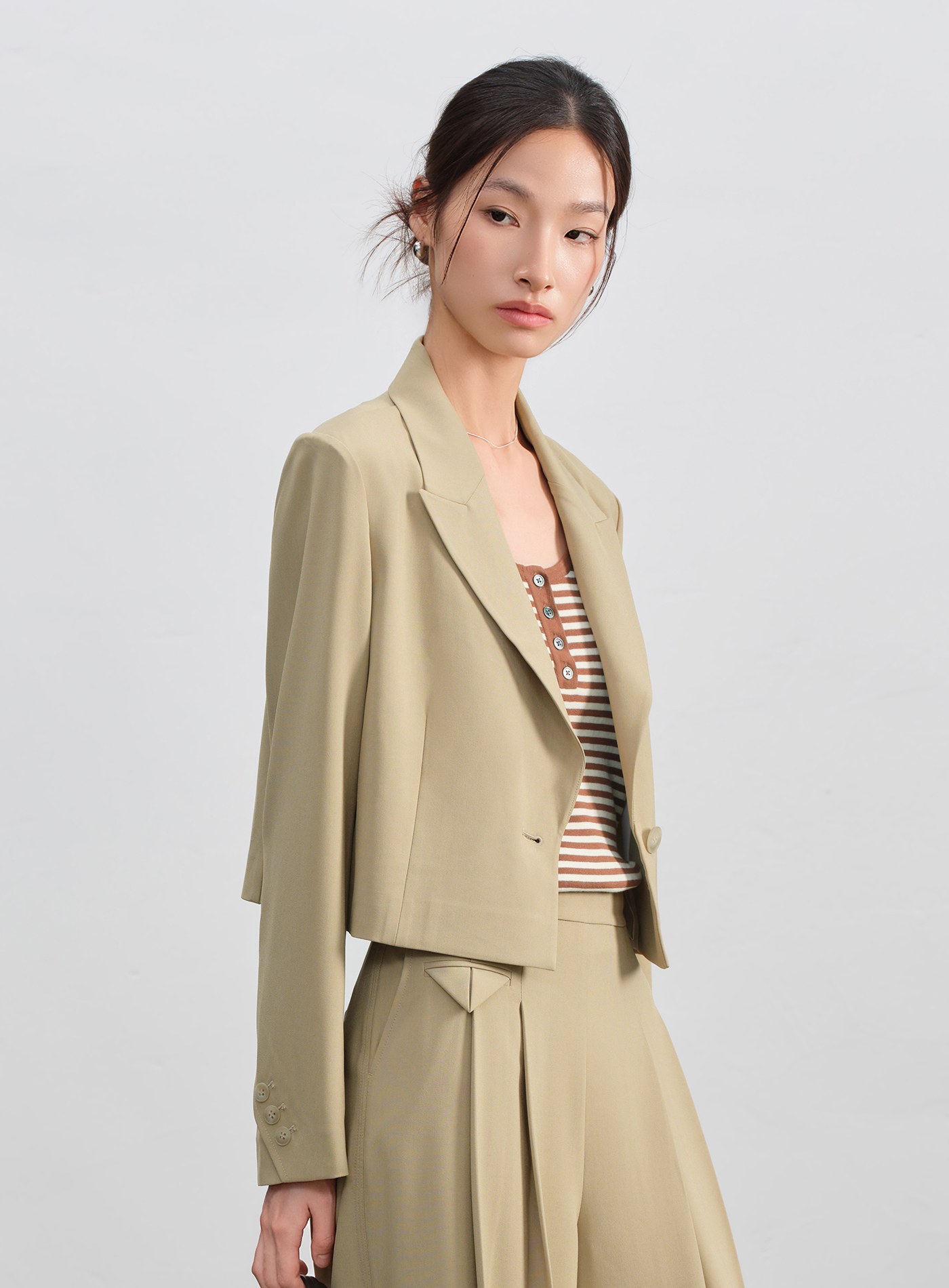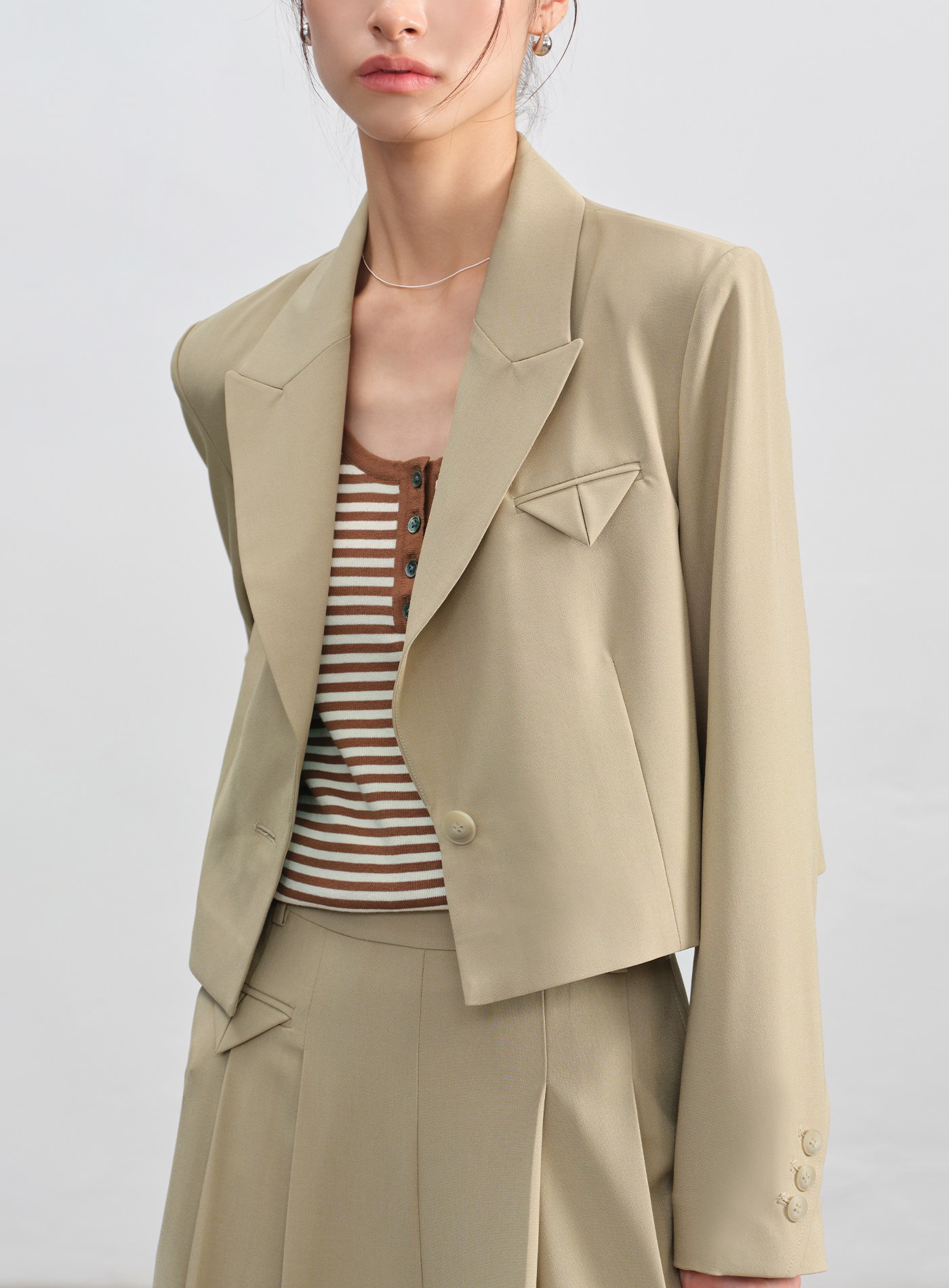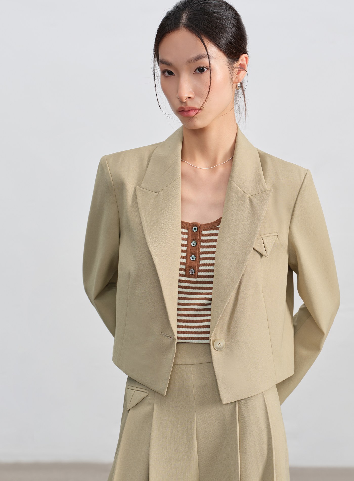 - 可與 '俐落百褶無門襟落地闊腿褲‘ 搭成套裝