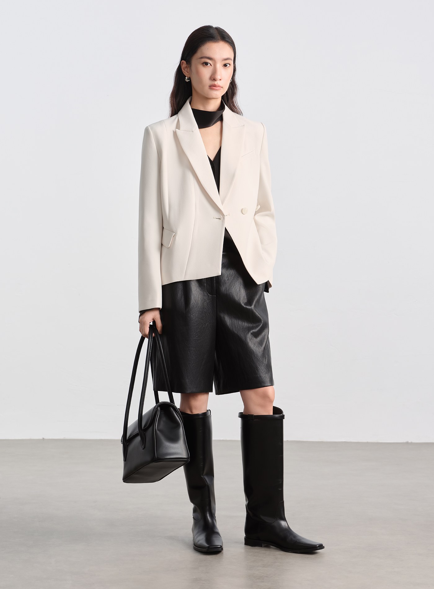 異材質拼接休閒上衣$70 USD