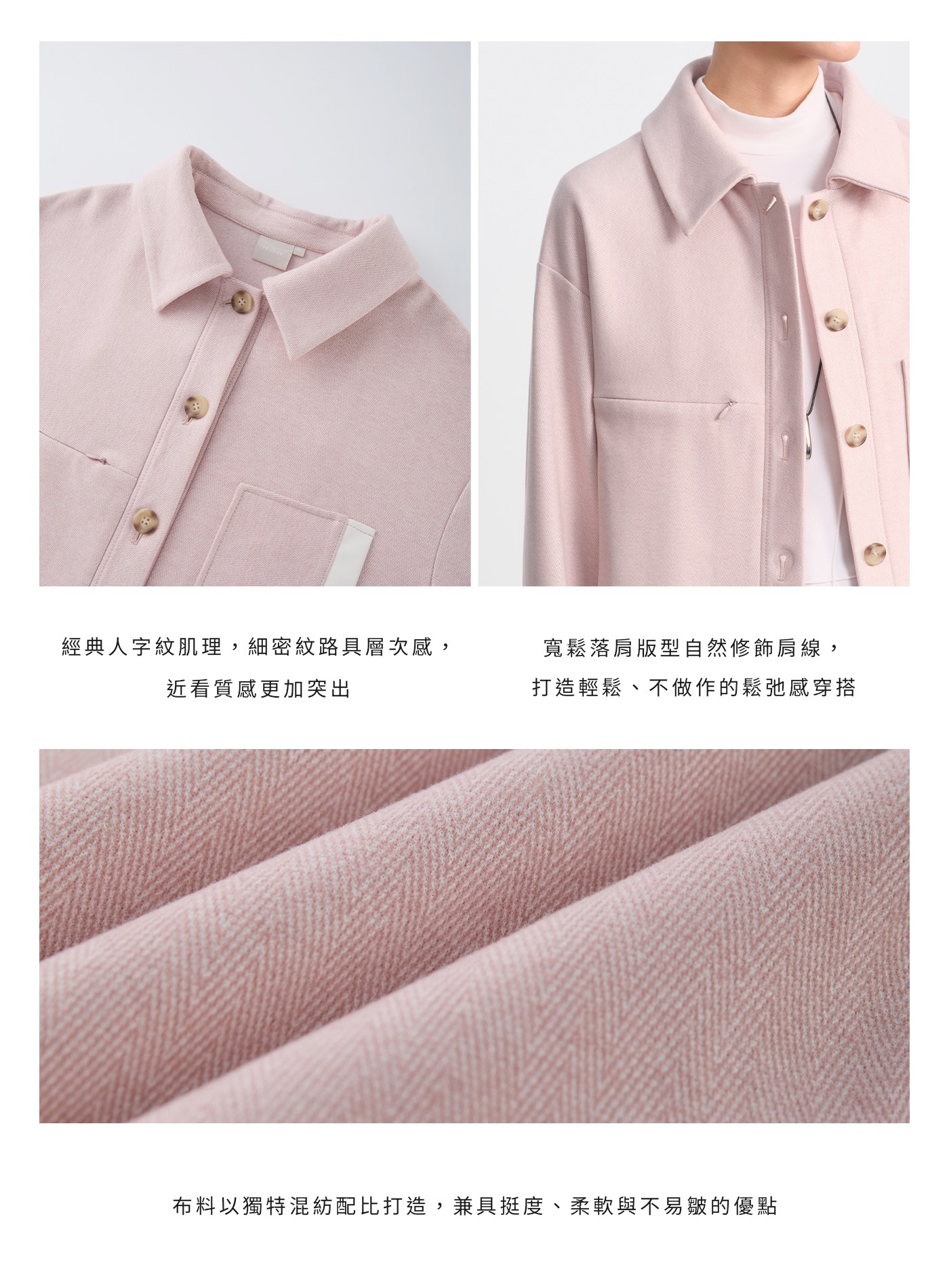 - 採用寬鬆男友風版型,落肩與身形輪廓帶來輕鬆的包覆感,打造鬆弛氛圍