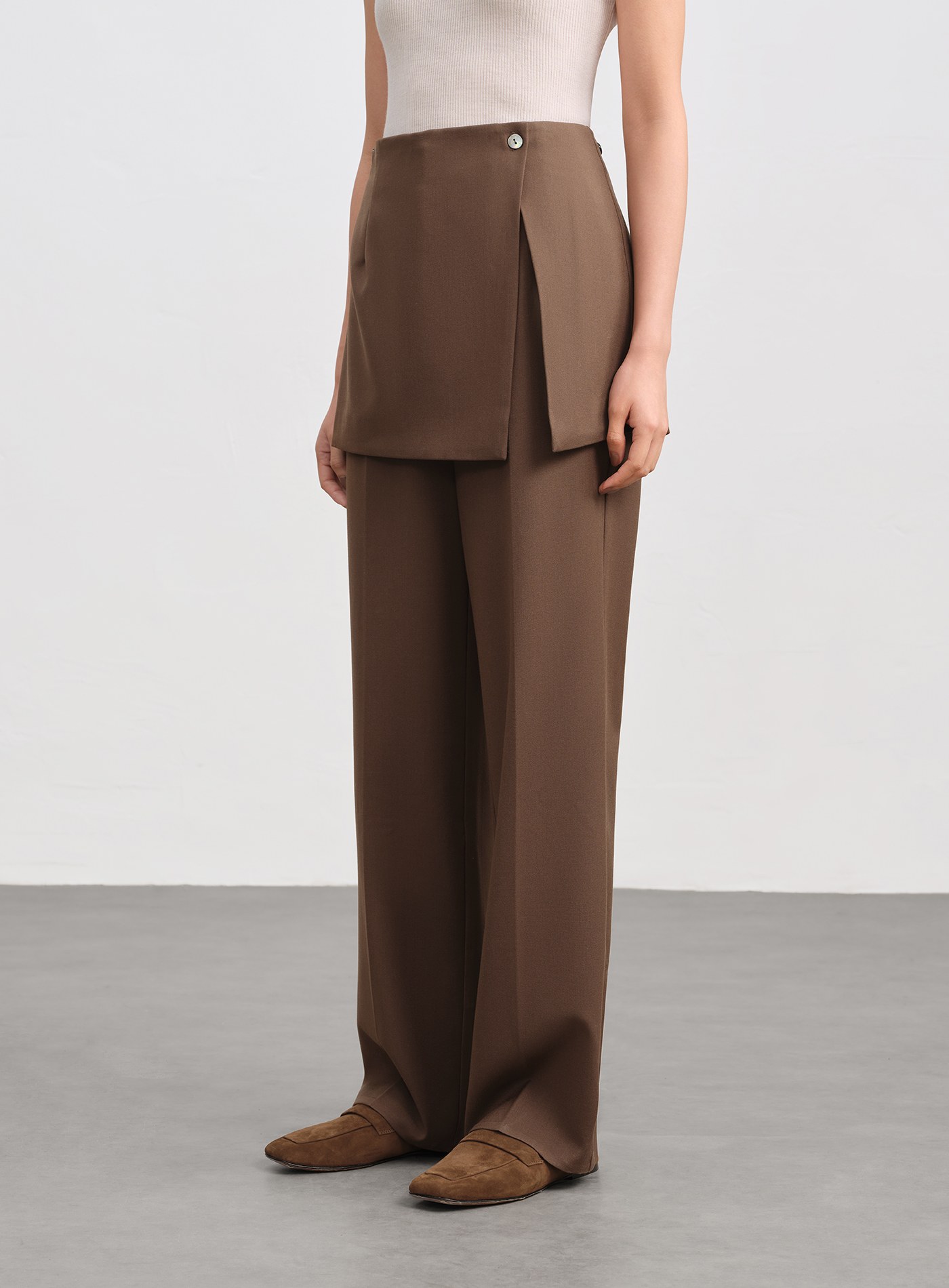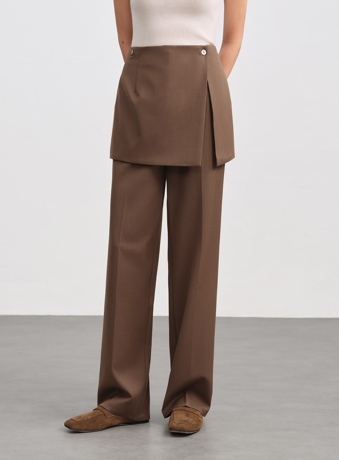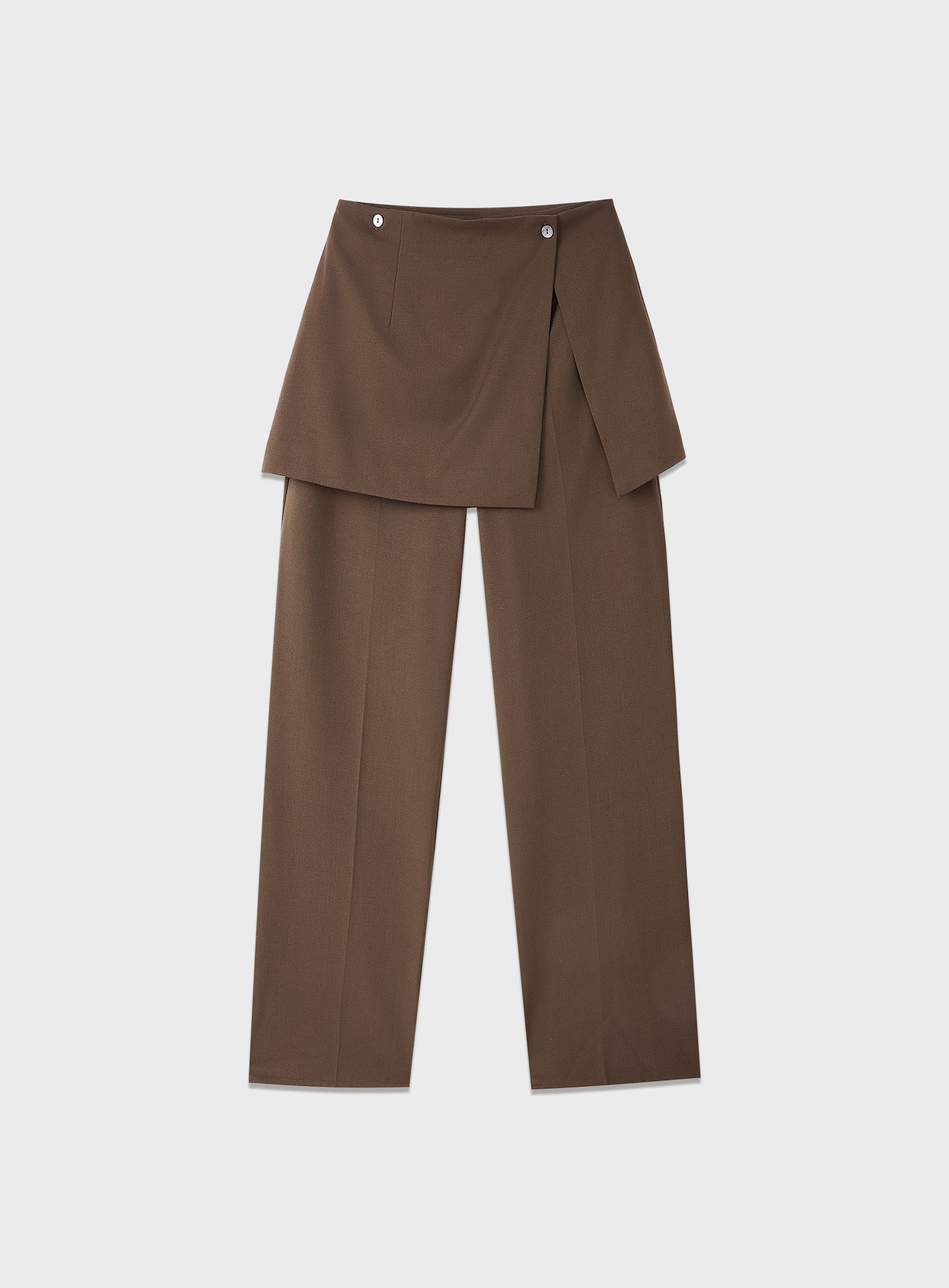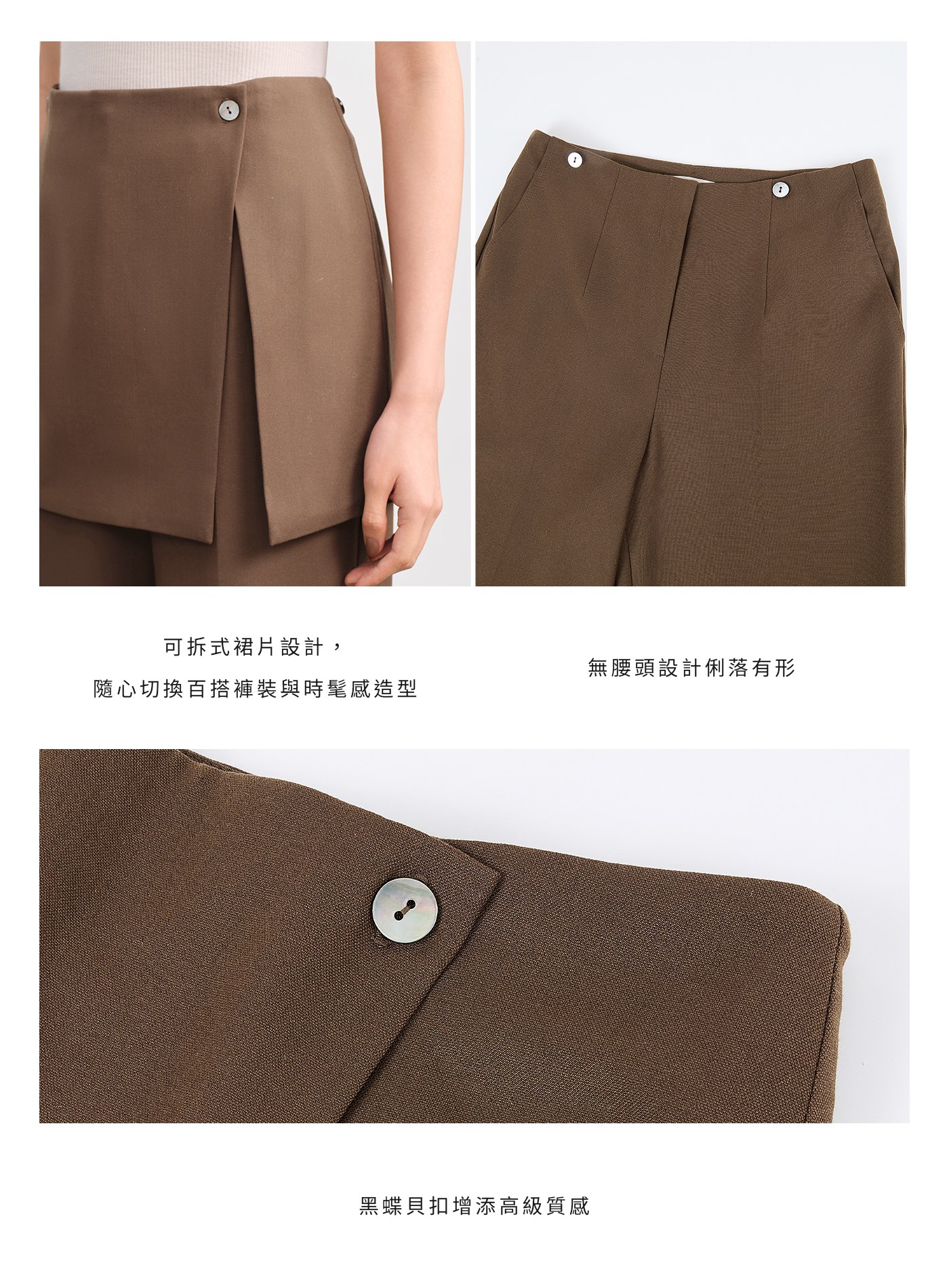 - 經典西裝長褲搭配可拆式圍裹片裙,輕鬆切換幹練與優雅兩種穿搭風格。