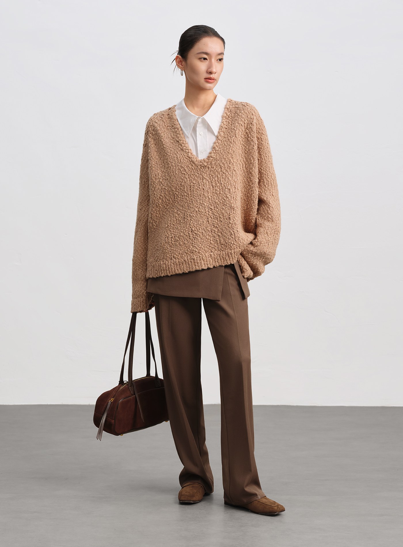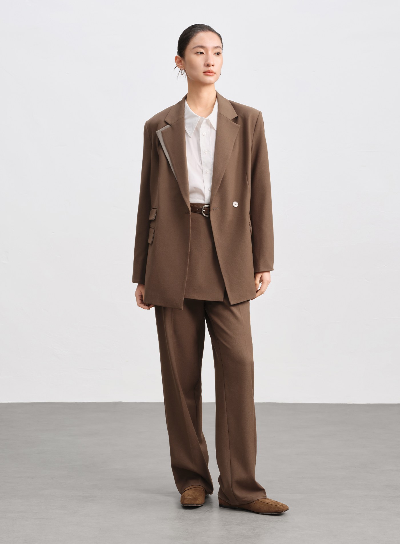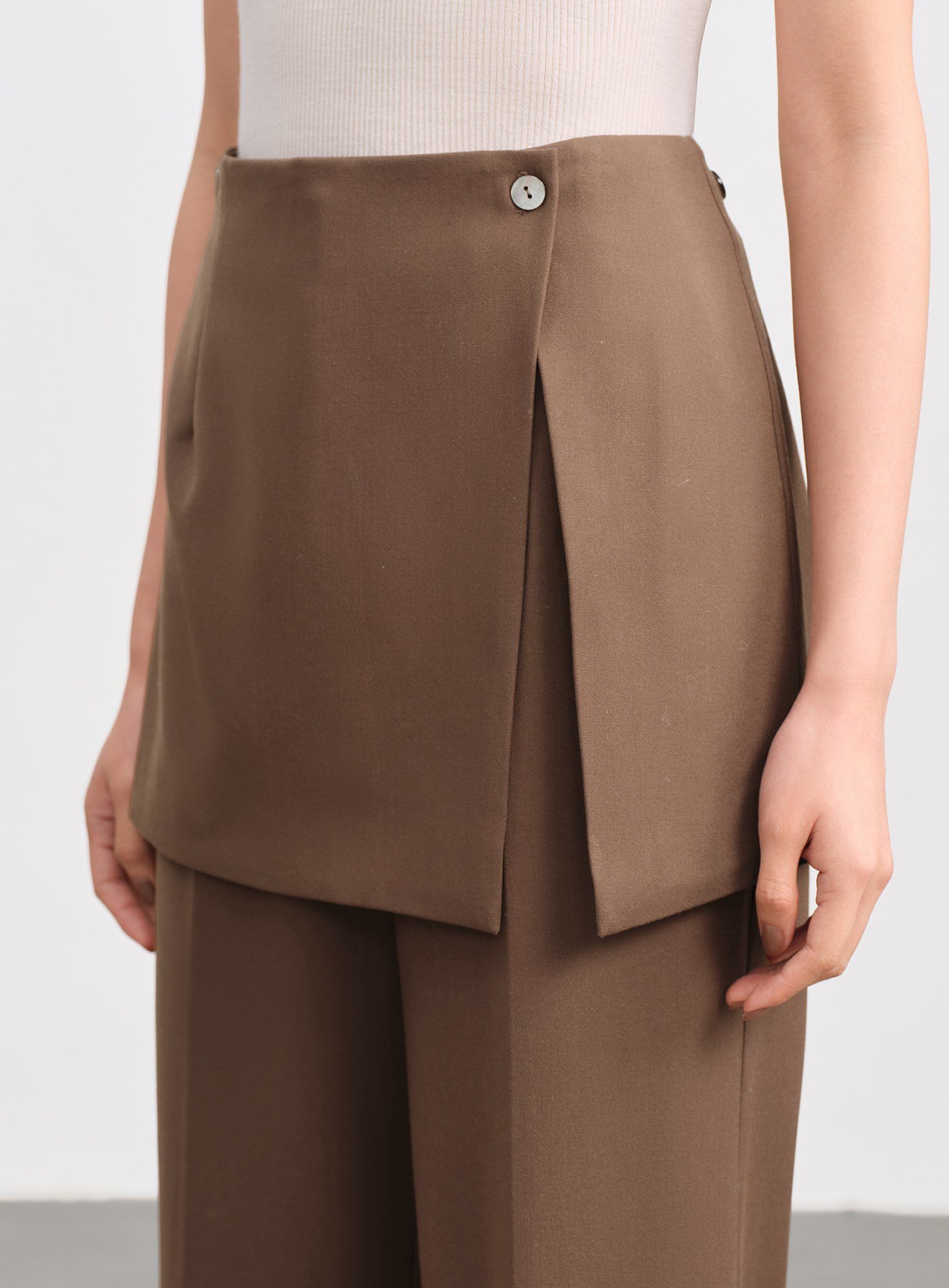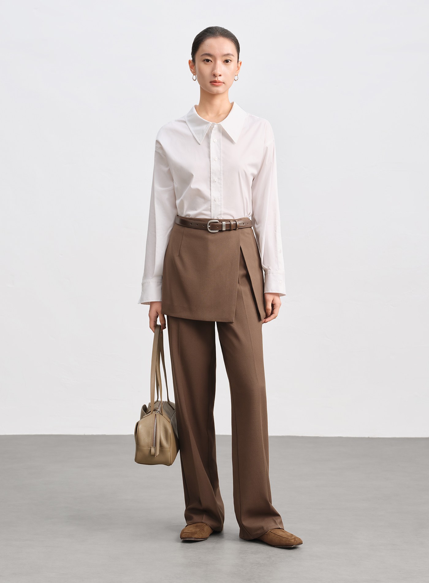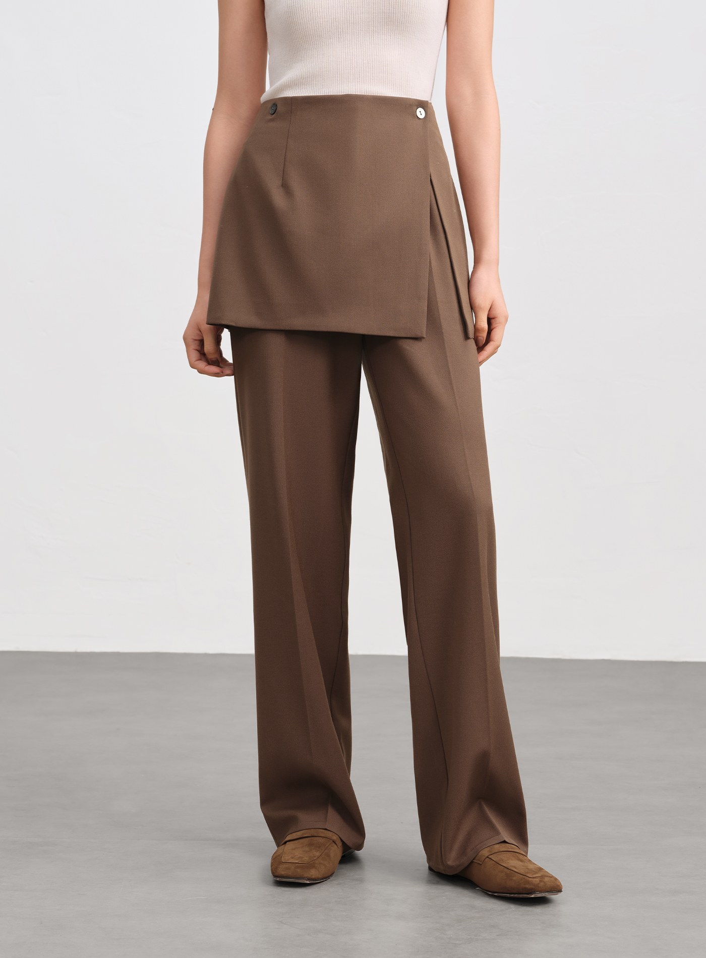 - 經典西裝長褲搭配可拆式圍裹片裙,輕鬆切換幹練與優雅兩種穿搭風格。