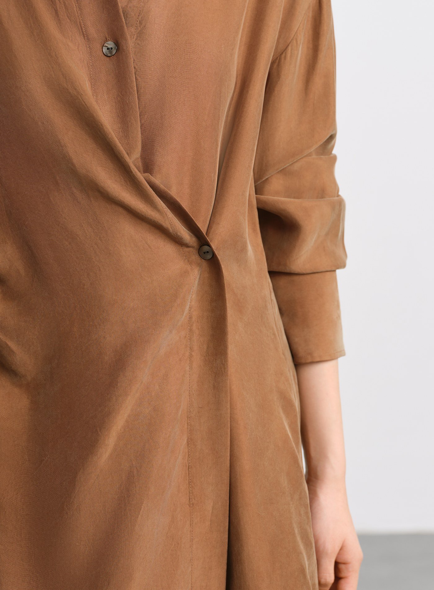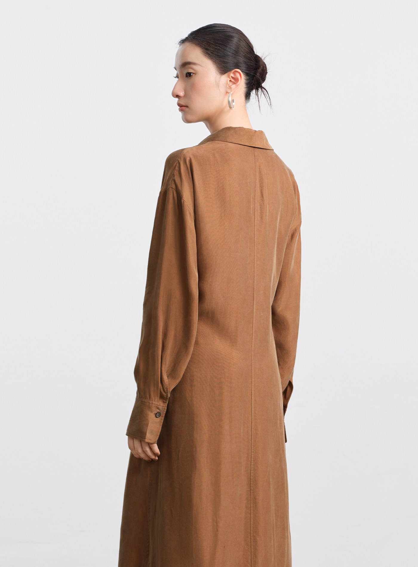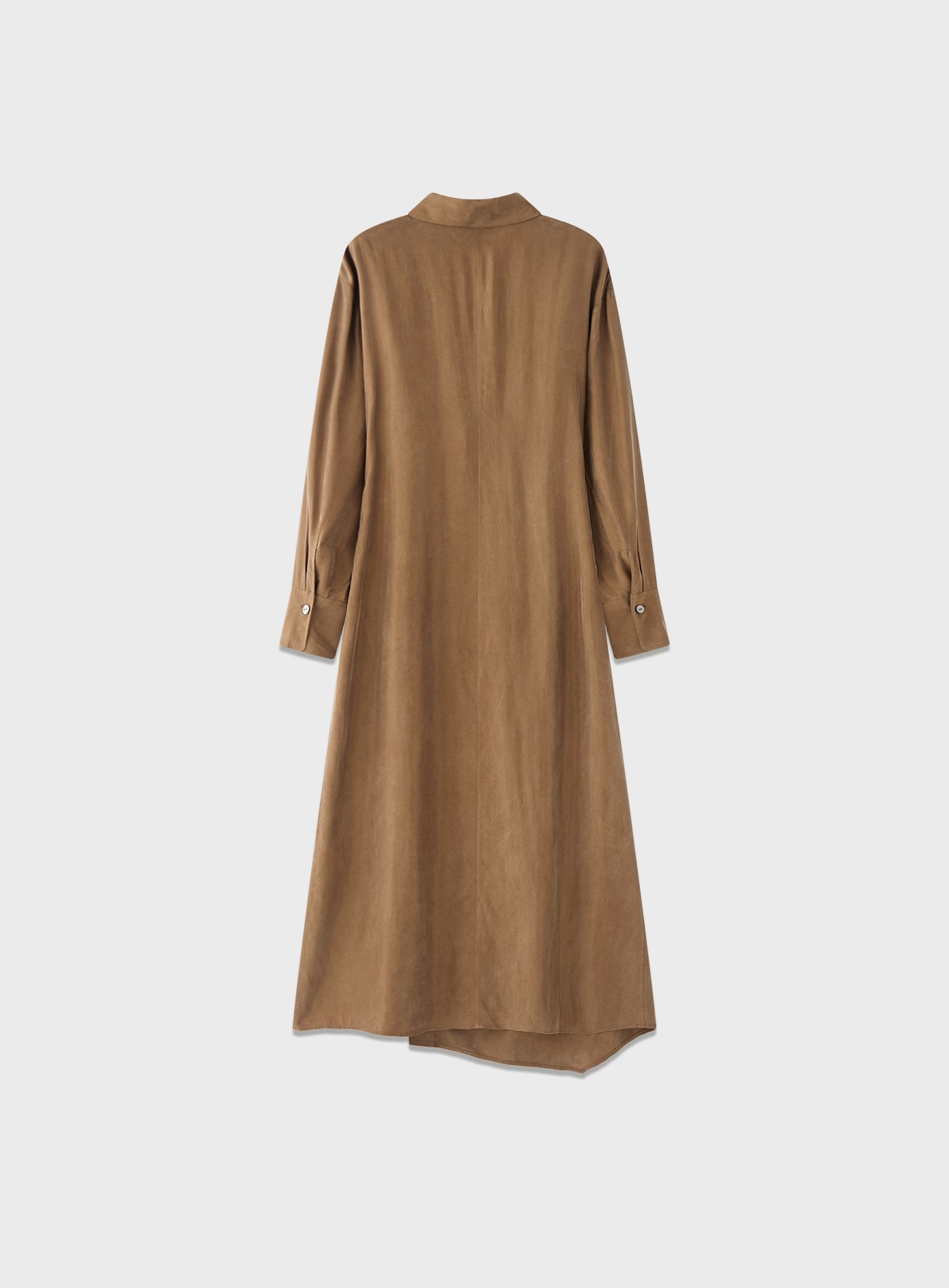 - 材質選用銅氨混紡砂洗布料,帶著細膩霧面與絲滑觸感,垂墜線條乾淨利落,不易皺、透氣、親膚