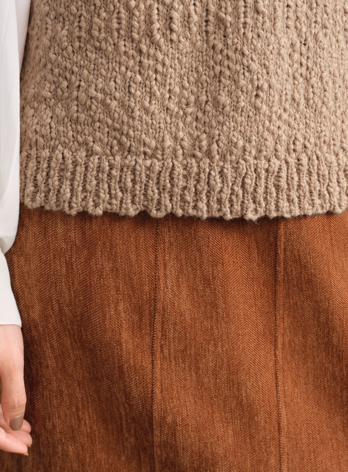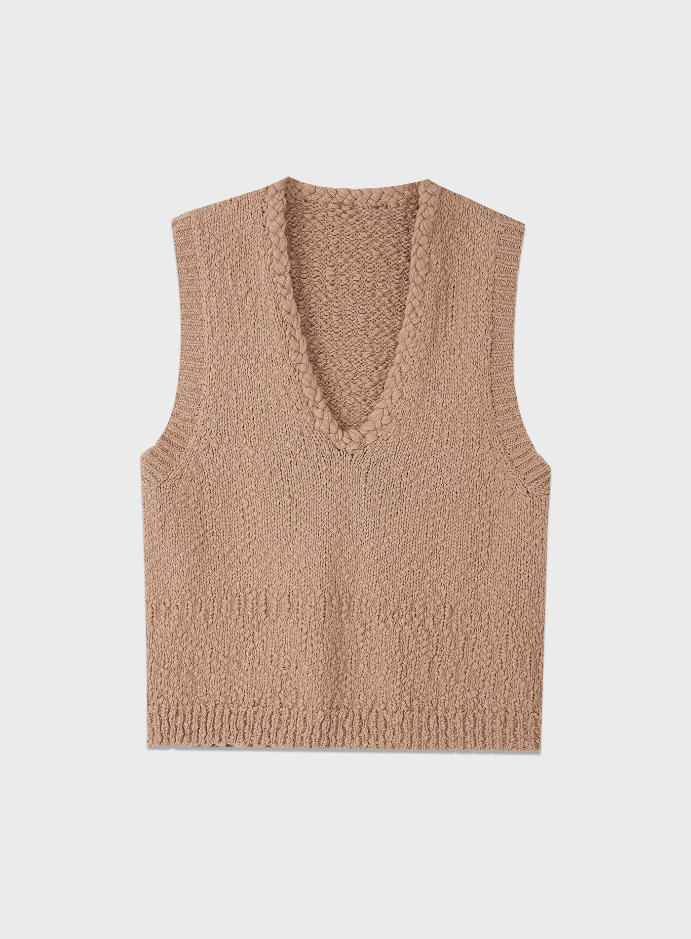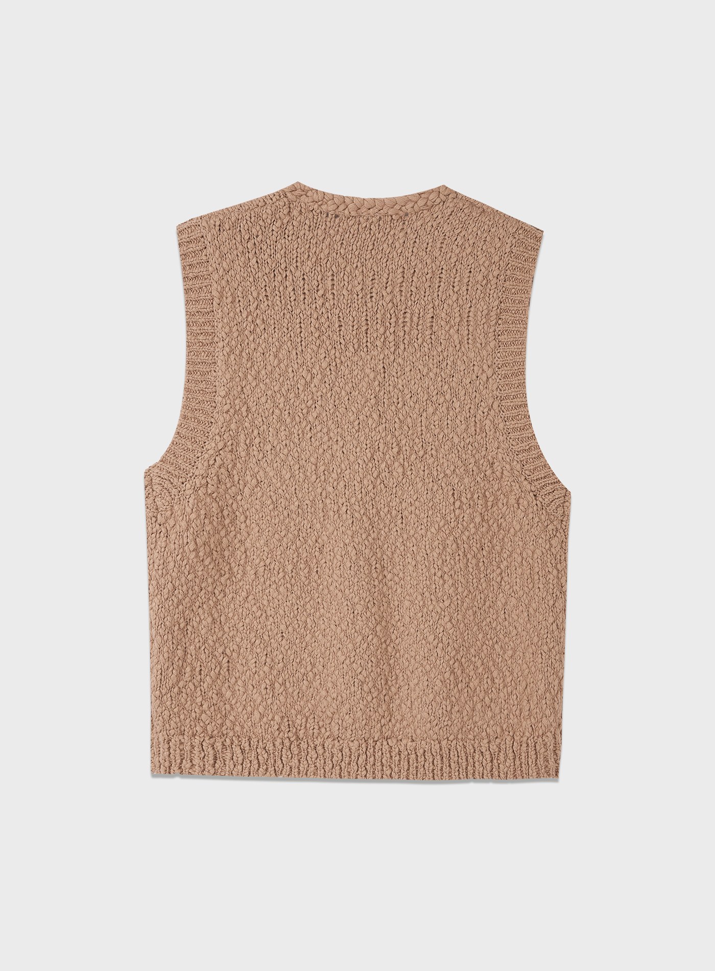 - 選用大肚紗編織,粗細交錯的自然節點形成細緻顆粒肌理,視覺更有層次