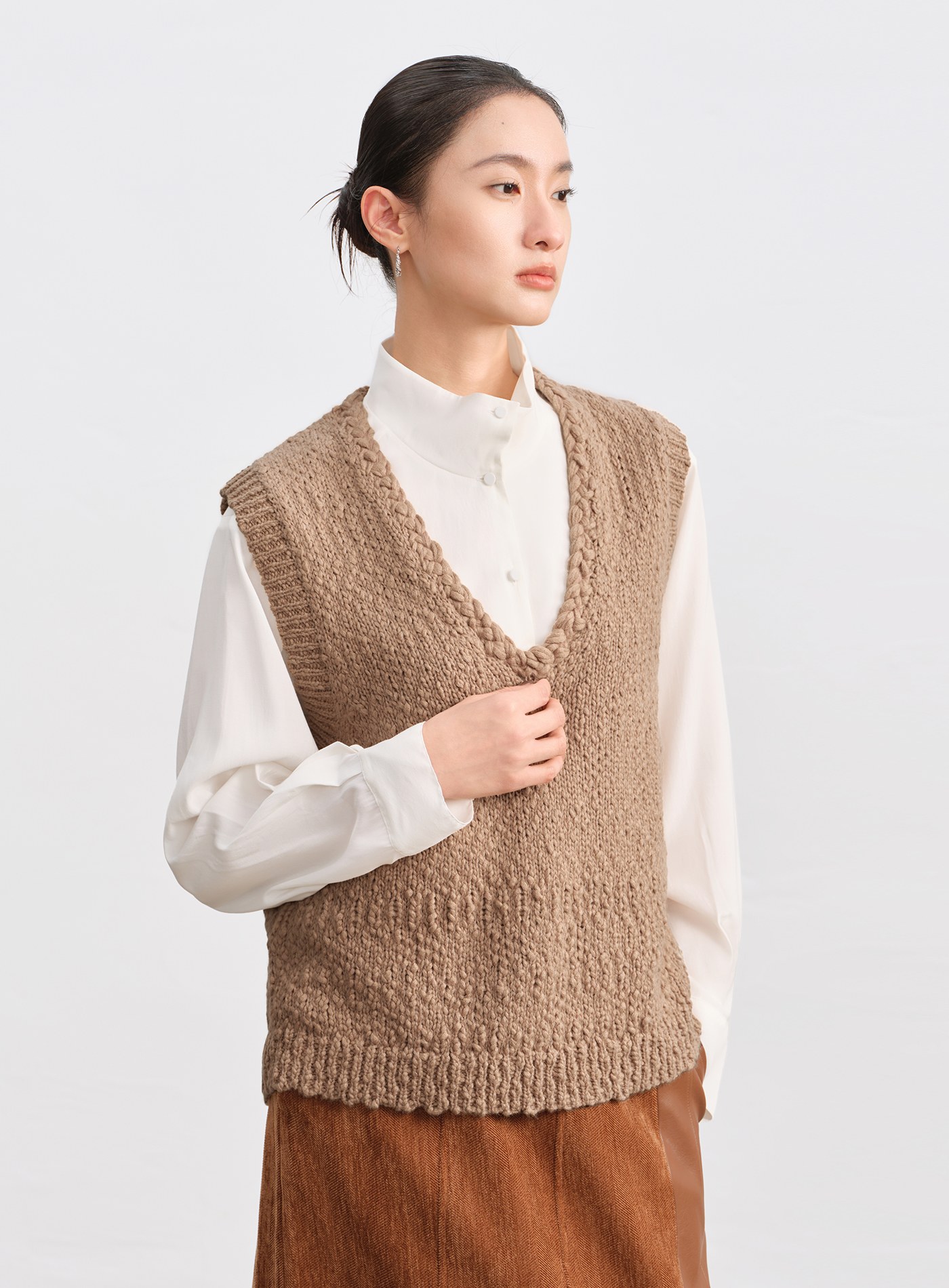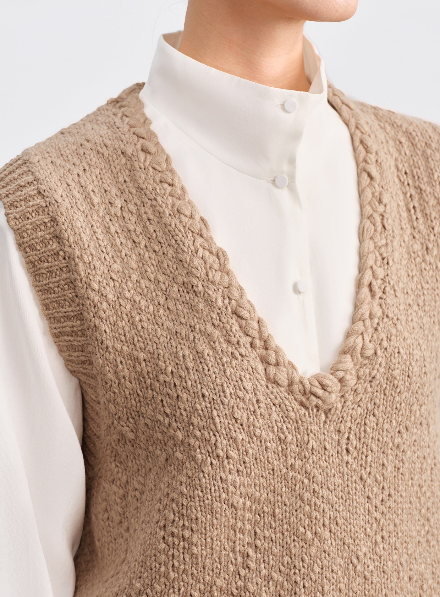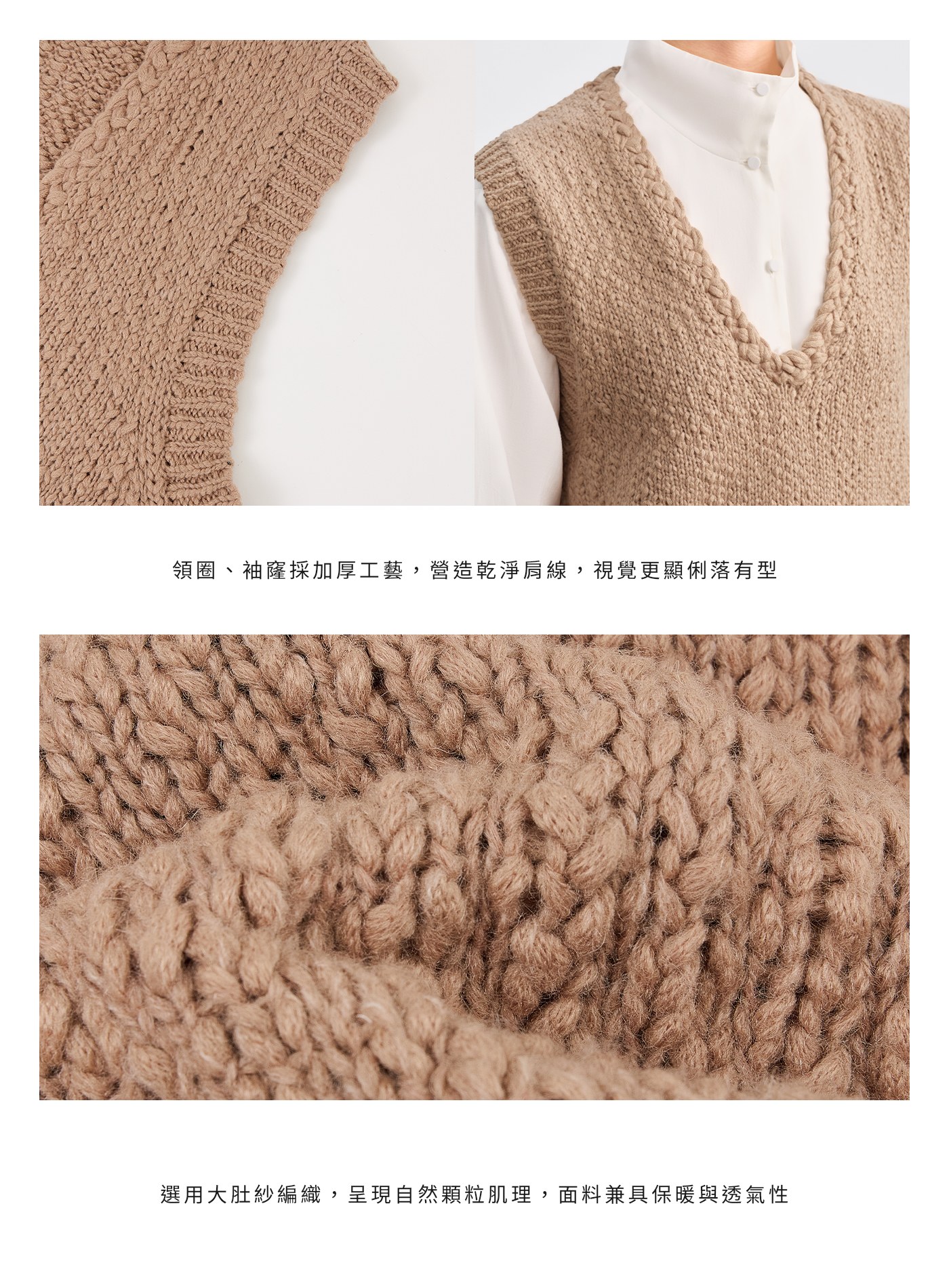 - 領圈與袖窿以立體針織工藝強化肩部輪廓,微微挺度更顯俐落有型