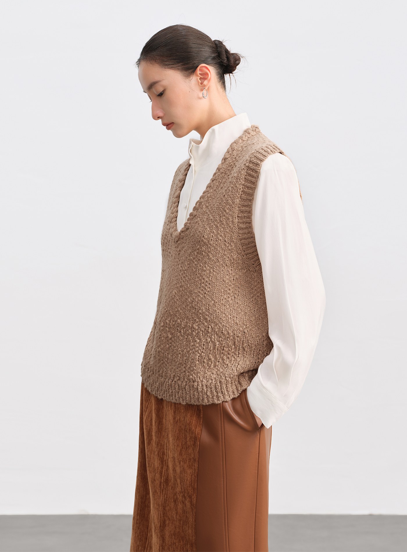 - 俐落 V 領修飾頸部線條;無袖版型讓穿著更自由