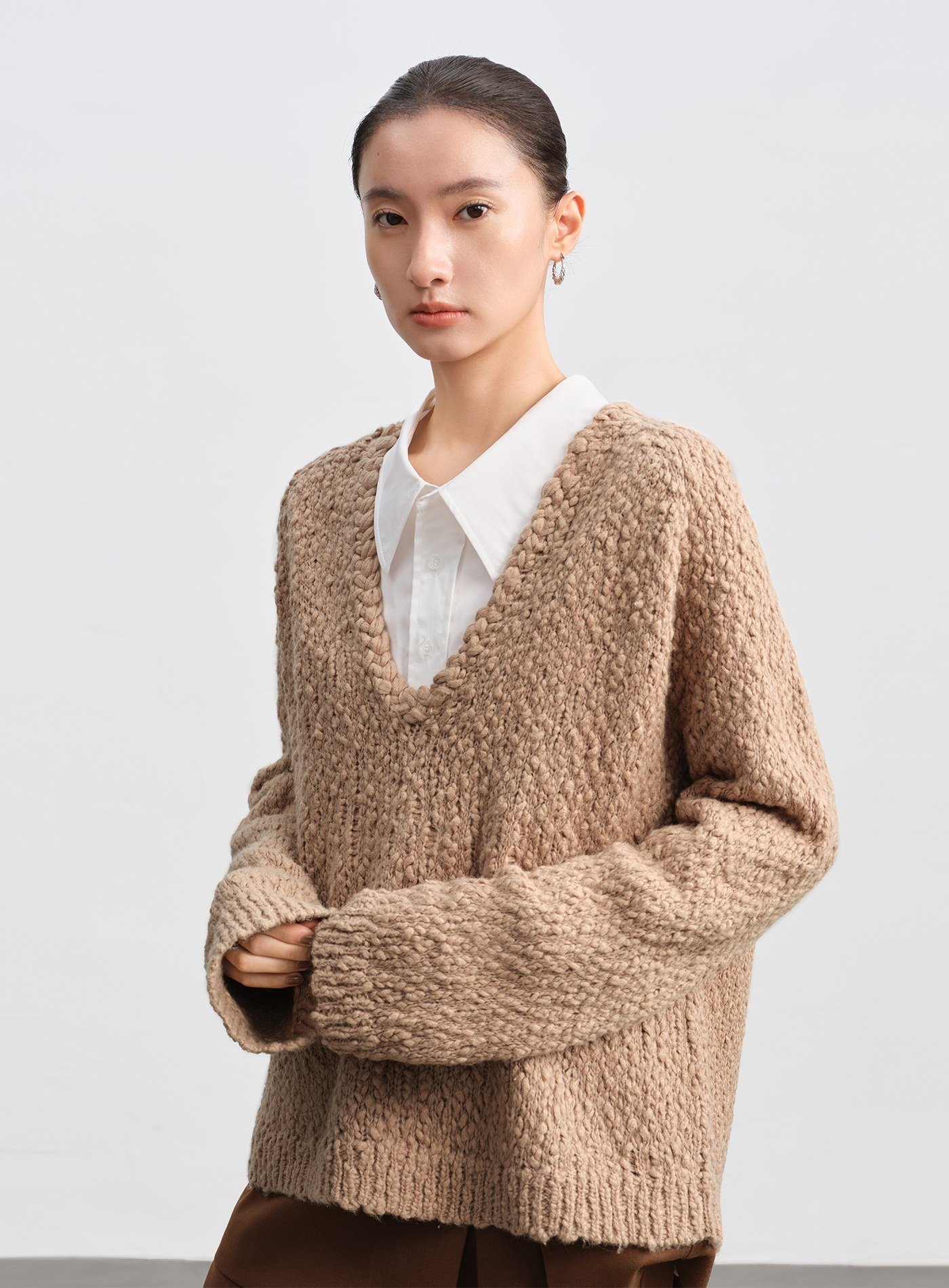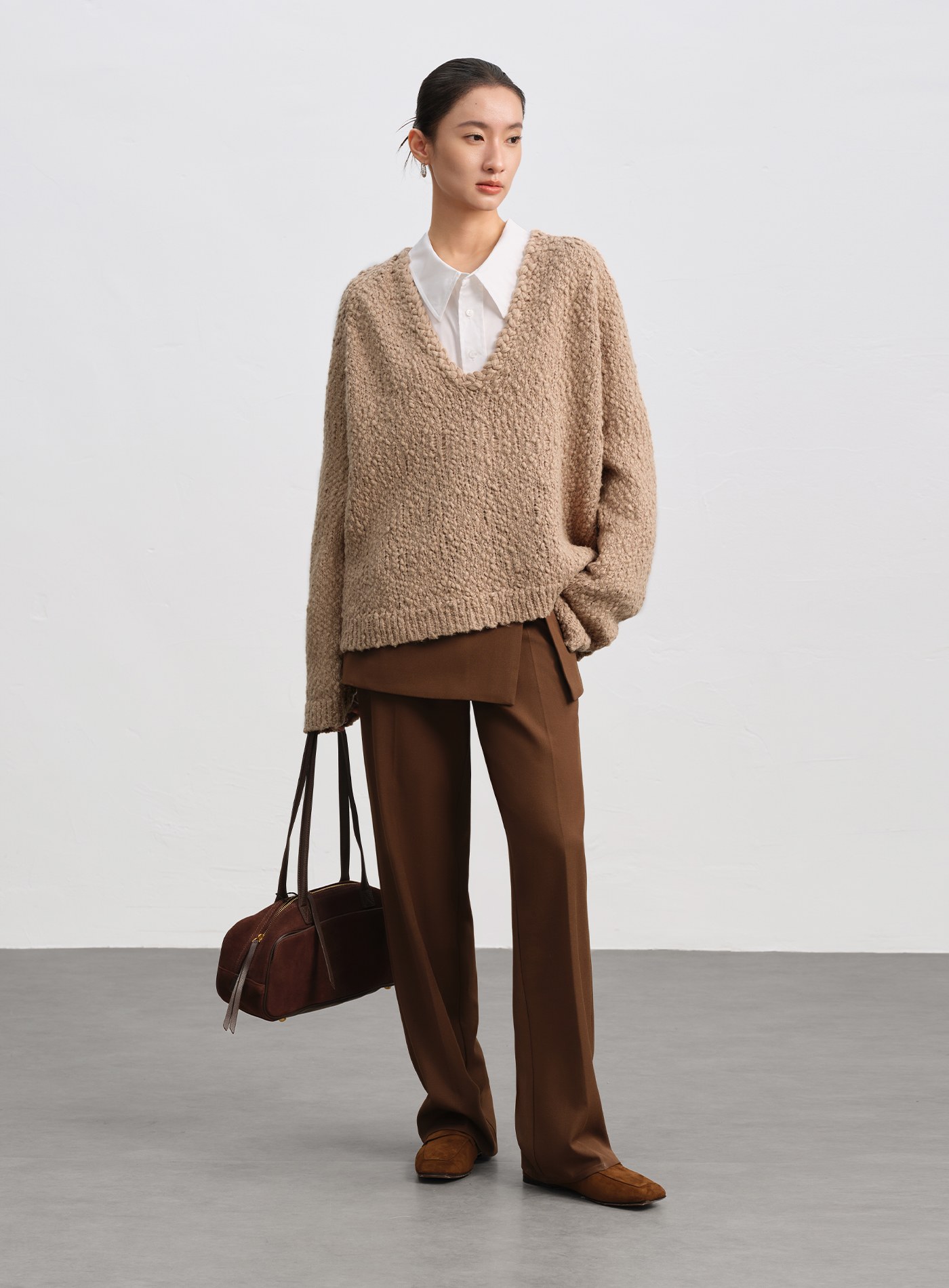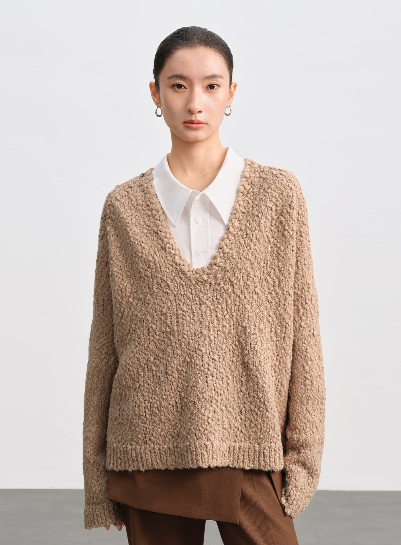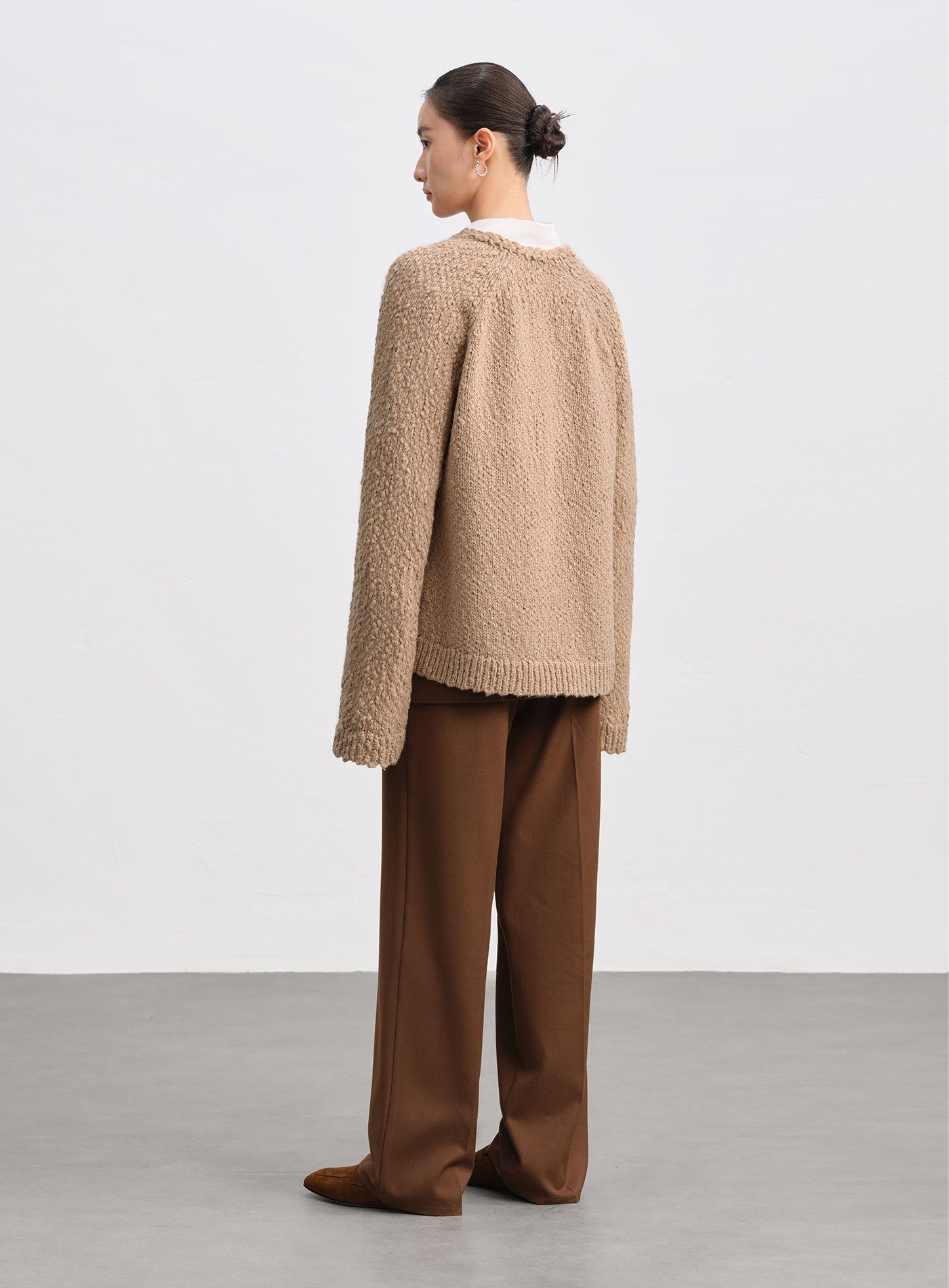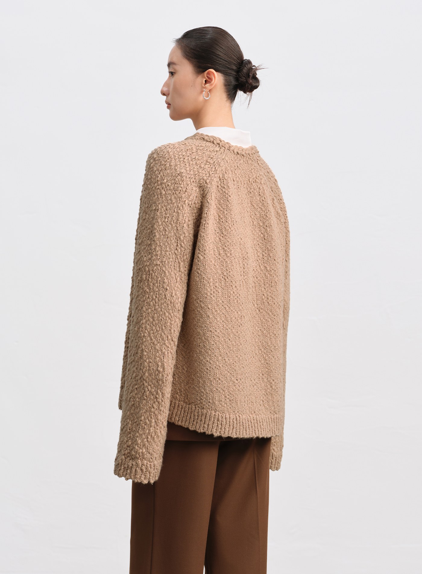 - 選用大肚紗編織,粗細交錯的自然節點形成細緻顆粒肌理,視覺更有層次