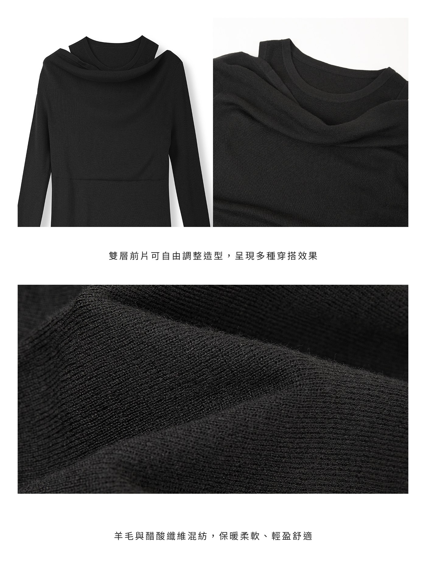 - 前片雙層設計可自由調整疊穿效果,簡約卻有造型感
