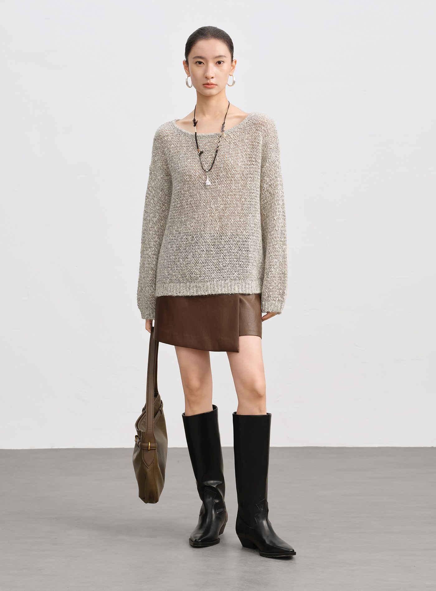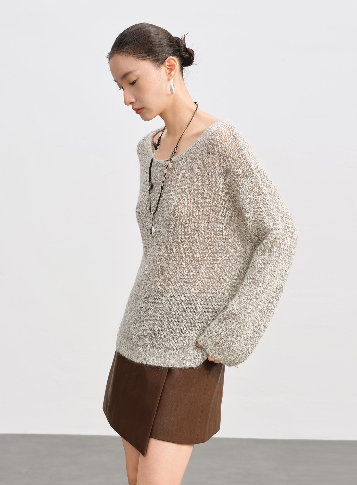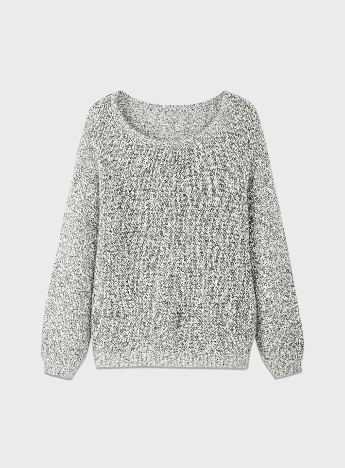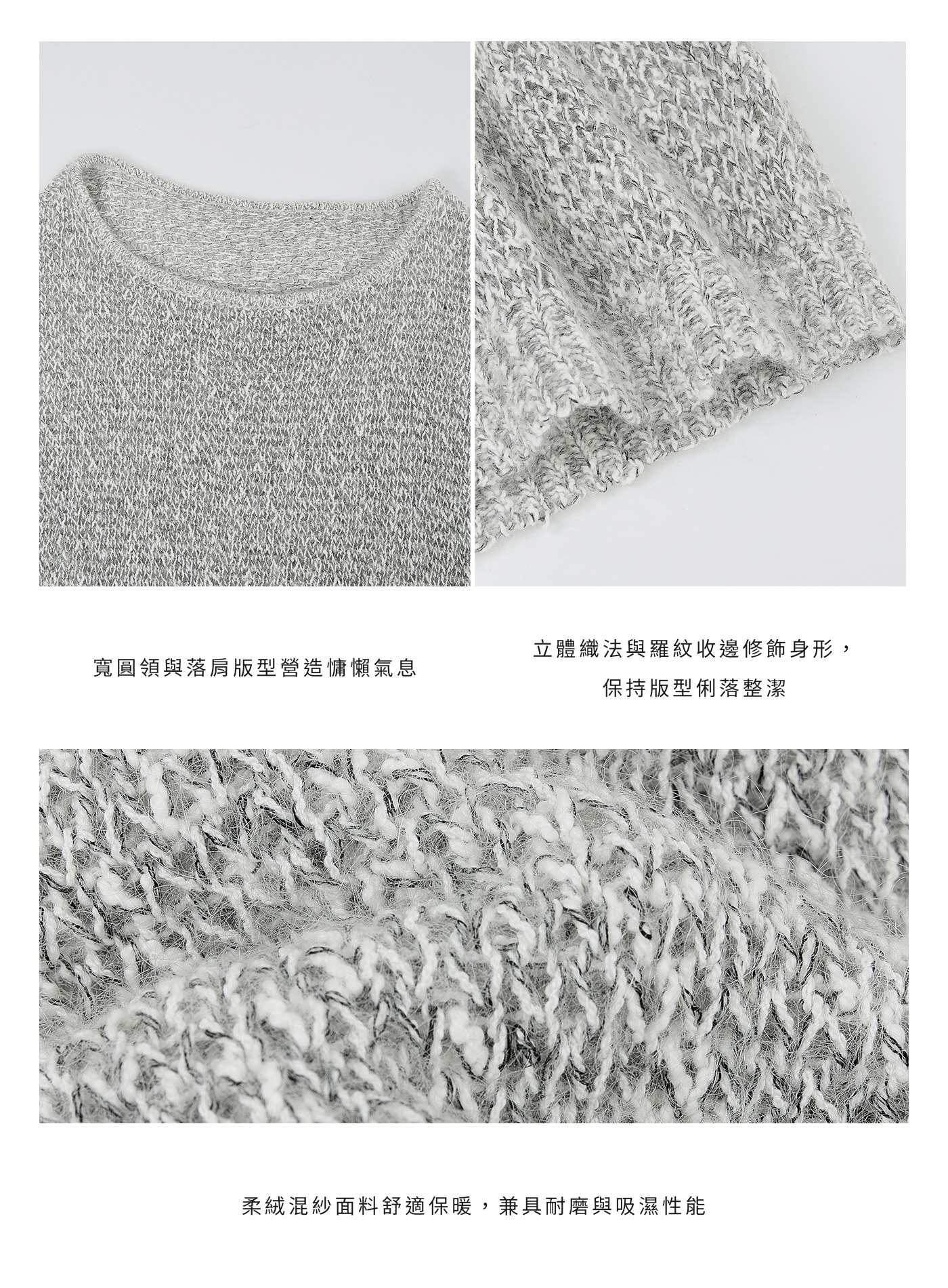 - 寬圓領落肩剪裁搭配立體織法,巧妙修飾身形比例,打造慵懶又舒適的北歐風格