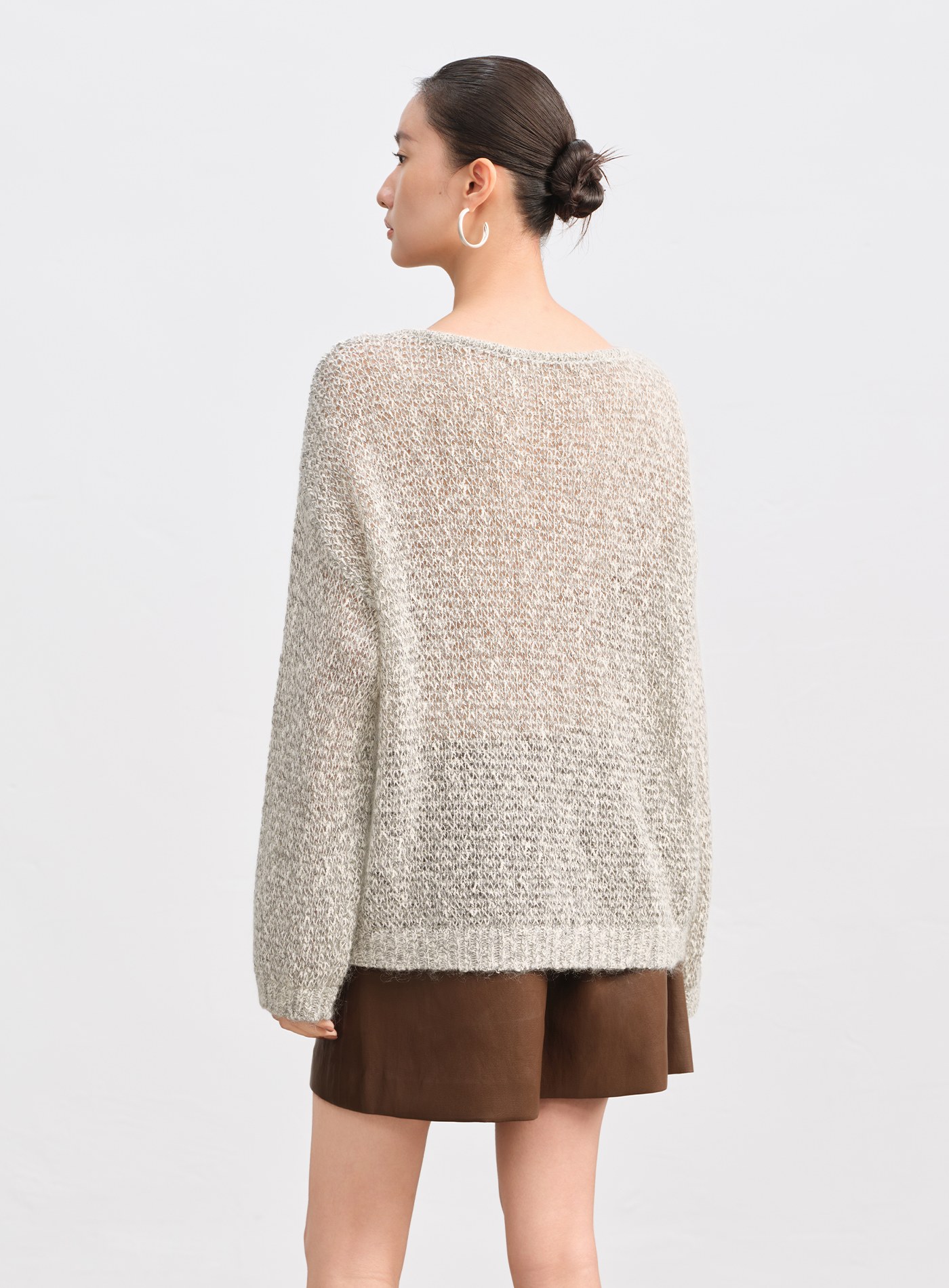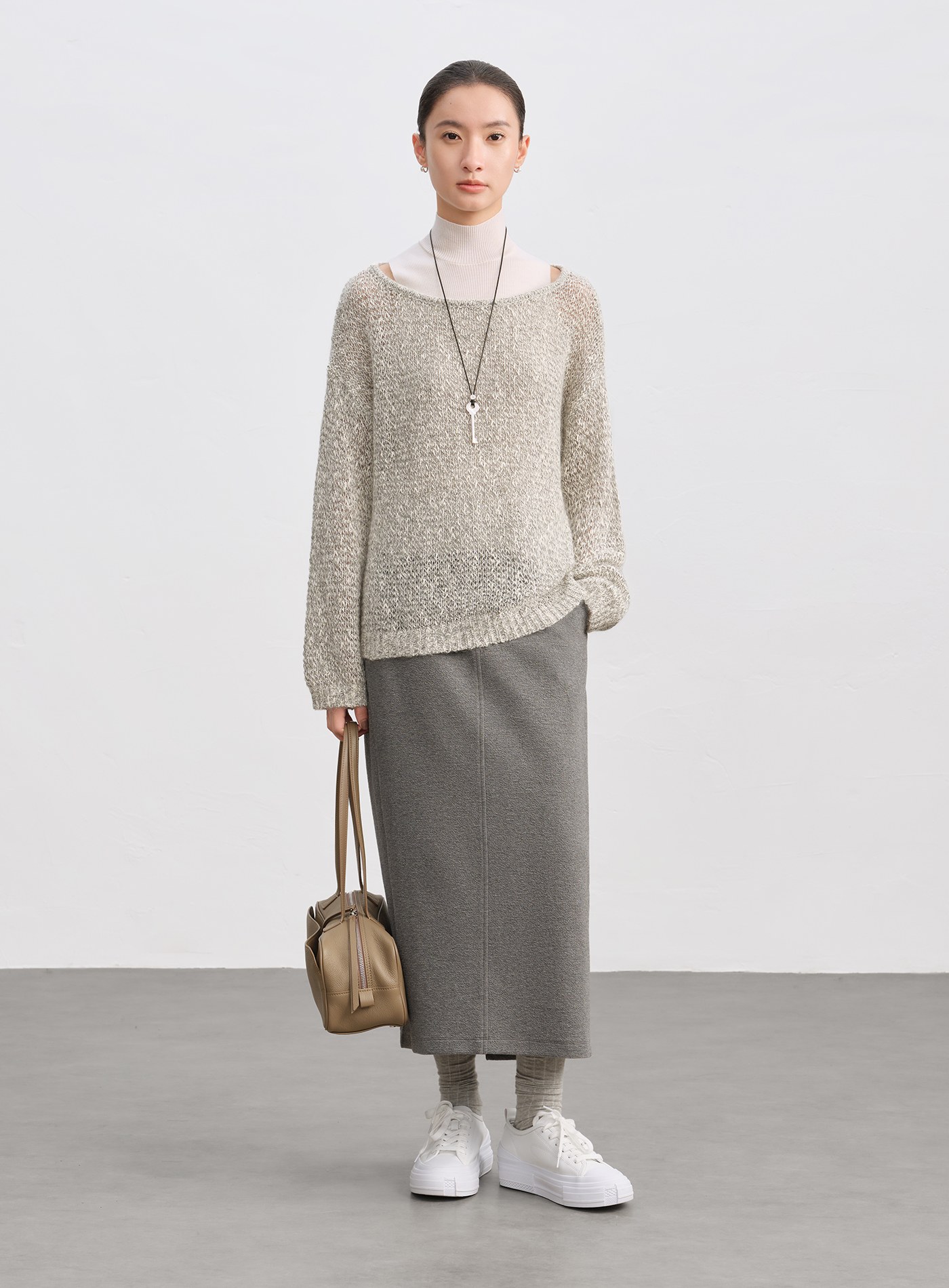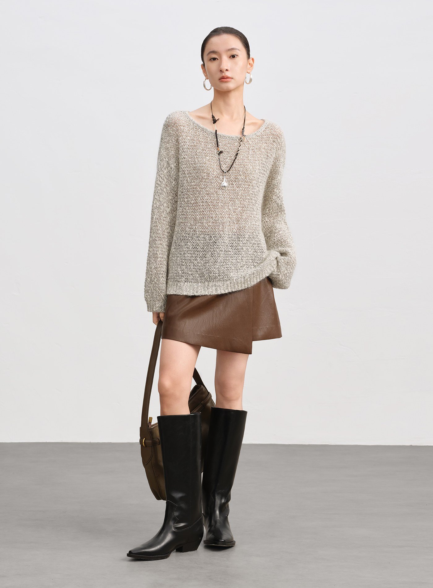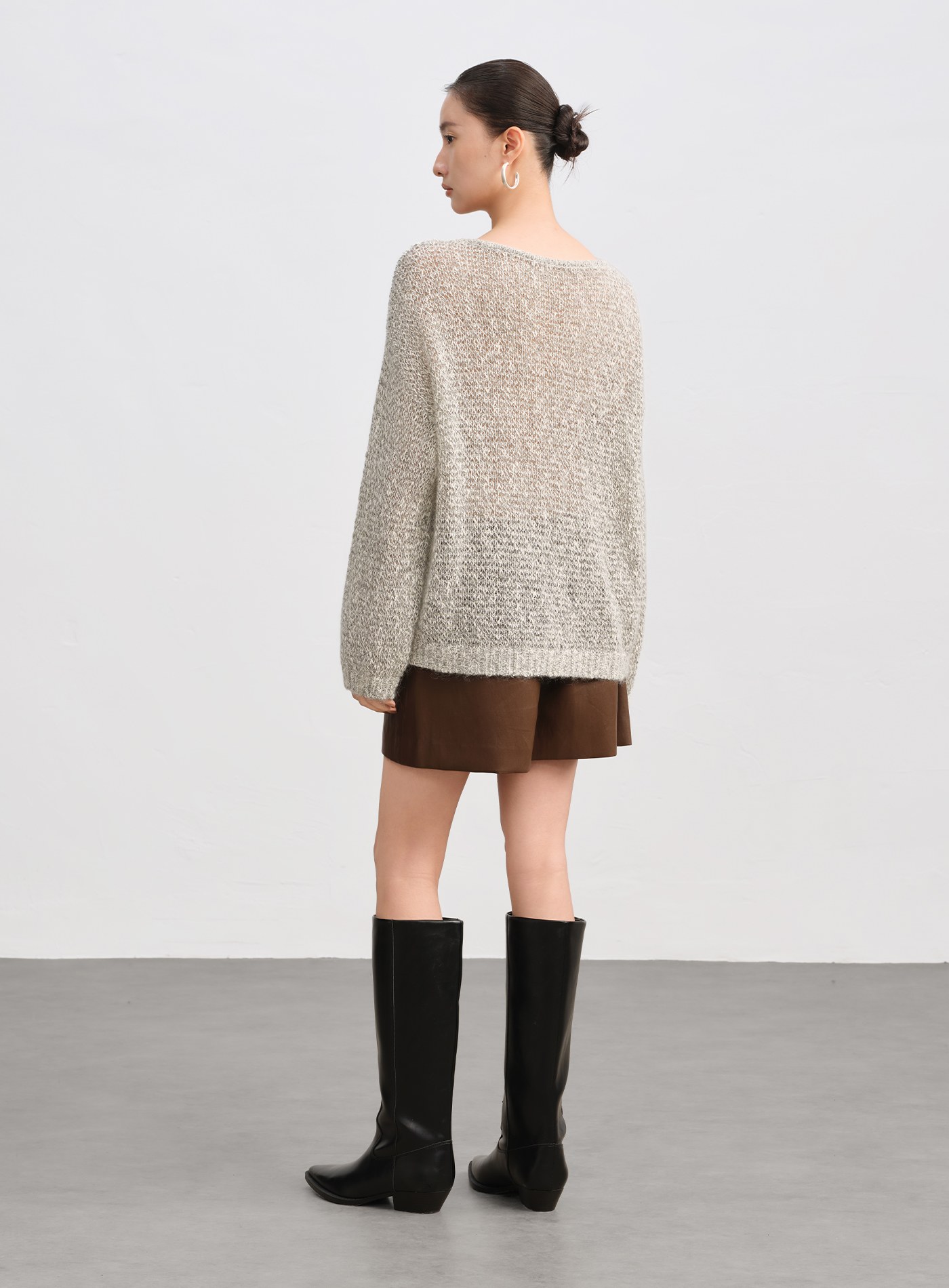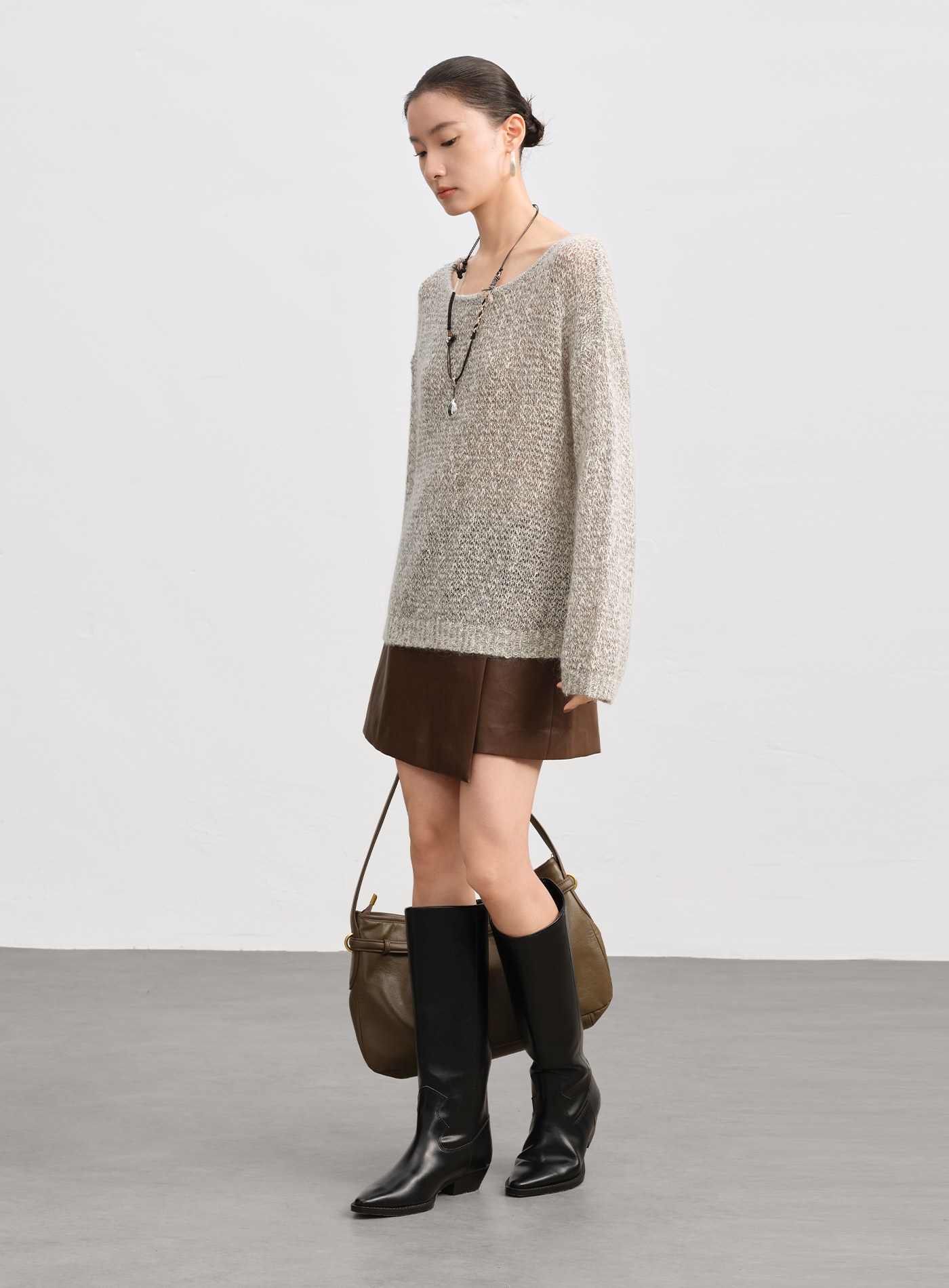- 寬圓領落肩剪裁搭配立體織法,巧妙修飾身形比例,打造慵懶又舒適的北歐風格