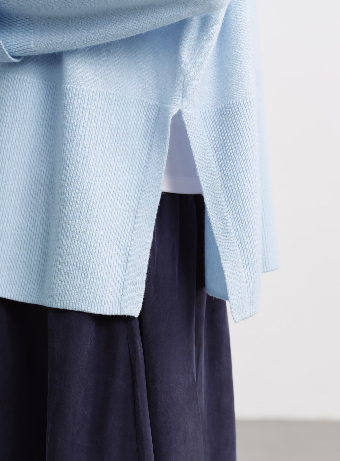 - 側邊高開衩設計方便活動與疊穿;袖口螺紋可翻折一半,形成層次變化,為簡單造型增添趣味性