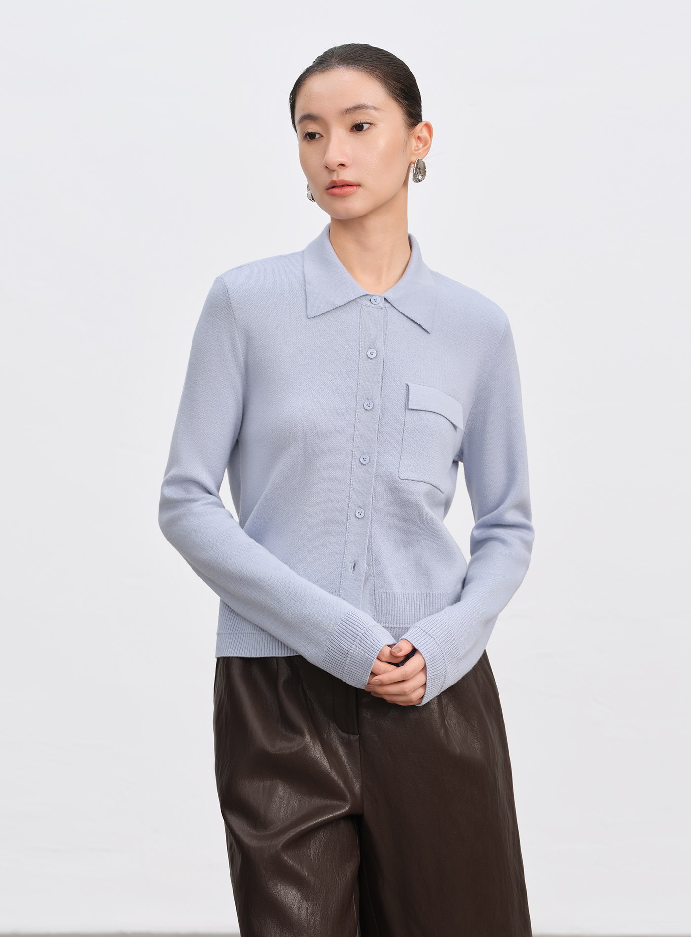 - 嚴選高密絲光綿羊毛混紡,觸感柔滑親膚,保暖輕盈,具優異抗皺與回彈力,歷經多次洗滌依舊挺廓如新