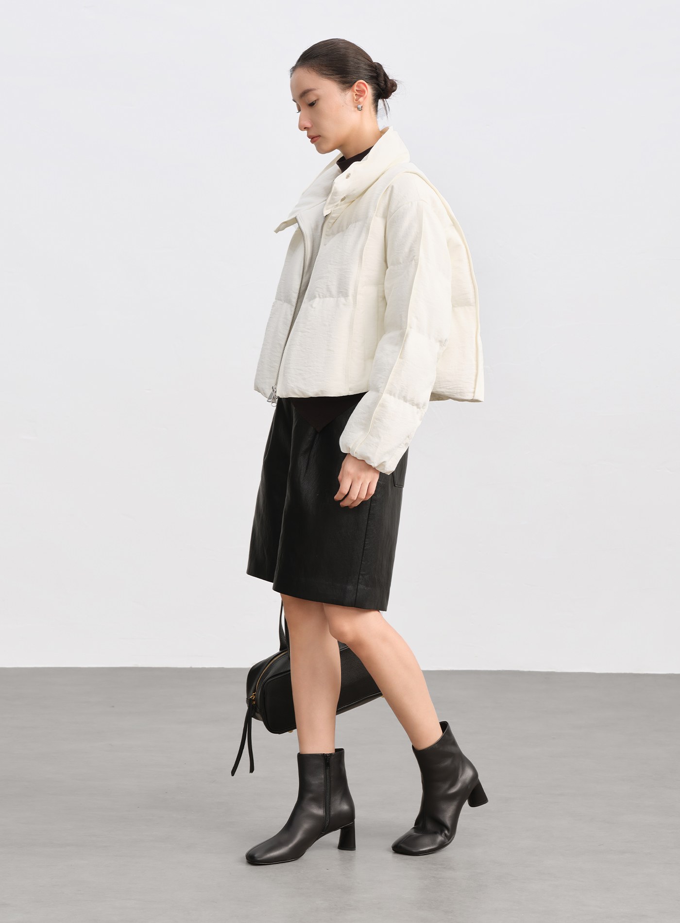 - 立領搭配H型箱型線條,打造簡潔俐落的輪廓