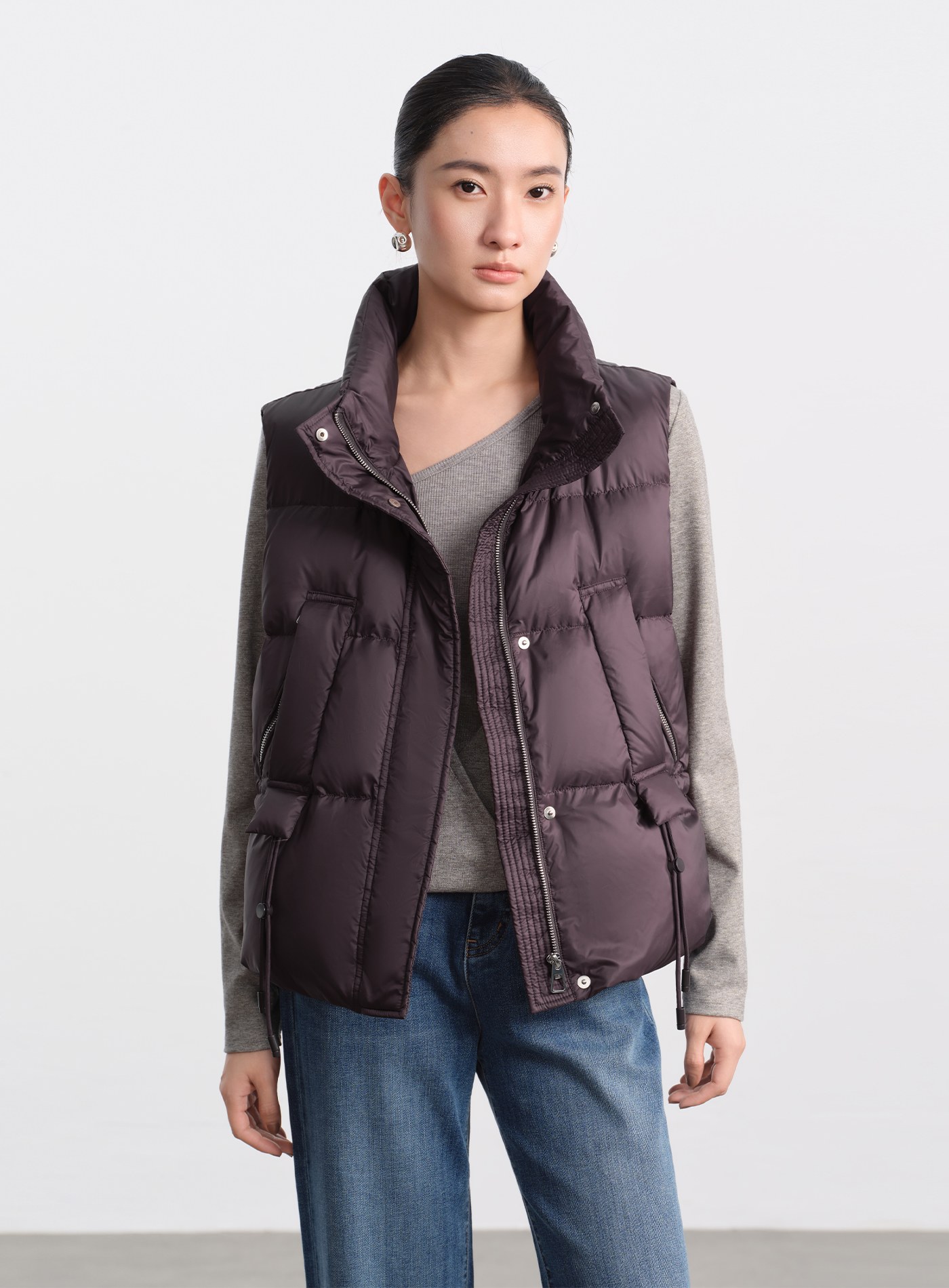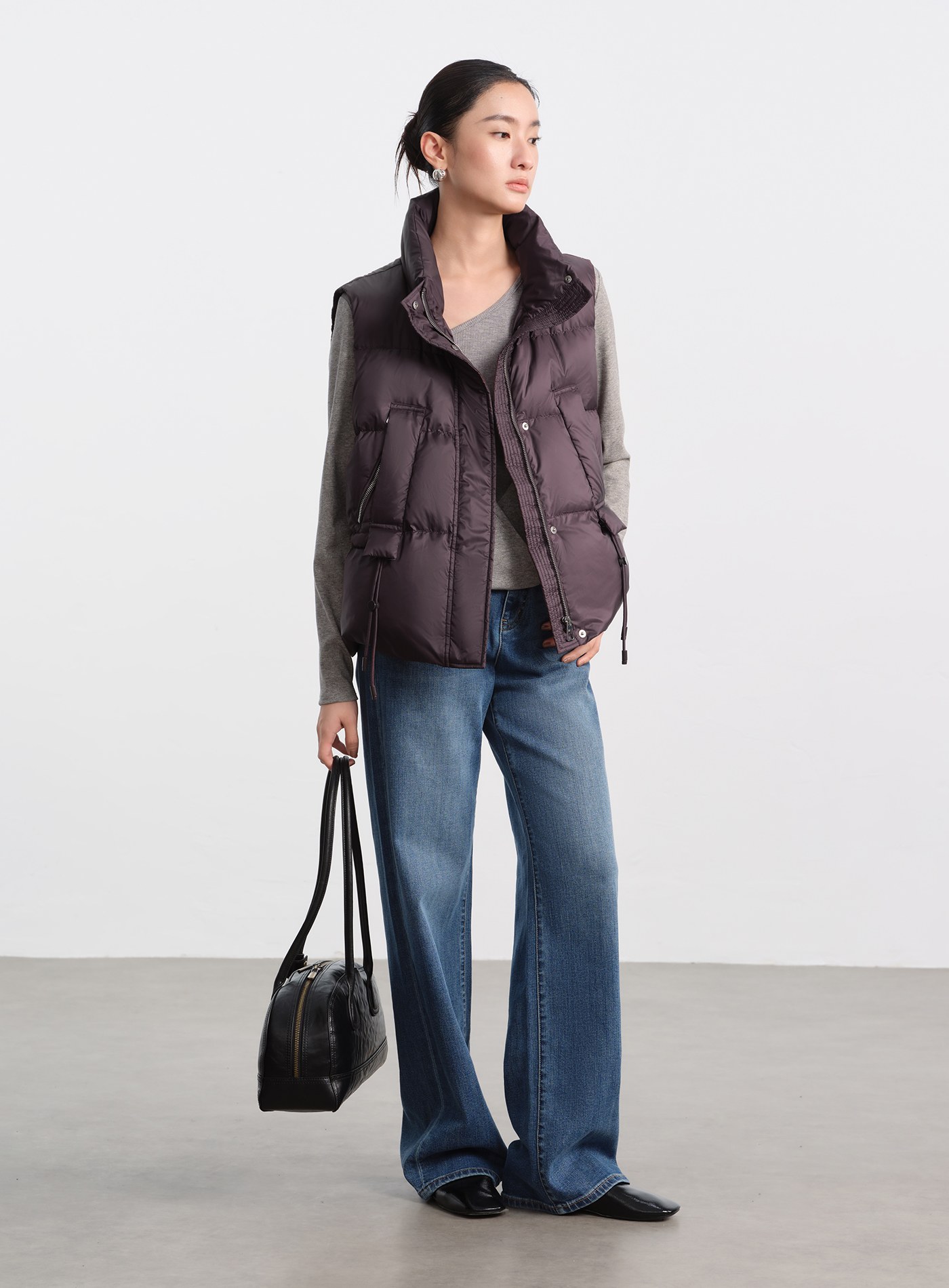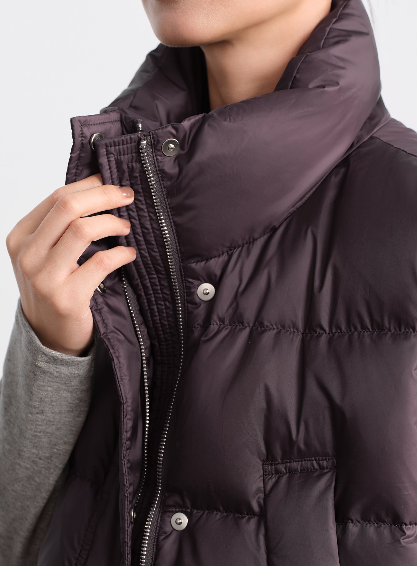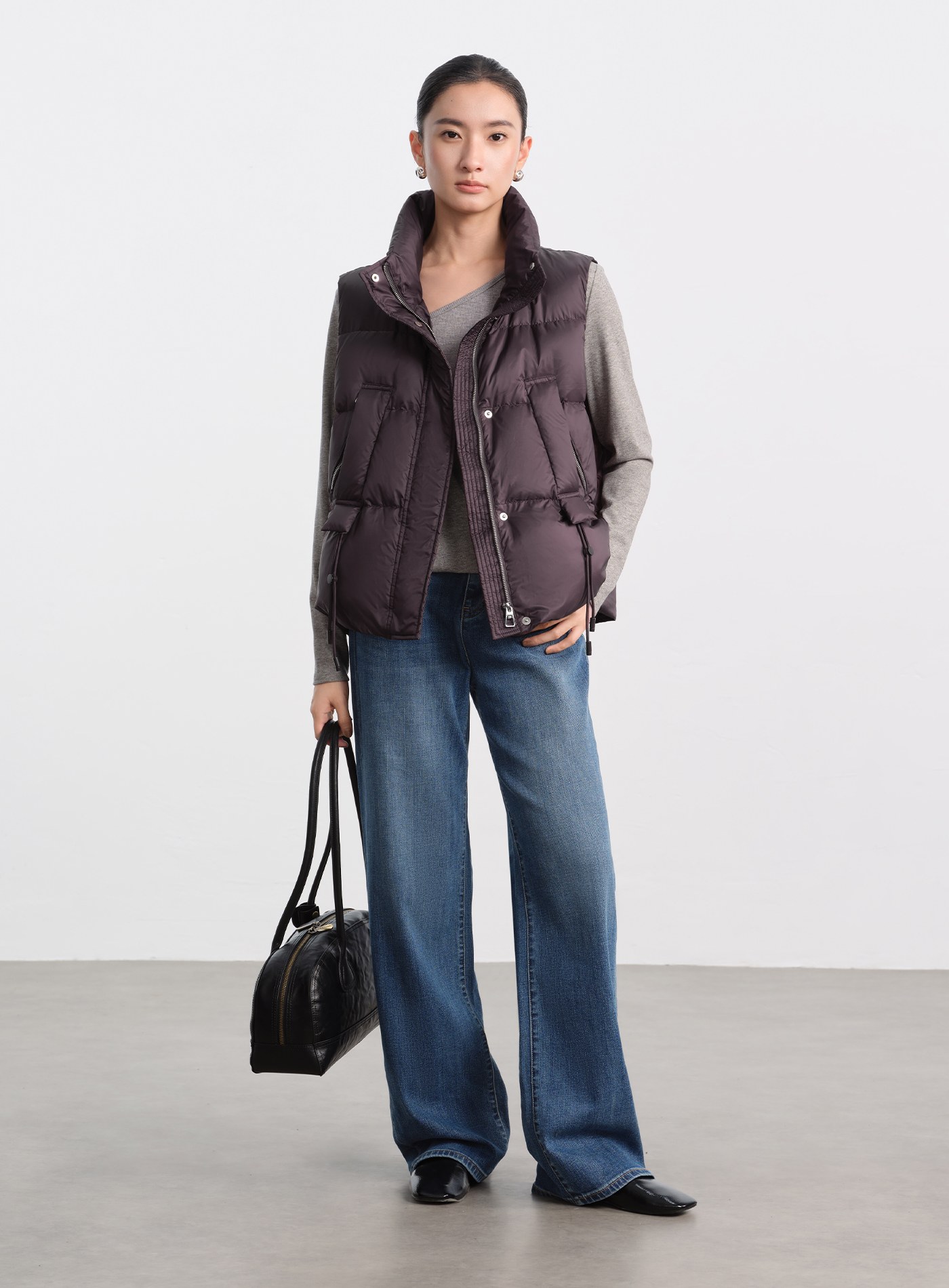 羊毛雙面呢圓領不對稱拼接大衣$191 USD