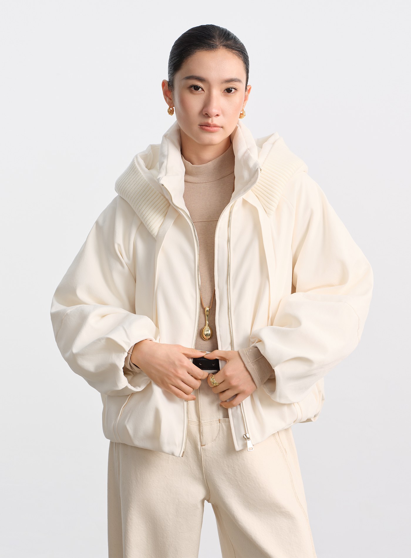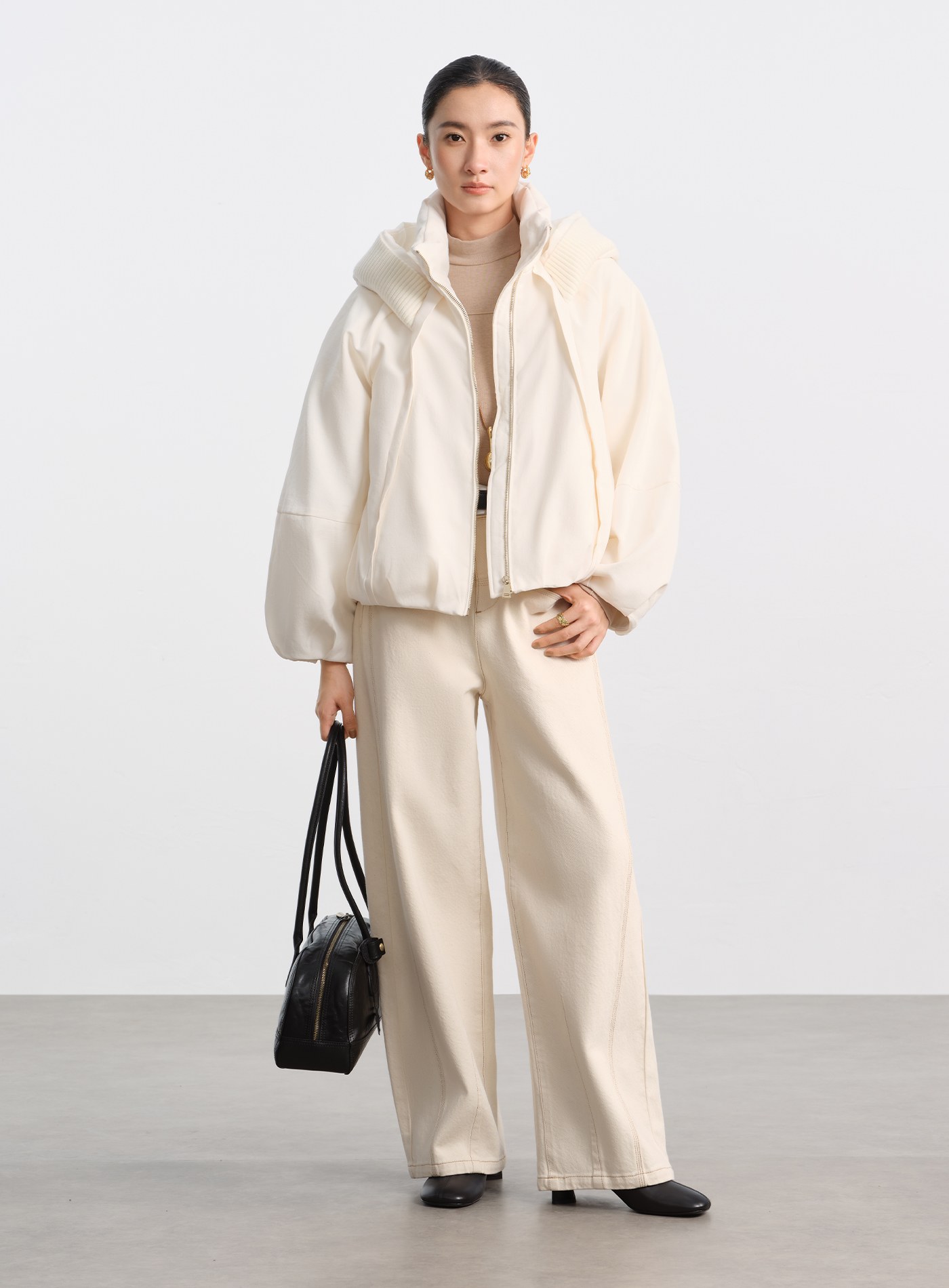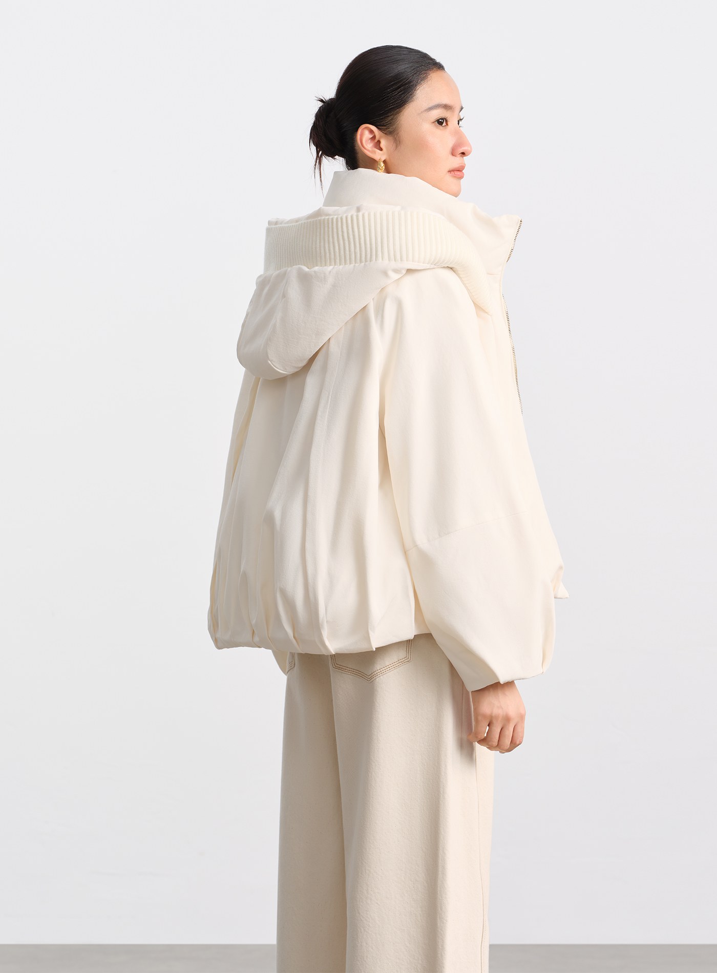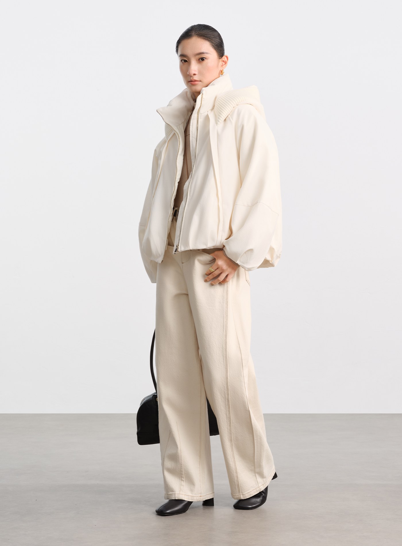 無領繭型廓形毛絨大衣$159 USD