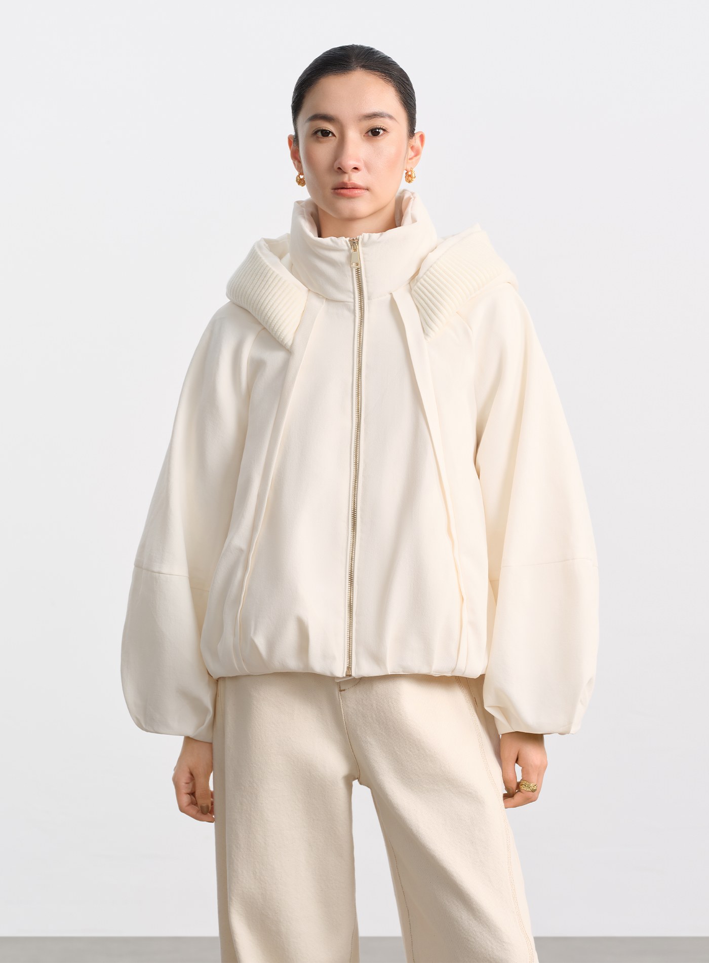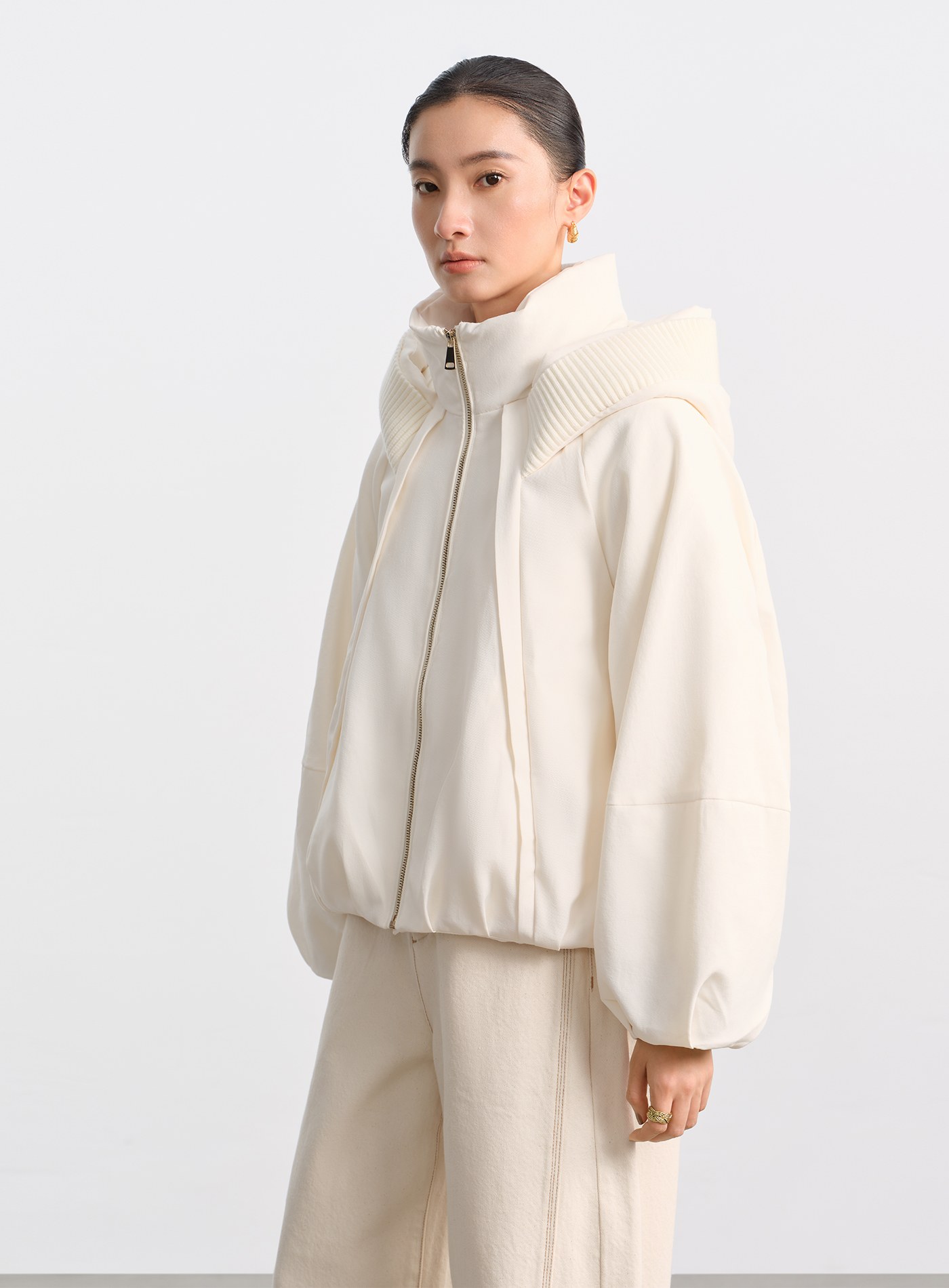 鋪棉圍巾立體坑條短版外套$118 USD