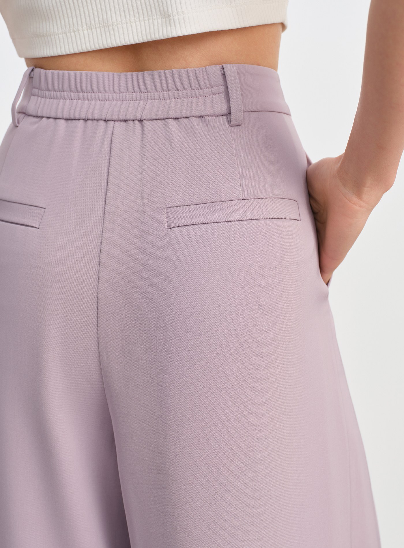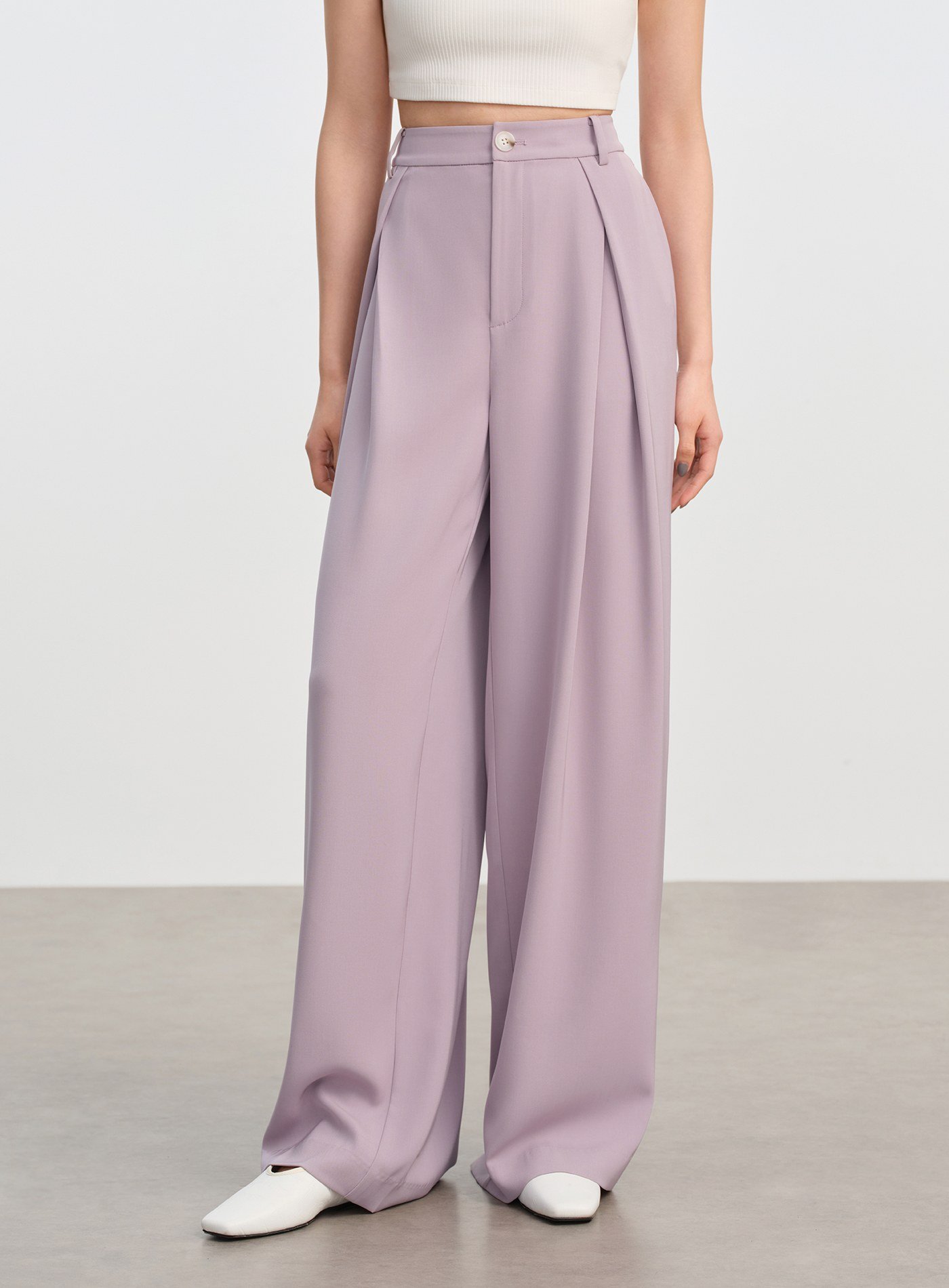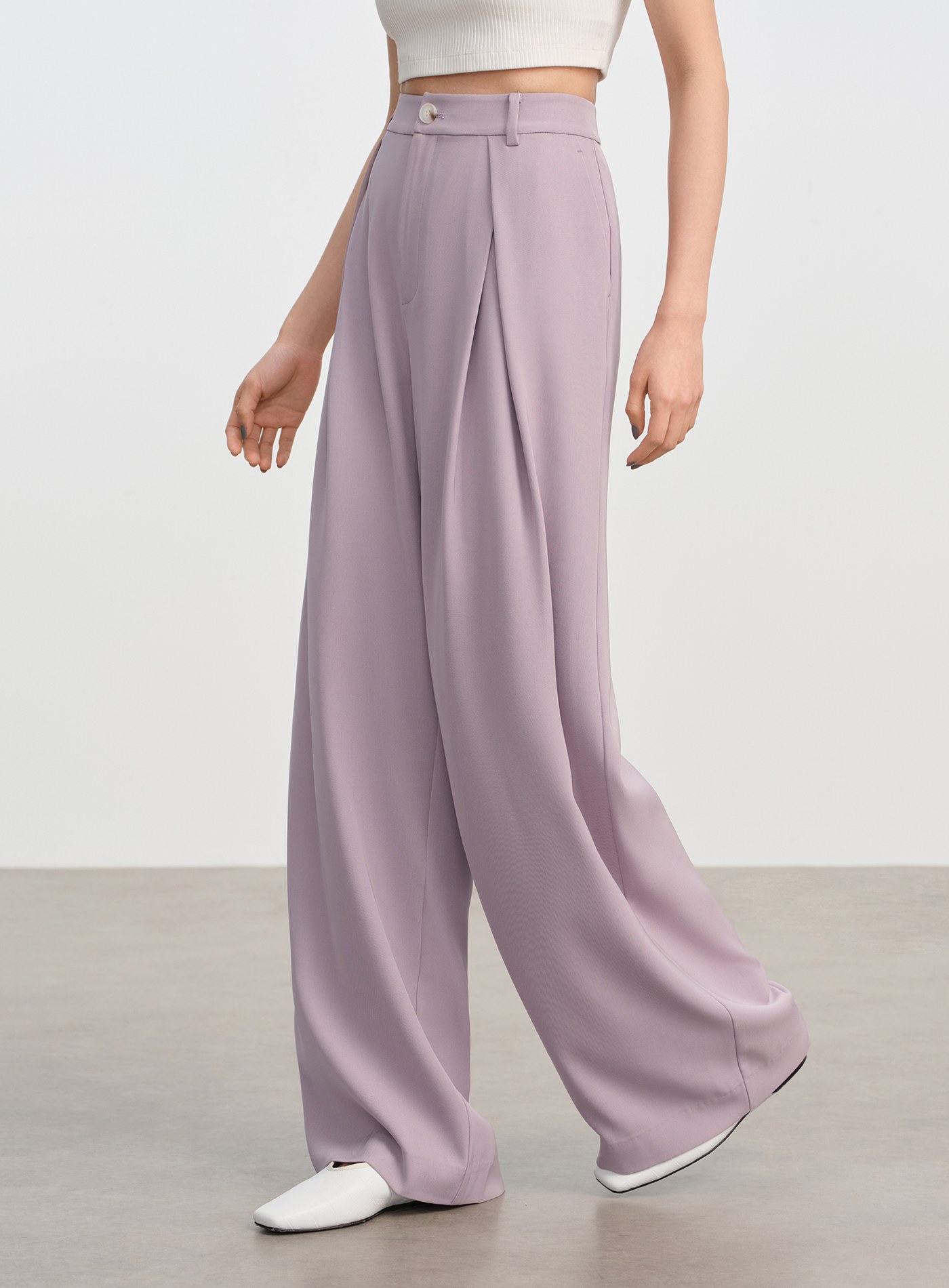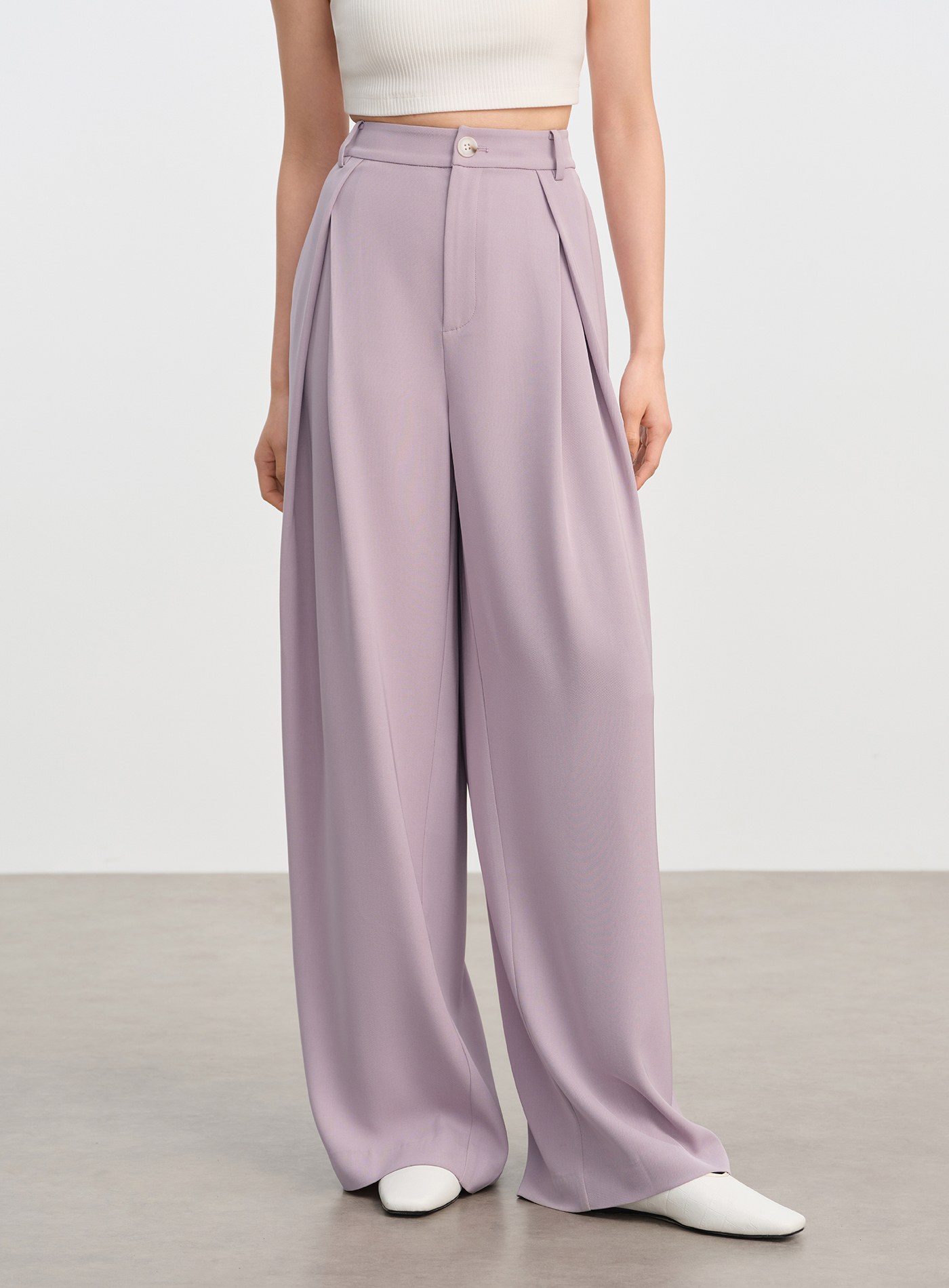 - 腰下立體工字褶增添層次感,闊腿褲型自然散開,行走間帶風,展現洒脫大氣輪廓
