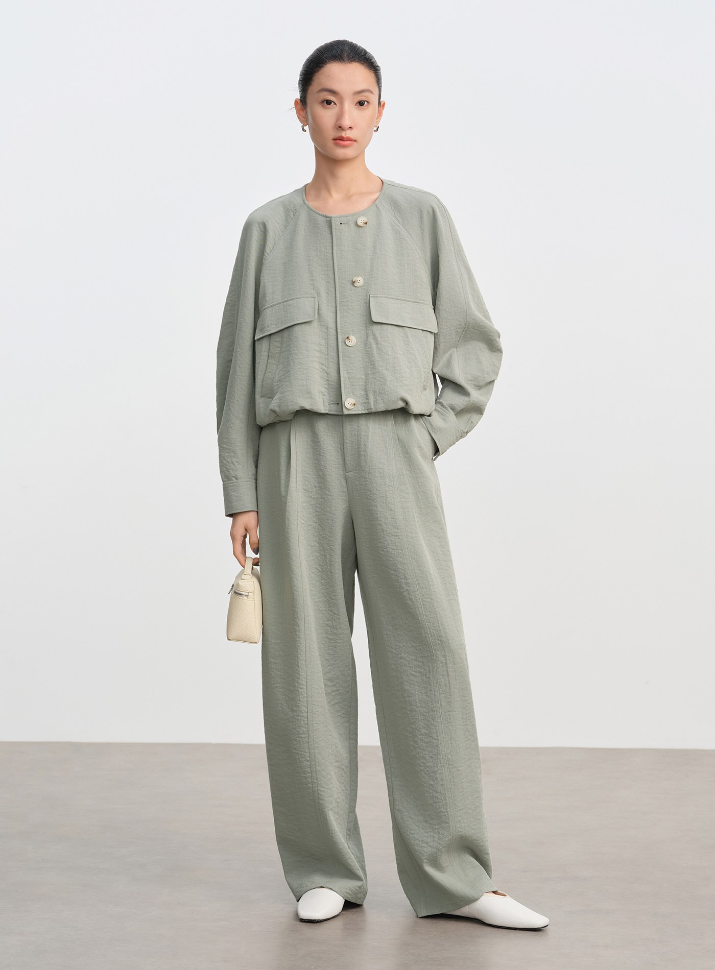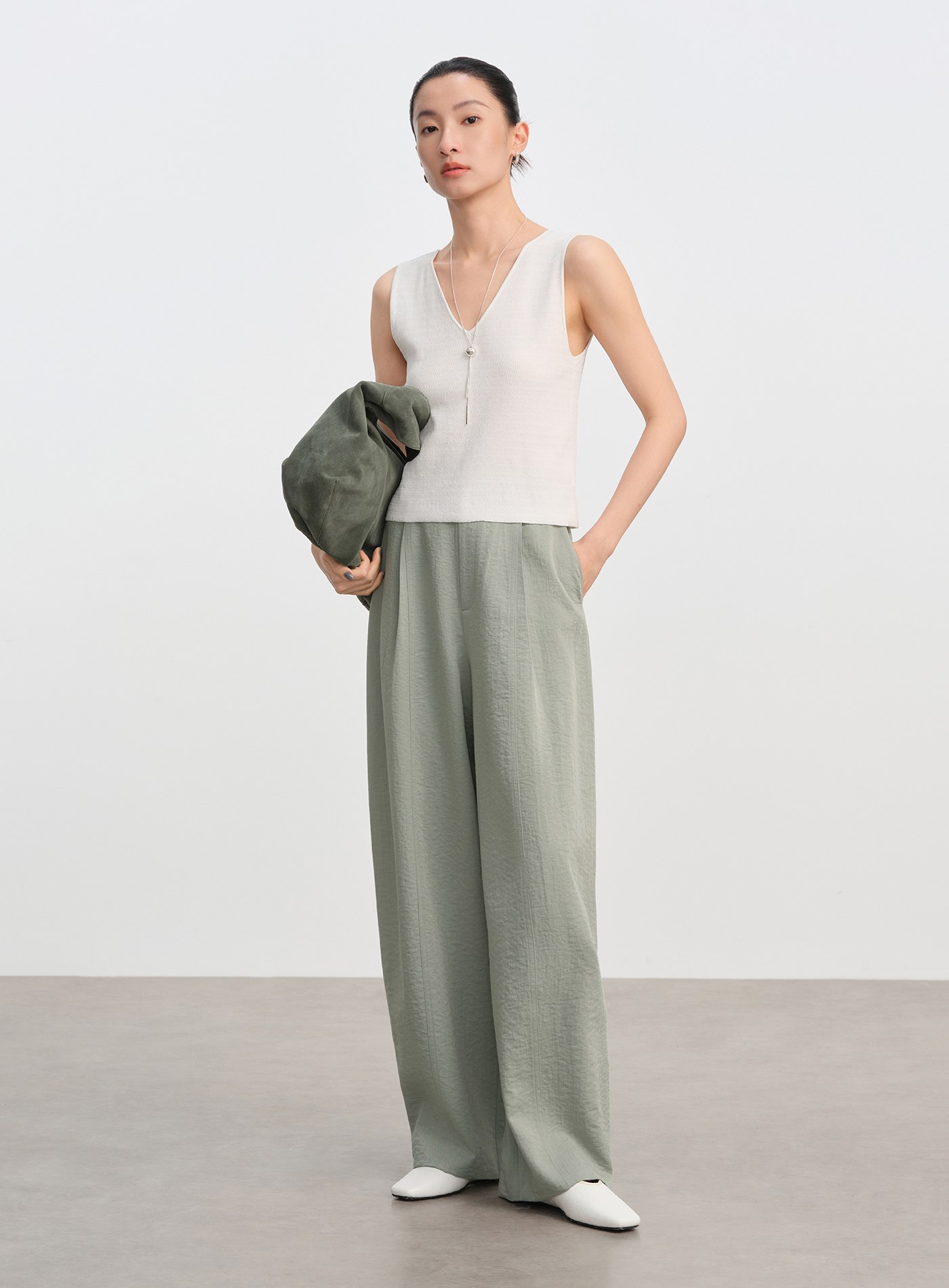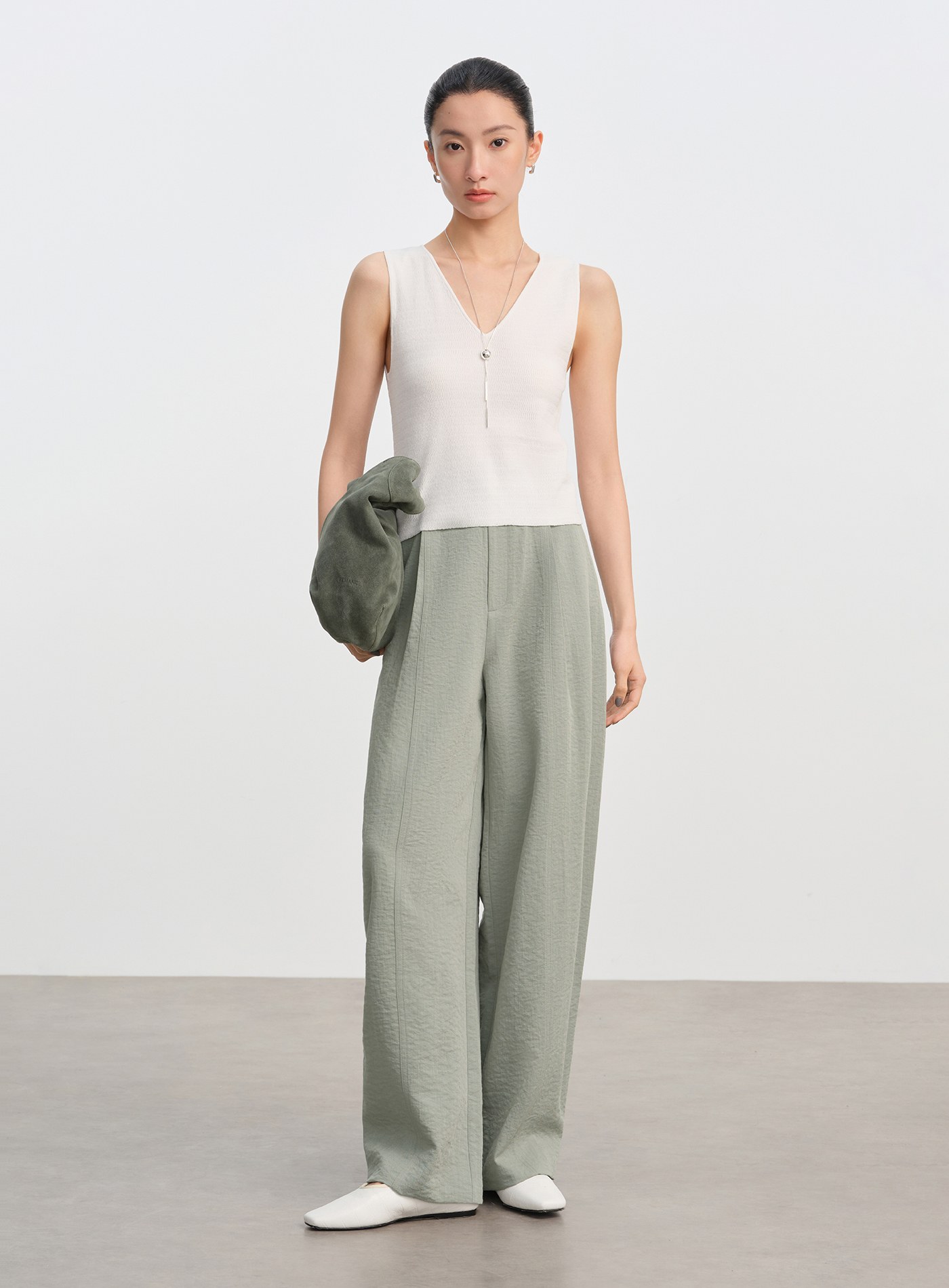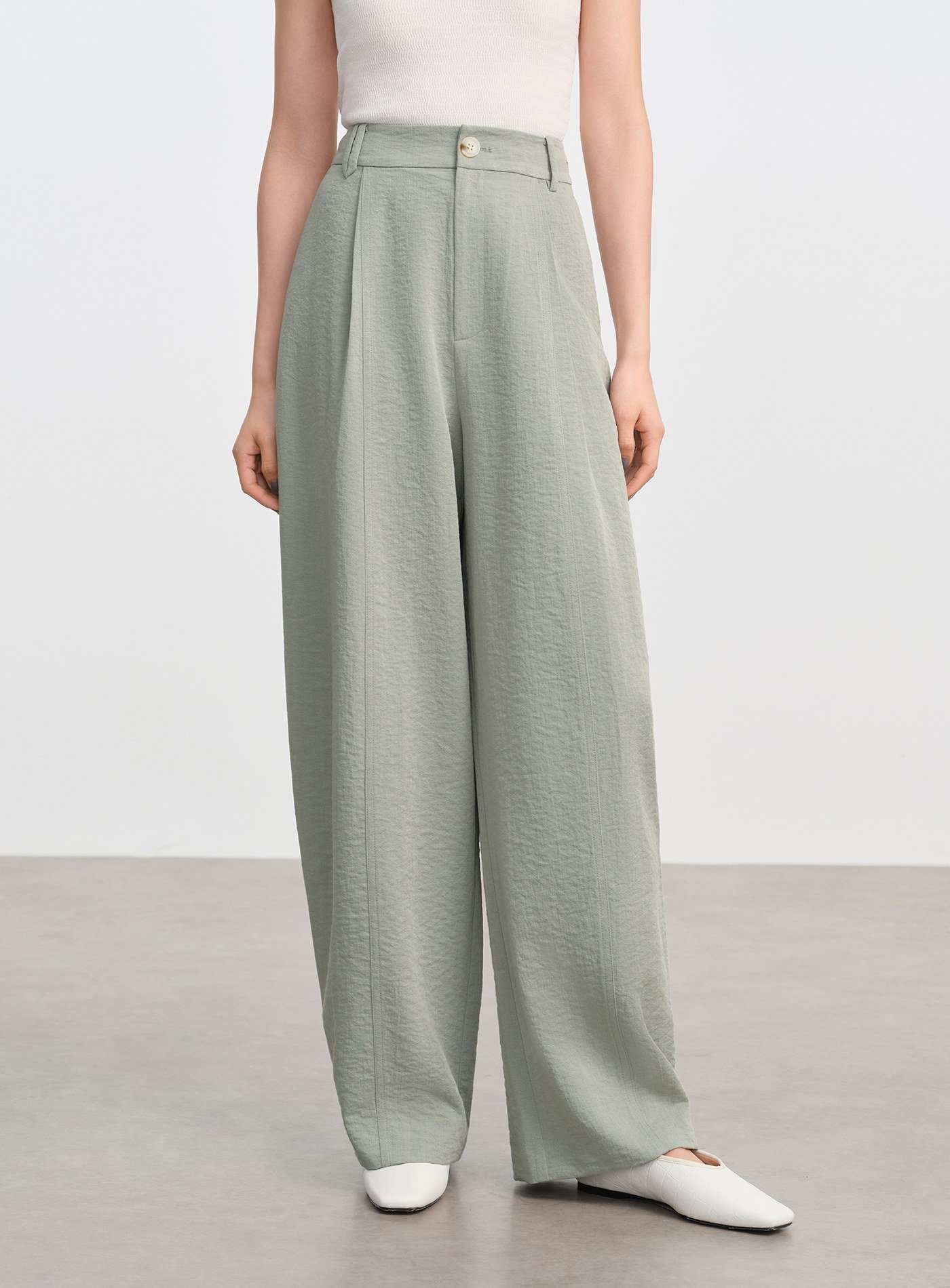 啞光絲滑打摺直筒褲$73 USD