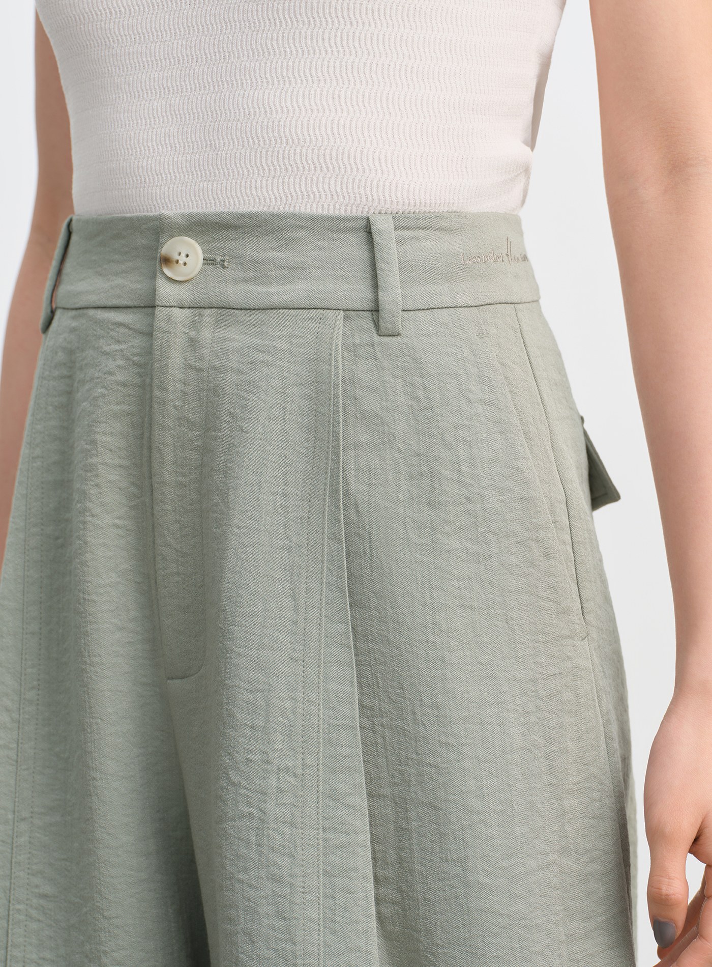 不對稱腰頭壓褶褲裙$57 USD