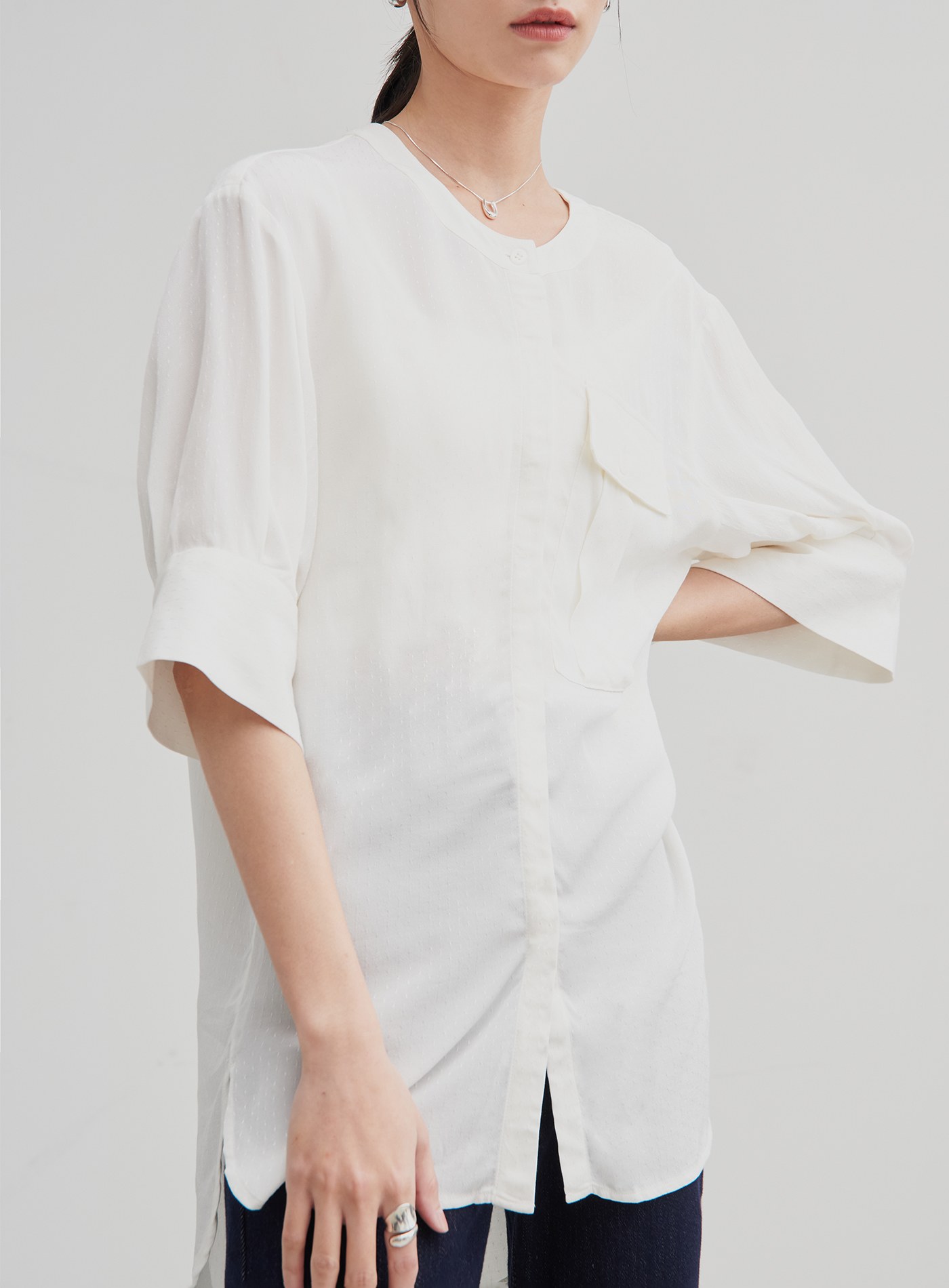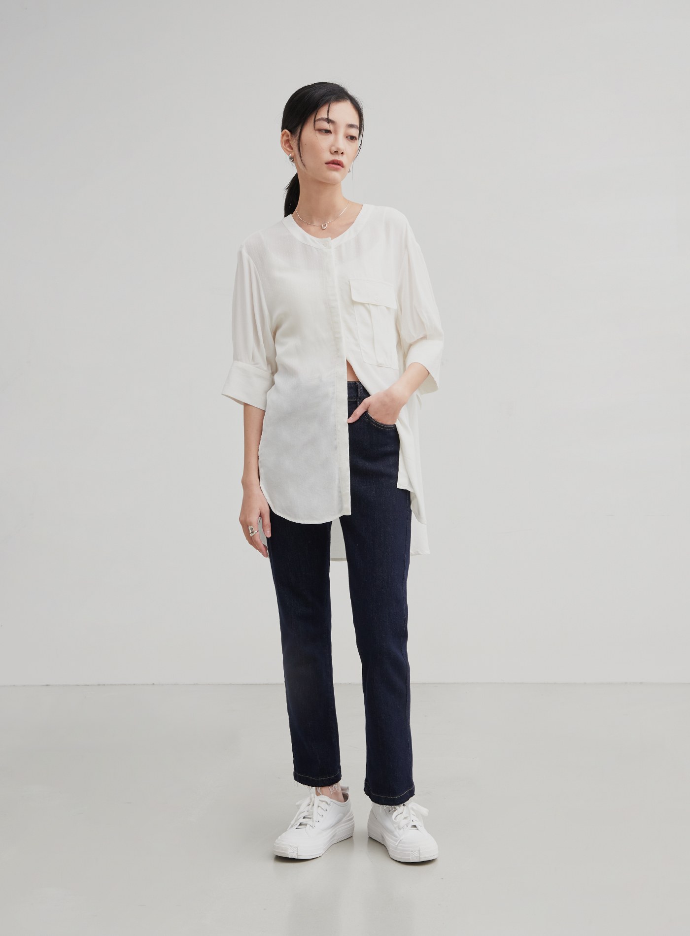 口袋活片立領襯衫$70 USD