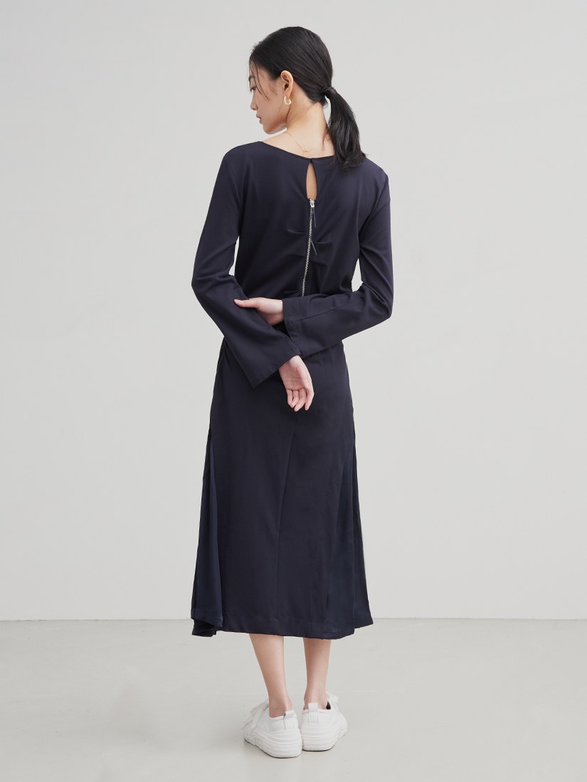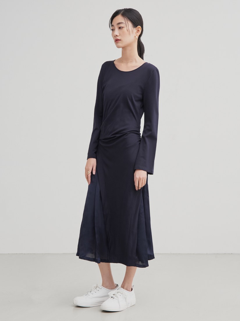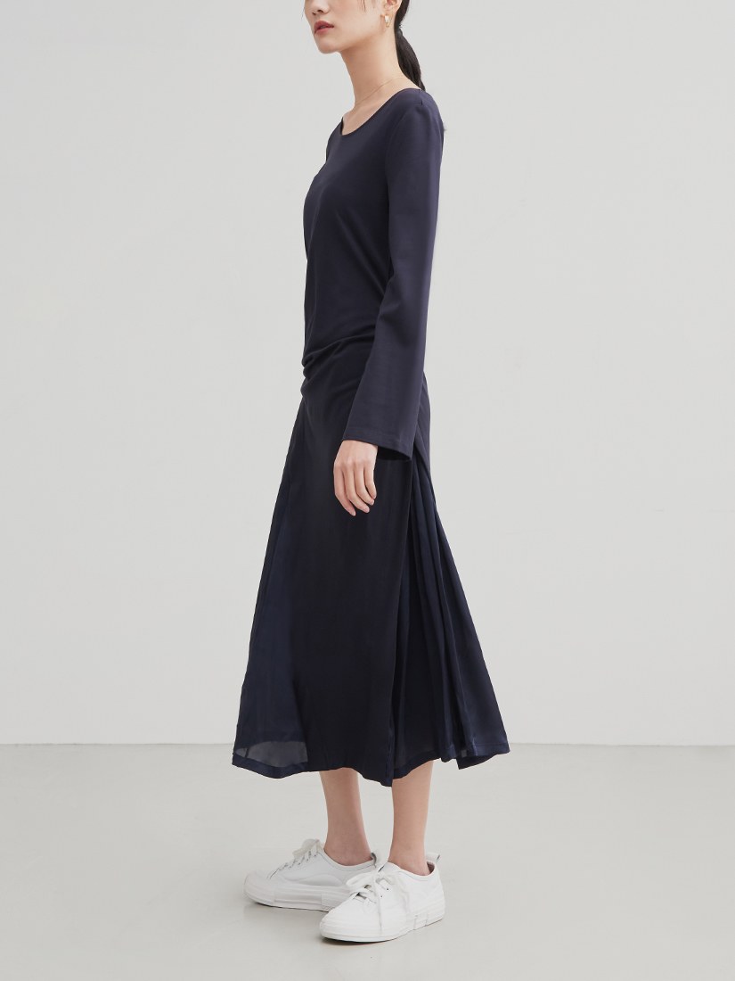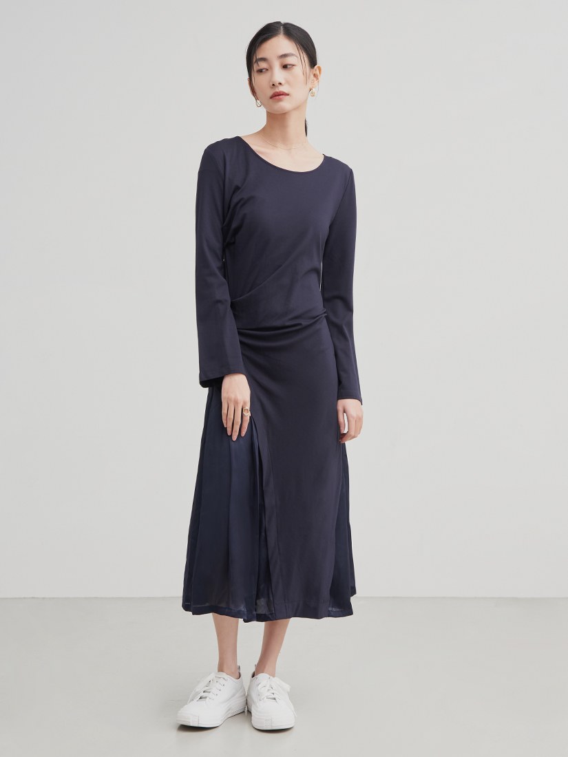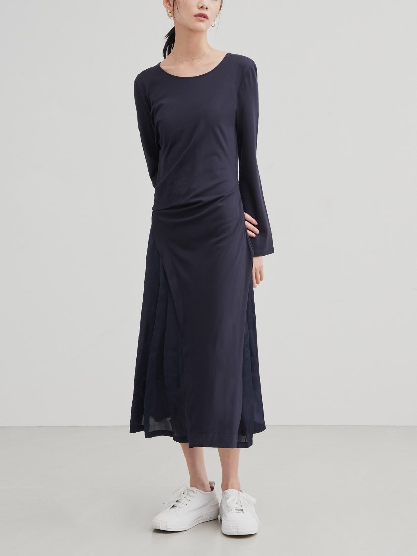 異素材拼接側開衩長洋裝$86 USD