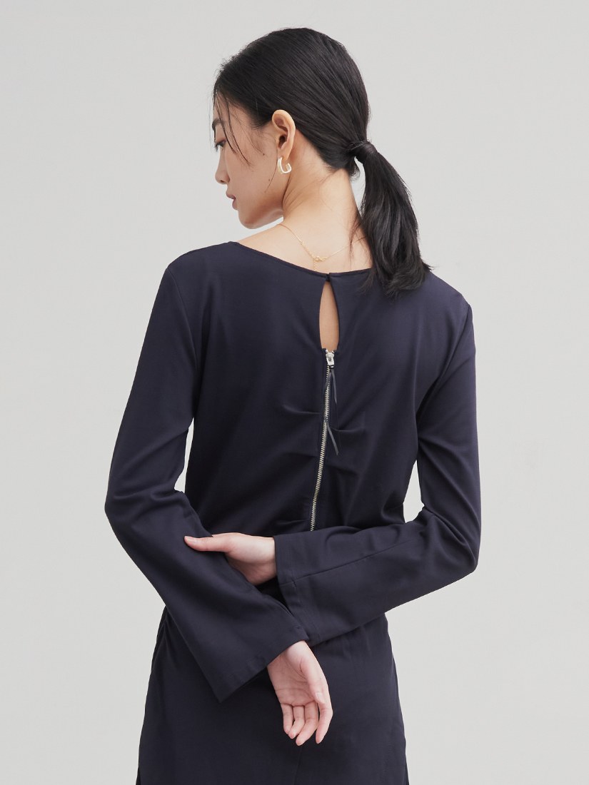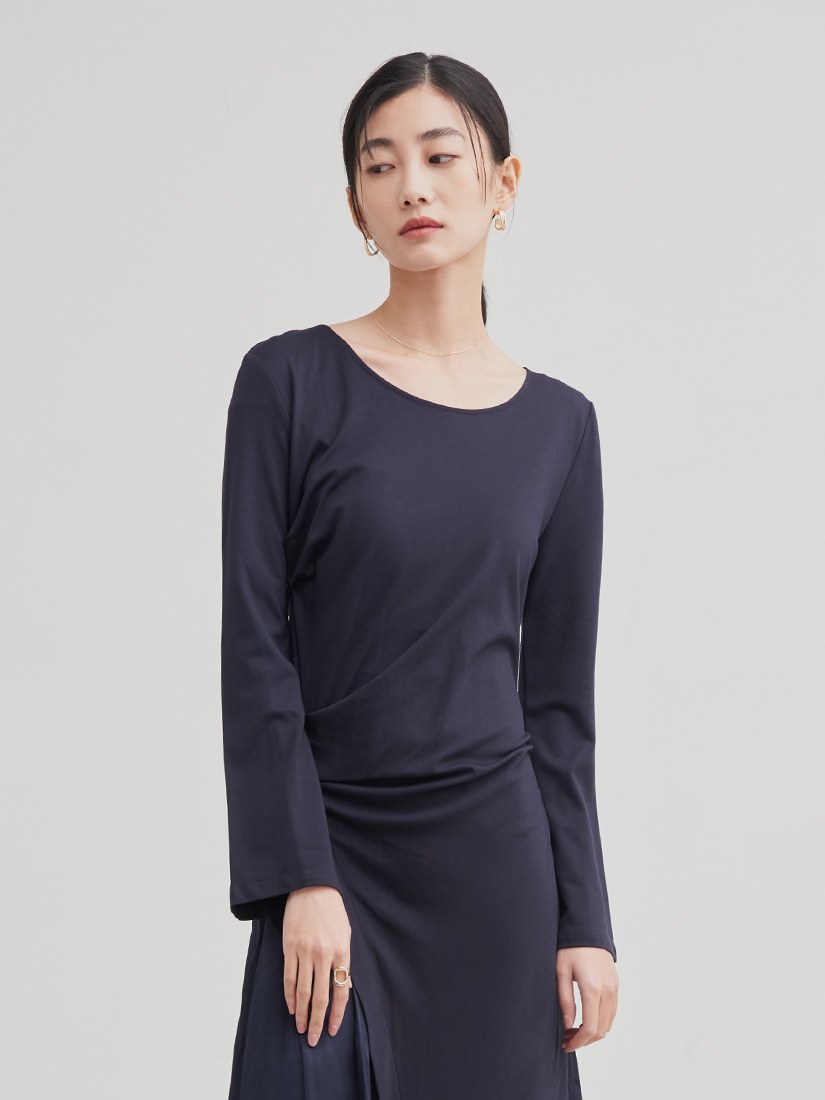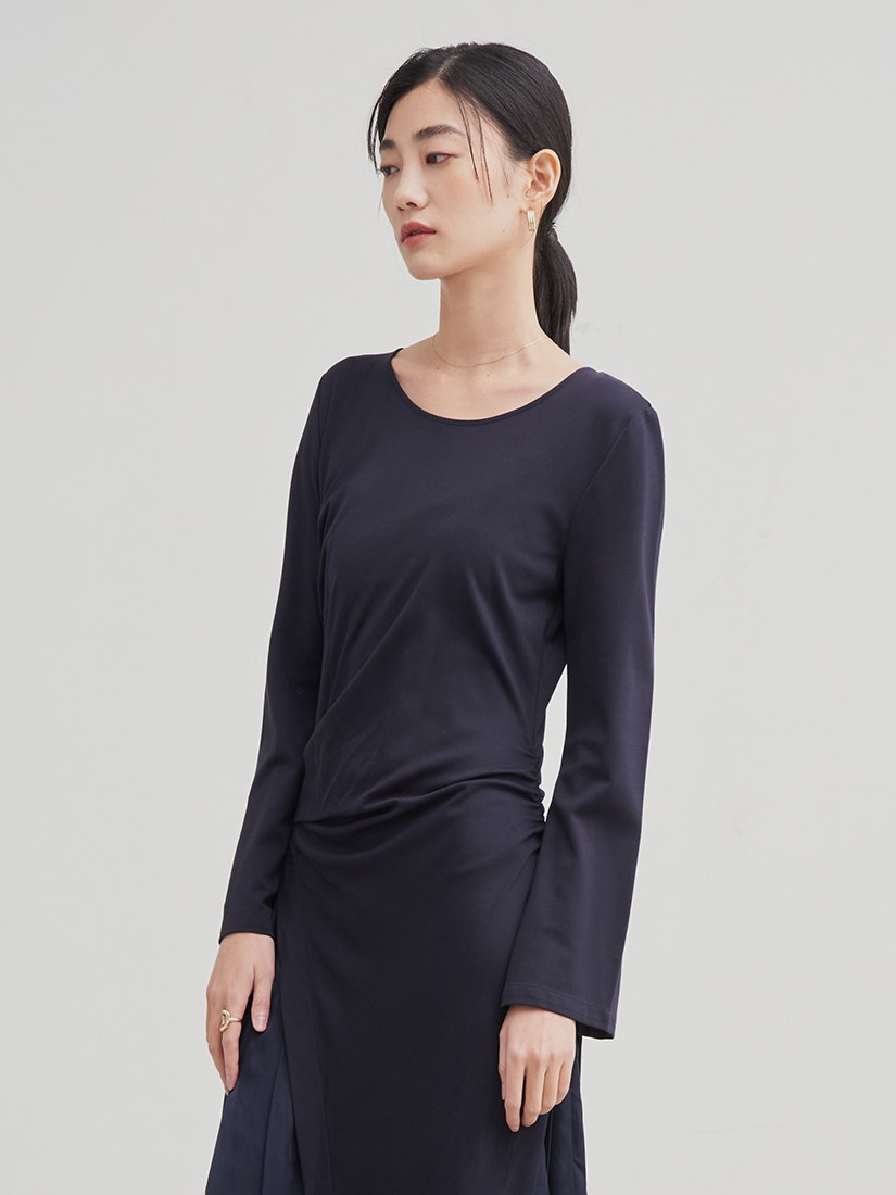 船領細羅紋抽皺長洋裝$105 USD