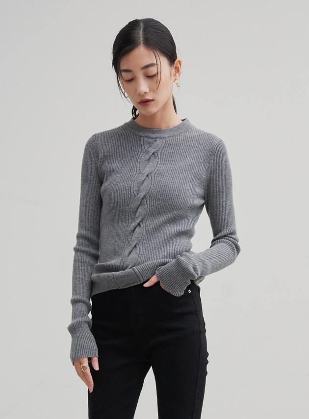 羊毛雙面呢圓領不對稱拼接大衣$191 USD