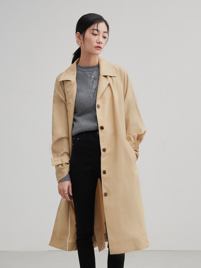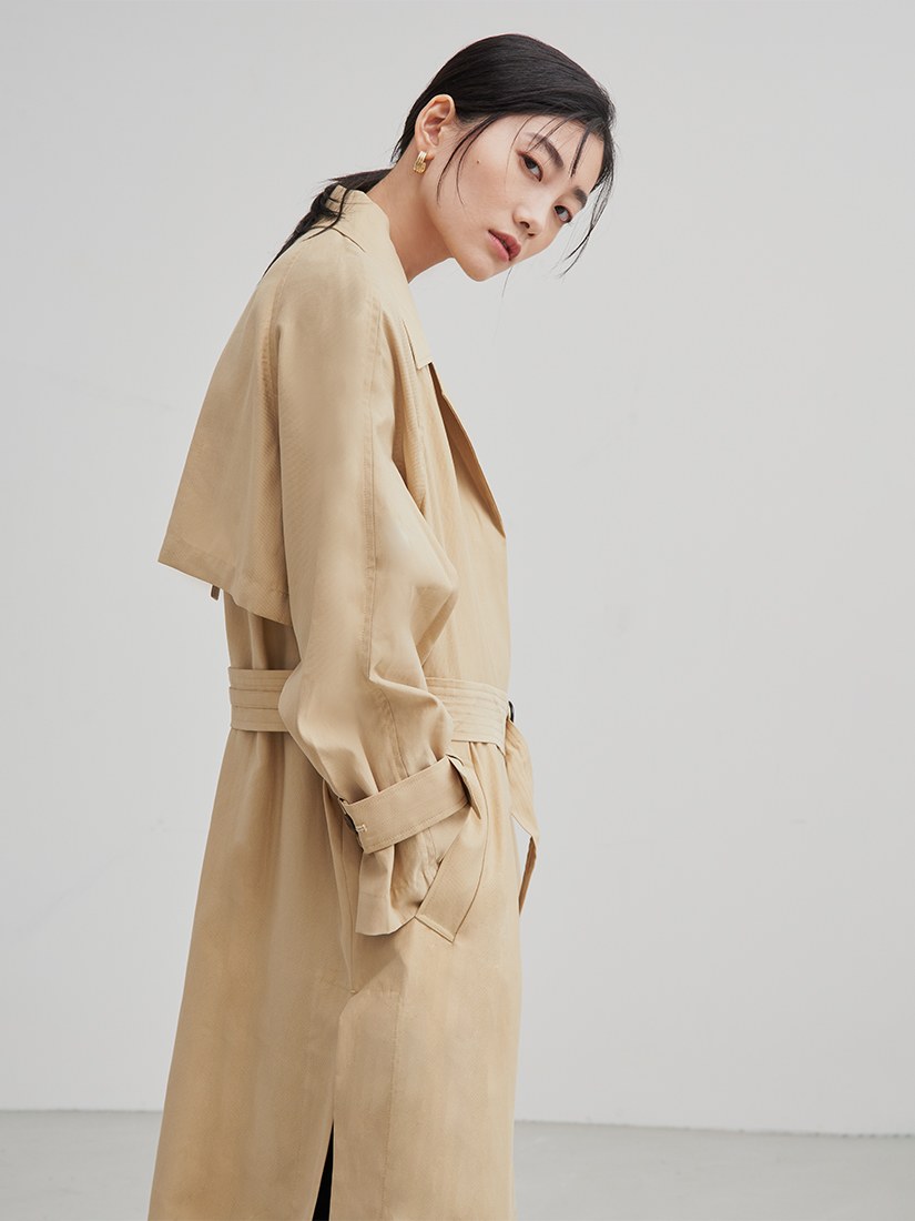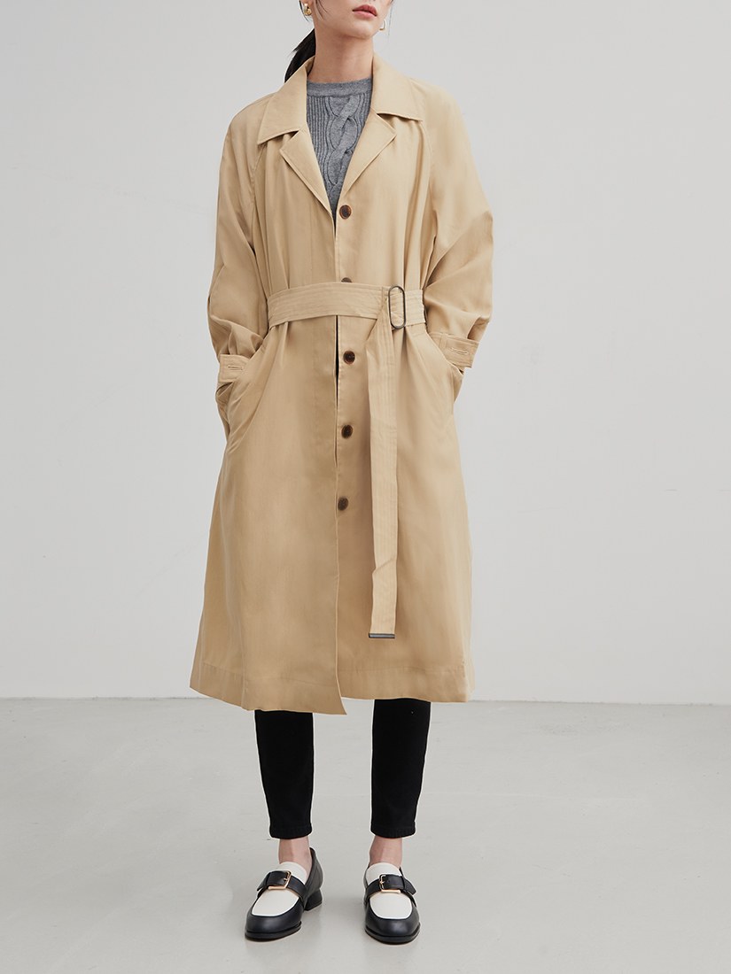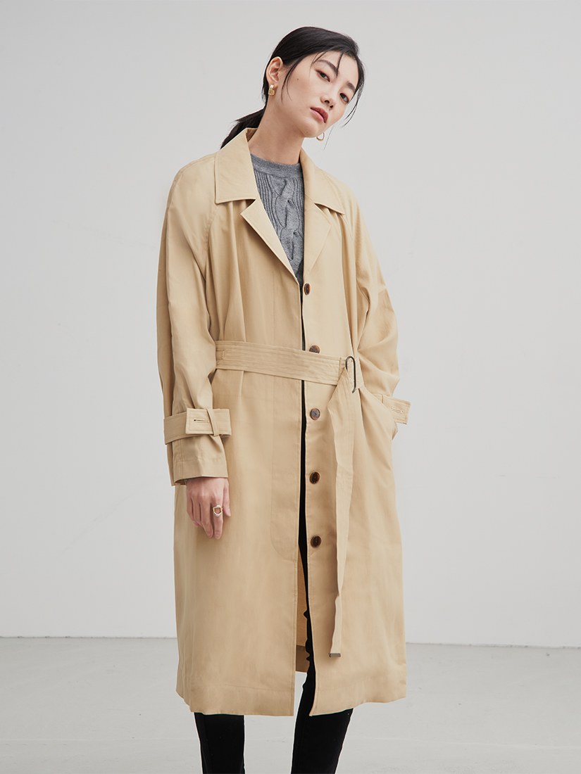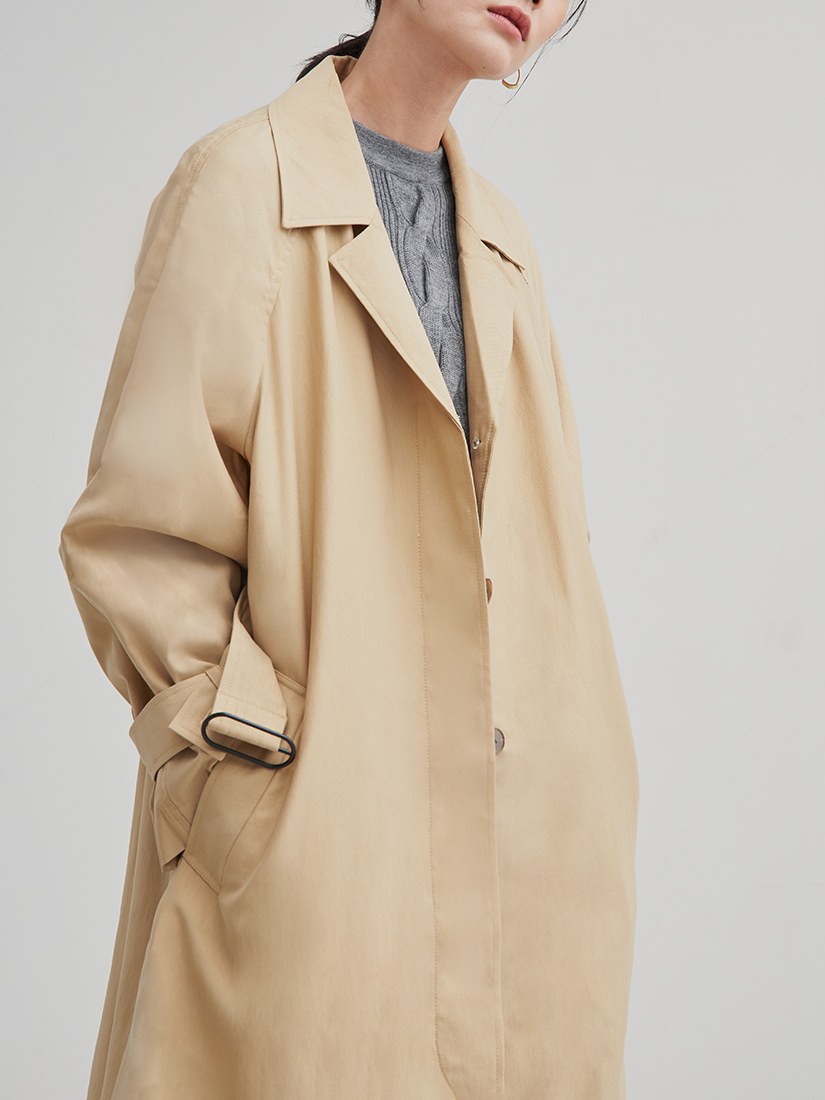 俐落輕挺寬鬆落肩風衣外套$124 USD