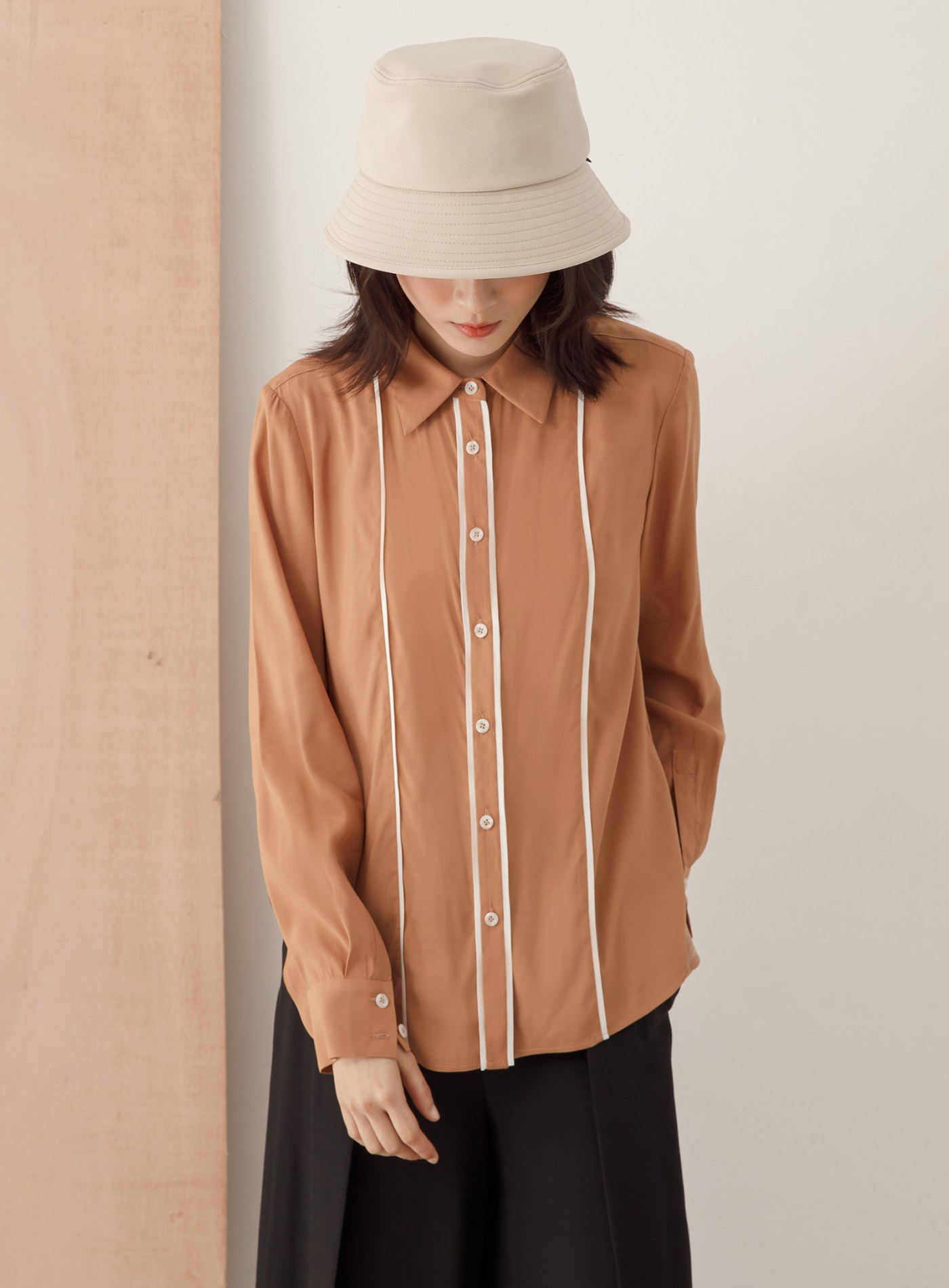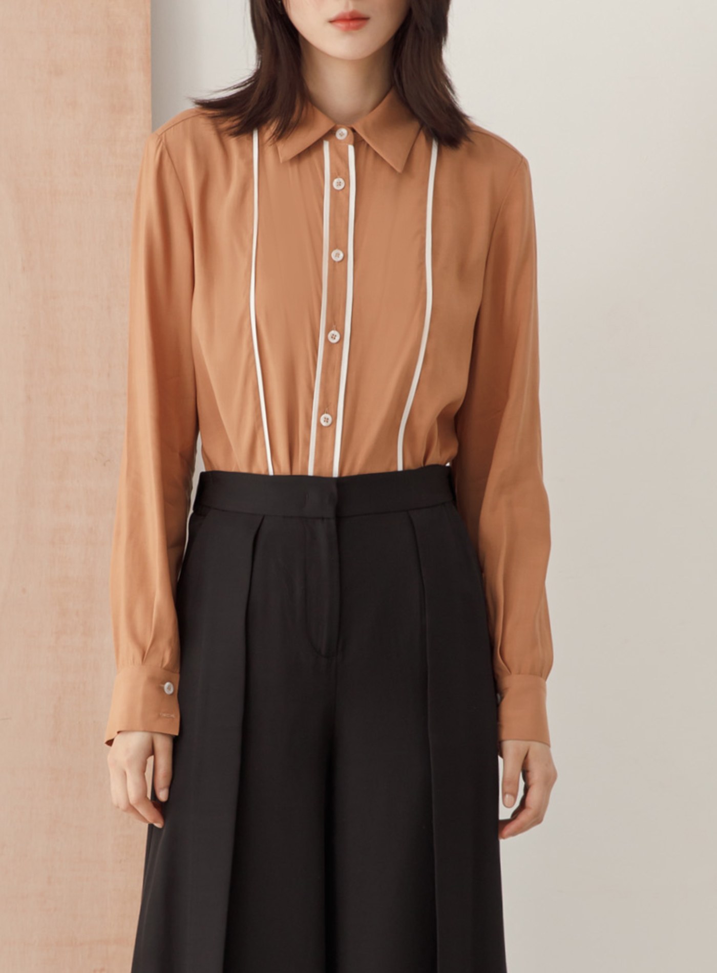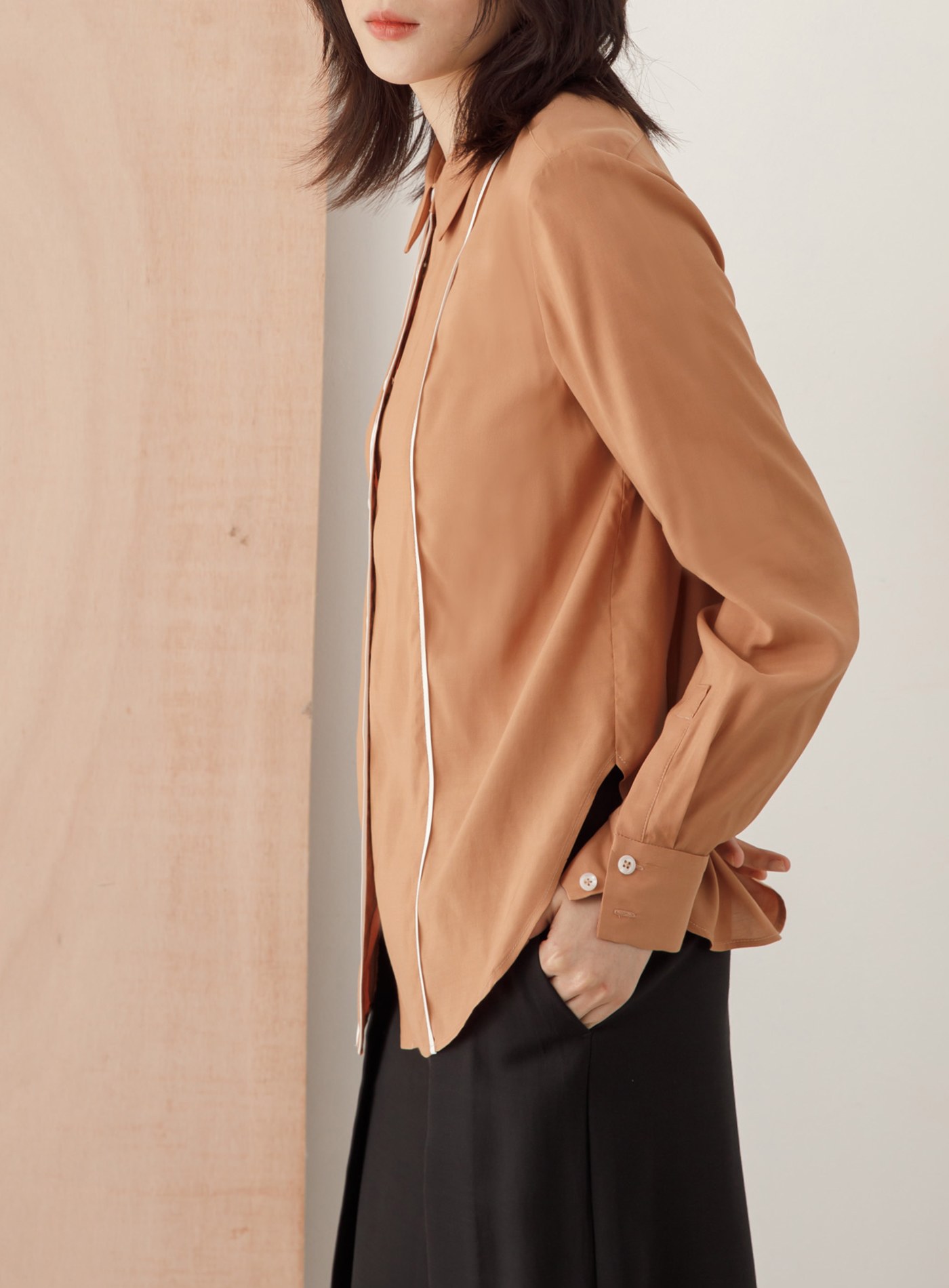 不對稱領彈力綁帶長袖襯衫$63 USD