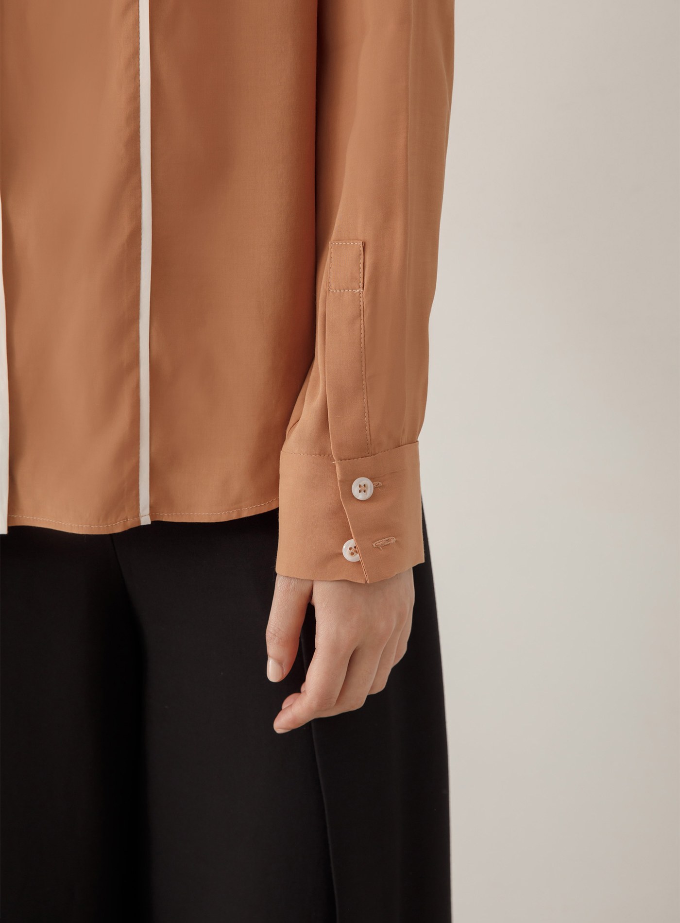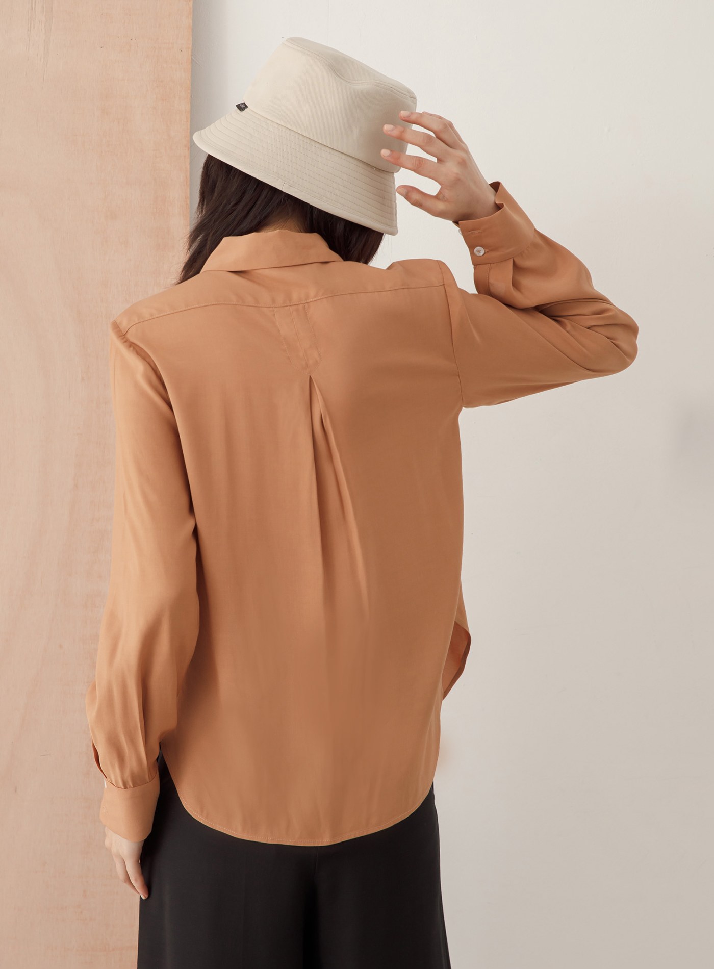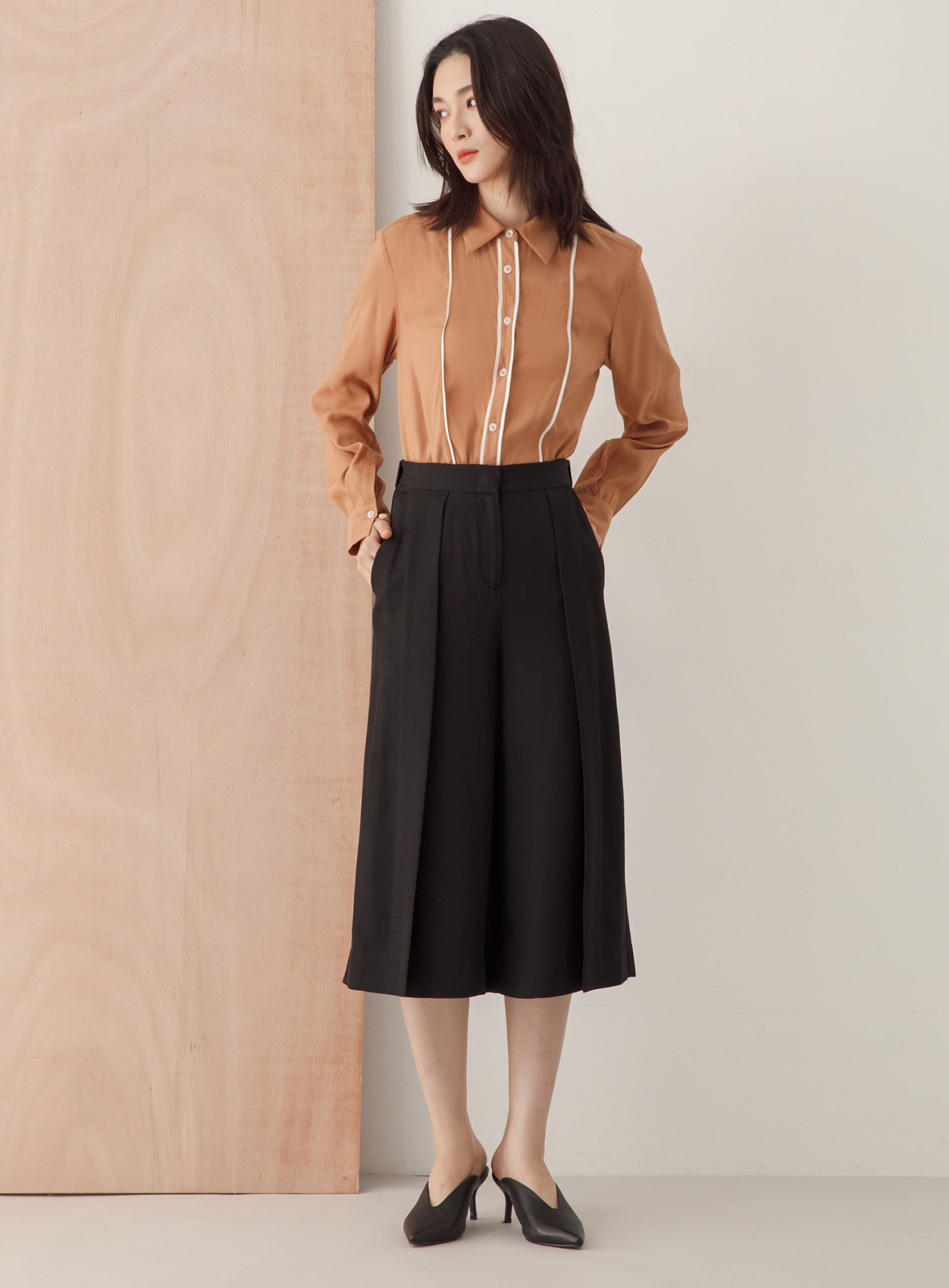 不對稱領彈力綁帶長袖襯衫$63 USD