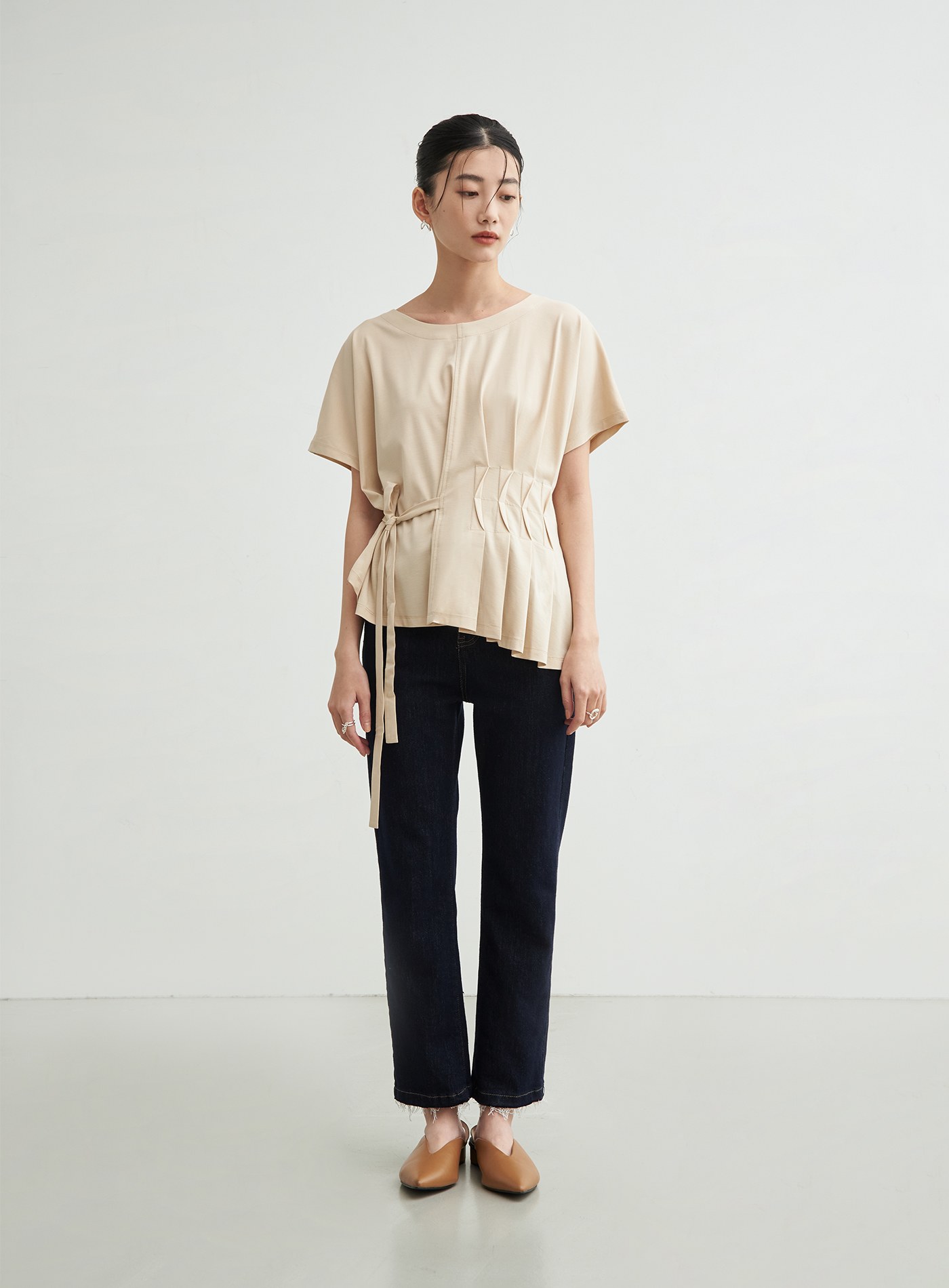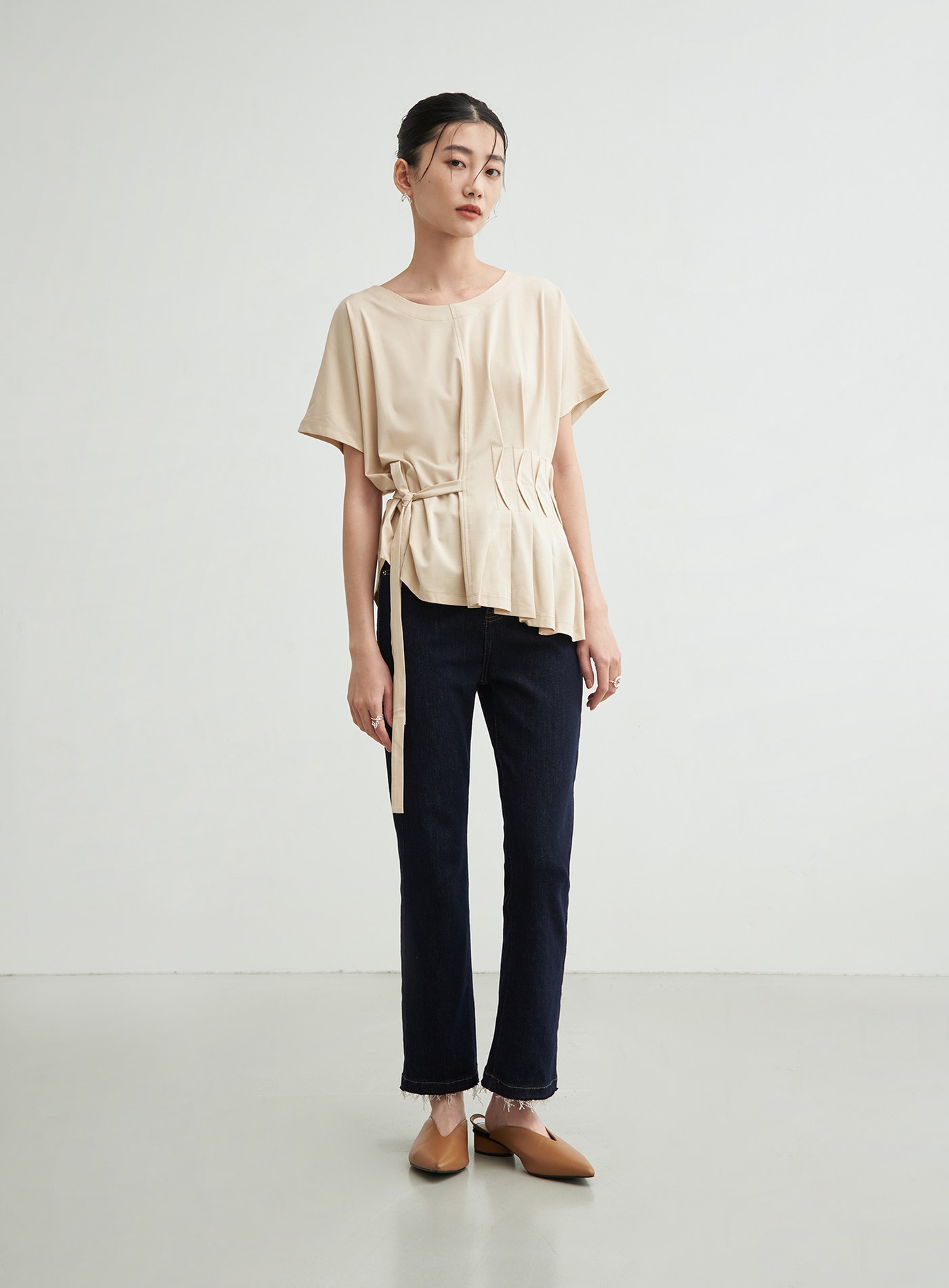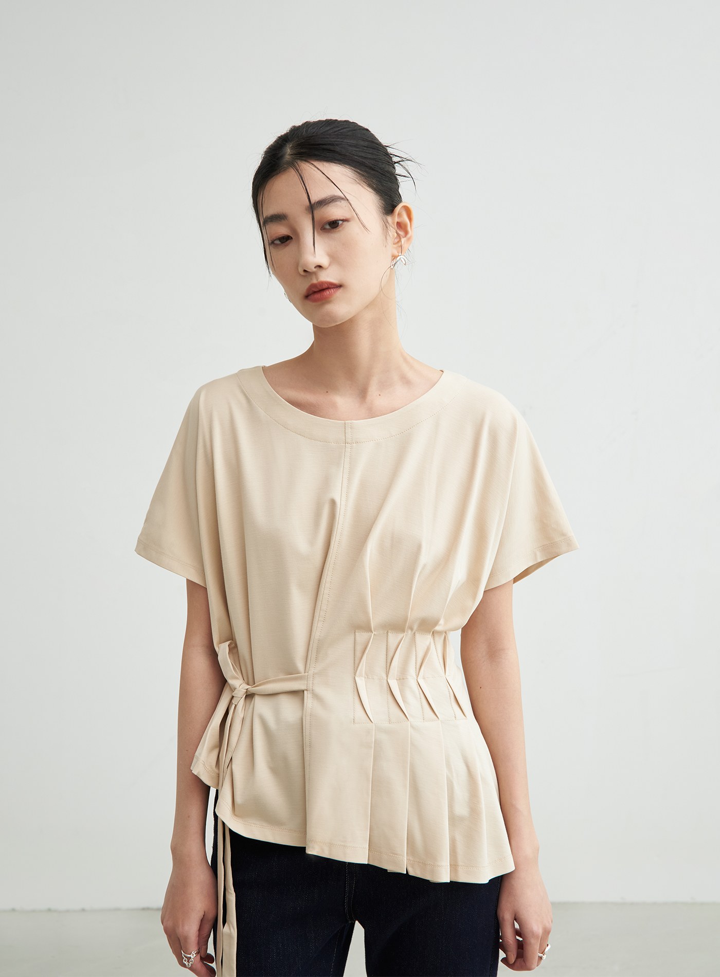 不對稱抽皺設計上衣$38 USD