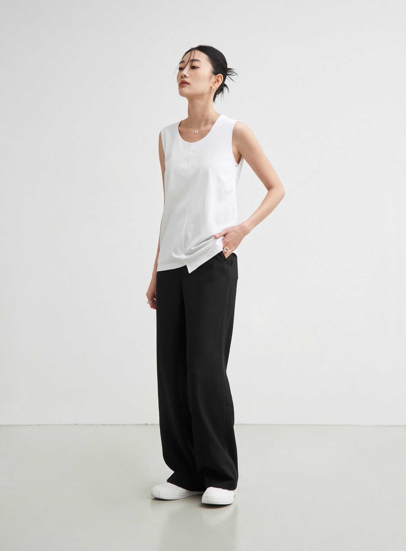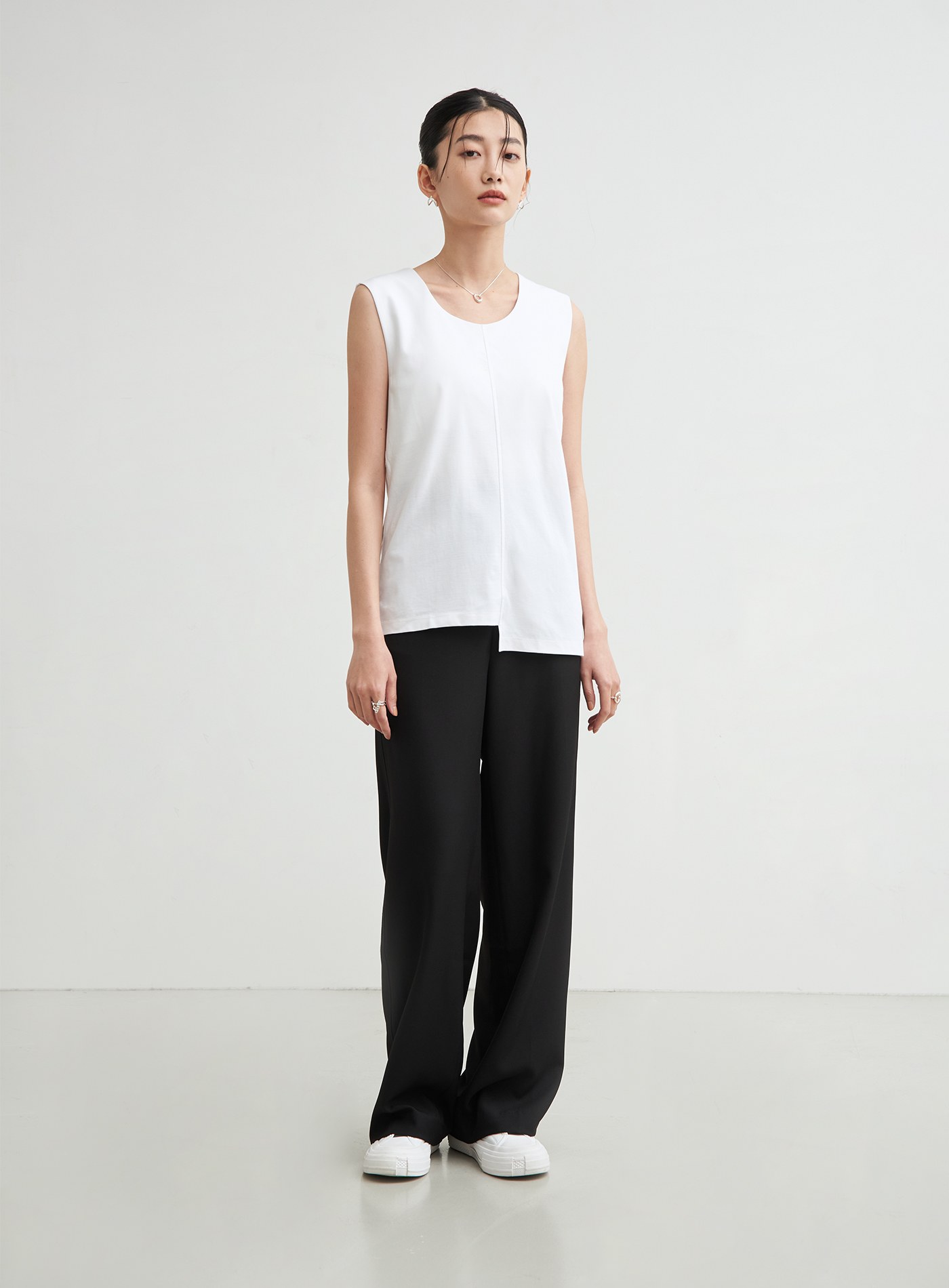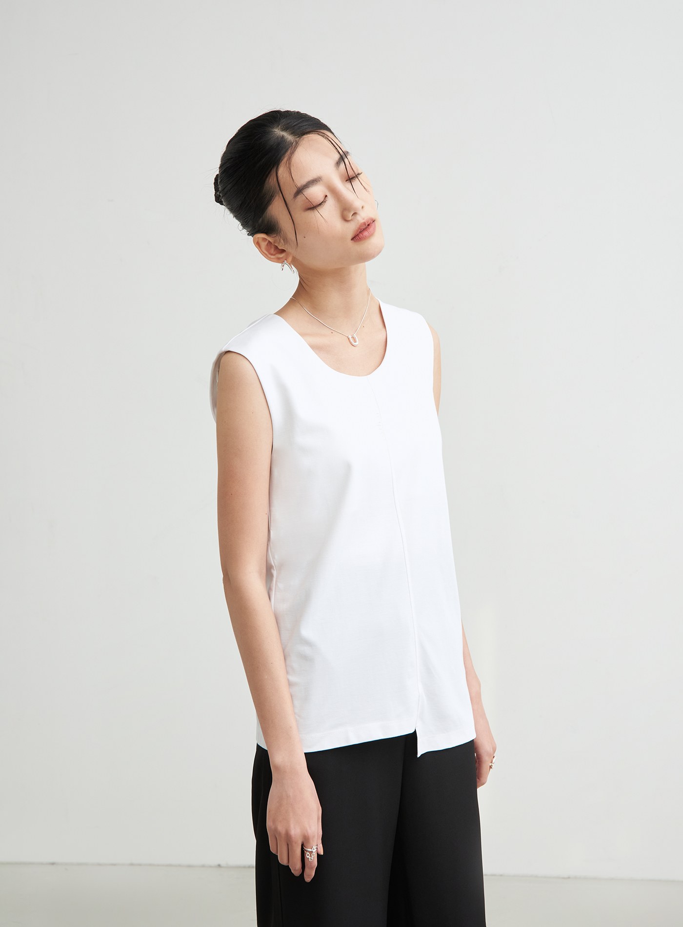 不對稱領美背細肩帶背心$47 USD