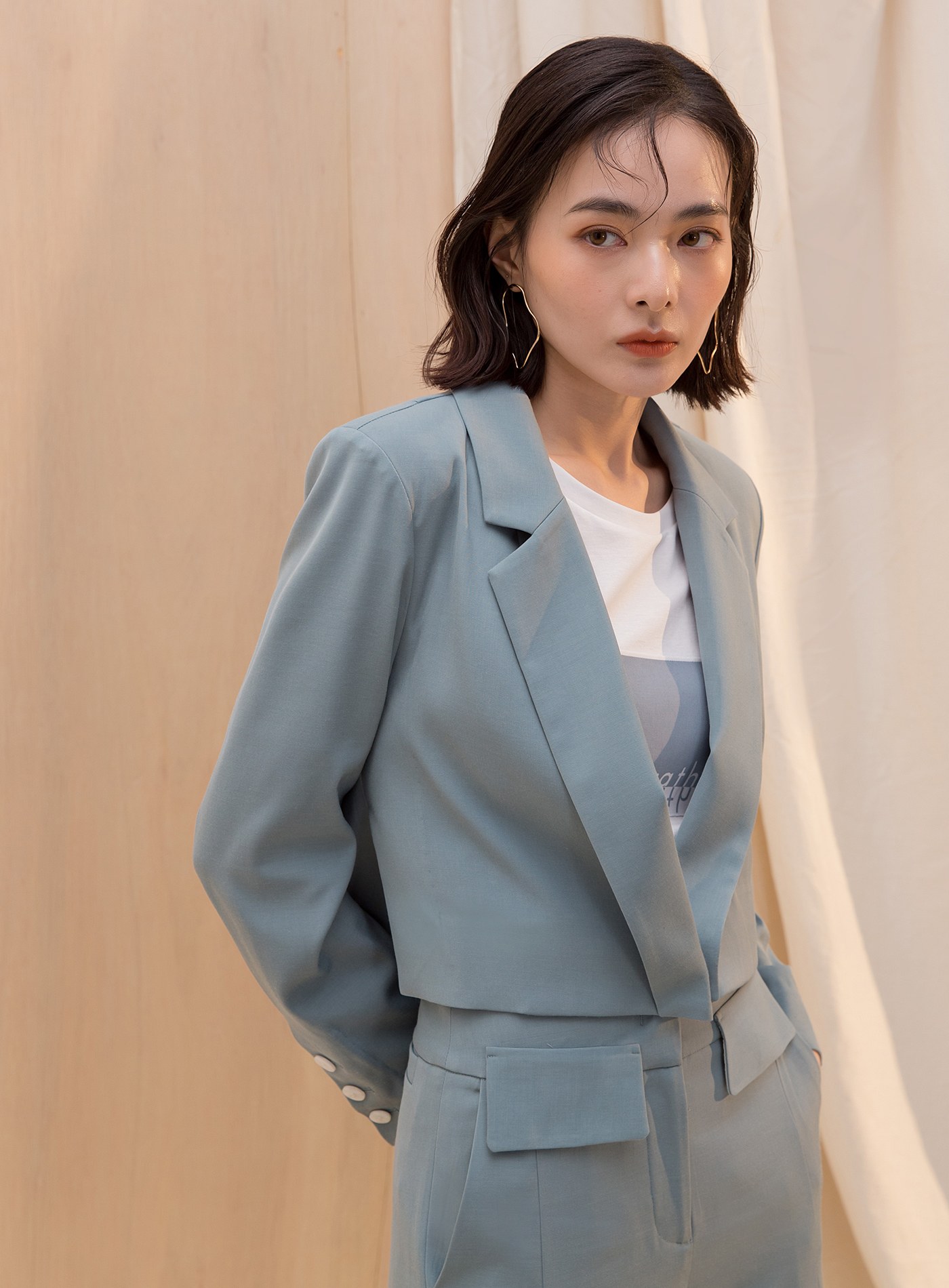 鋪棉立體坑條不對稱領型西裝外套$127 USD