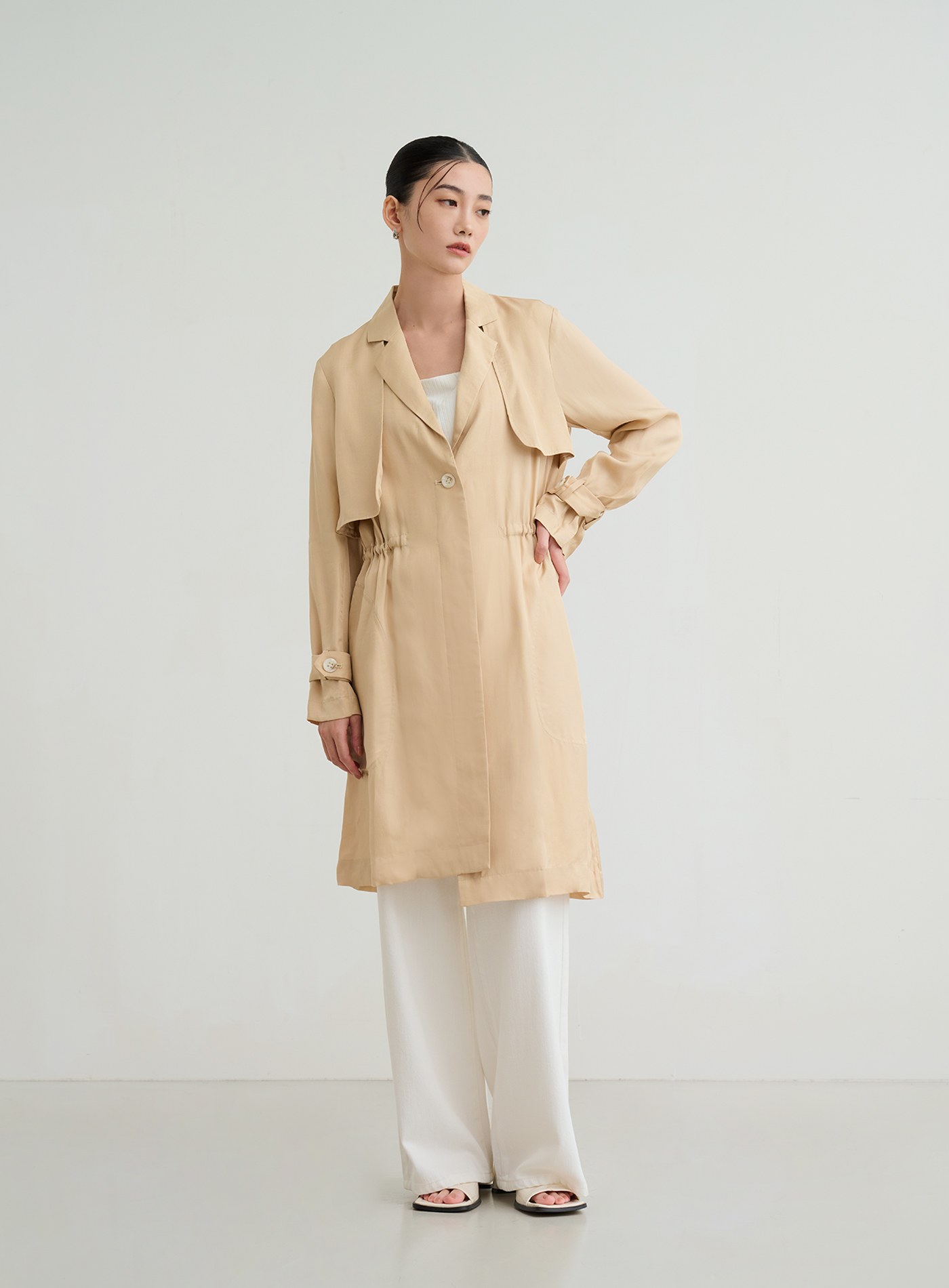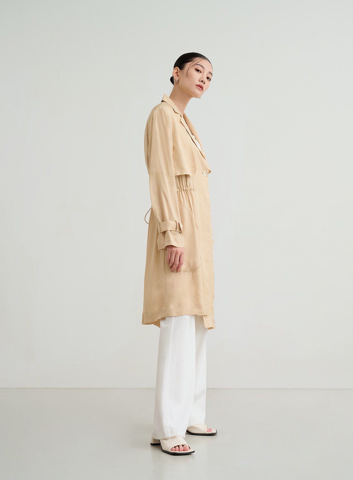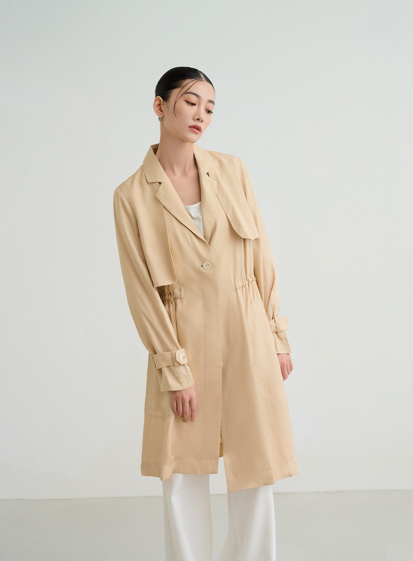 俐落輕挺寬鬆落肩風衣外套$124 USD